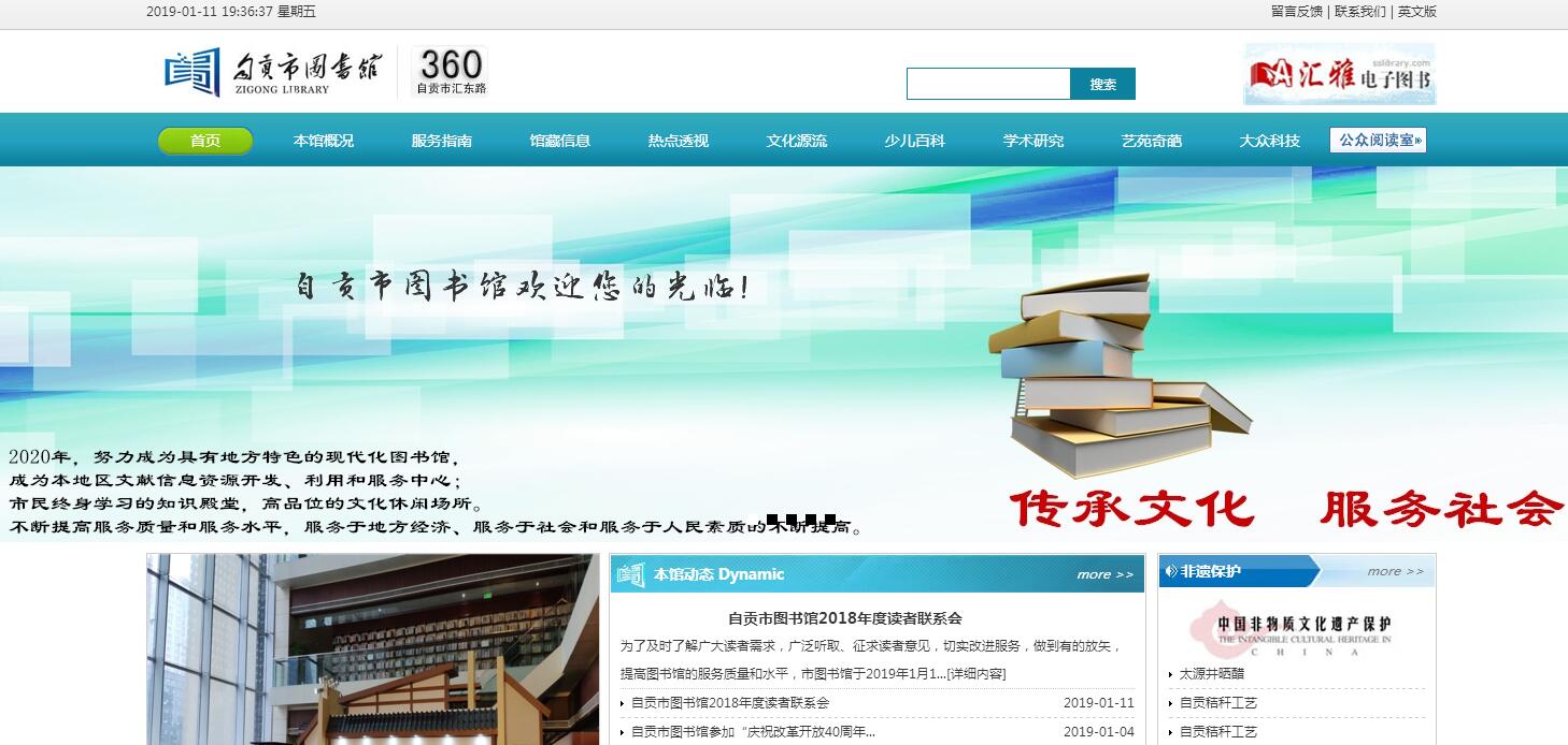 自贡市图书馆成立于1959年5月,已走过50多年风雨历程。它是面向社会和公众开放的市级公共图书馆。是自贡的藏书中心、目录中心、信息交流中心、文献资源开发中心、图书馆专门人才培训中心及图书馆学学术研究交流中心。馆舍面积6100余平方米,读者座位500余个。馆内设有:采编部、数字资源部、图书参考流通部、期刊部、少儿工作部、活动部及办公室等机构,并设有电子阅览室、盲人阅览室、书吧、自修室等馆内服务窗口9个,公众讲坛、基层阅读点、红领巾读书点等馆外服务窗口60余个。图书馆座落在汇东开发区汇东路东段的繁华地段,施行全年无休,免费开放,年接待读者能力可达50万人次以上。该馆收藏的图书以社会科学图书、综合性图书、普及性图书为主。现有藏书30余万册,古籍3万余册,数字图书6万余册,收藏了近20余年的《中国人民大学报刊复印资料》形成了该馆收藏大型社科二次文献的特色。目前,在传统纸质文献的基础上正在增加对电子文献的收藏。自贡市图书馆在党委、政府的关怀下,阅读环境、设施、设备、资源建设、管理和服务都得到了较大的改善和提高,还开展了错时服务、延时服务,现在加大力度建设数字图书馆和网络服务,满足读者的多层次、多样性需求。近年来所举办的各类读书活动、读者活动、各类展览、公益讲座以及利用文献信息资源共享工程等方式走进工矿企业、走进乡村、走进社区、走进学校等活动,已成为本市的一道亮丽的风景线。为了让更多市民共享公共文化资源,近年来,自贡市图书馆还坚持创新“全民阅读活动”形式,针对不同人群,主动、动态的开展了一系列阅读活动,激发读者的阅读兴趣,培养他们良好的阅读习惯。自贡市图书馆以读者提供更为贴近的、主动的、全方位的服务作为不懈的追求目标,把“多读书,读好书,好读书”作为我们身处信息时代的核心价值观念,让阅读成为我们的生活习惯。自贡市图书馆全体同仁愿与广大读者同风雨、共进退,致力于图书馆事业的发展,致力于全民素质的提高,为我市的精神文明建设而不懈努力!