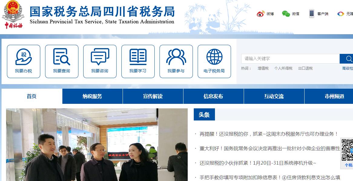 国家税务总局四川省税务局的主要职责是:(一)负责贯彻执行党的路线、方针、政策,加强党的全面领导,履行全面从严治党责任,负责党的建设和思想政治建设工作。(二)负责贯彻执行税收、社会保险费和有关非税收入法律、法规、规章和规范性文件,研究制定具体实施办法。组织落实国家规定的税收优惠政策。(三)负责研究拟定本系统税收、社会保险费和有关非税收入中长期规划,参与拟定税收、社会保险费和有关非税收入预算目标并依法组织实施。负责本系统税收、社会保险费和有关非税收入的会统核算工作。组织开展收入分析预测。(四)负责开展税收经济分析和税收政策效应分析,为国家税务总局和省委、省政府提供决策参考。(五)负责所辖区域内各项税收、社会保险费和有关非税收入征收管理。组织实施税(费)源监控和风险管理,加强大企业和自然人税收管理。(六)负责组织实施本系统税收、社会保险费和有关非税收入服务体系建设。组织开展纳税服务、税收宣传工作,保护纳税人、缴费人合法权益。承担涉及税收、社会保险费和有关非税收入的行政处罚听证、行政复议和行政诉讼事项。(七)负责所辖区域内国际税收和进出口税收管理工作,组织反避税调查和出口退税事项办理。(八)负责组织实施所辖区域内税务稽查和社会保险费、有关非税收入检查工作。(九)负责增值税专用发票、普通发票和其他各类发票管理。负责税收、社会保险费和有关非税收入票证管理。(十)负责组织实施本系统各项税收、社会保险费和有关非税收入征管信息化建设和数据治理工作。(十一)负责本系统内部控制机制建设工作,开展对本系统贯彻执行党中央、国务院重大决策及上级工作部署情况的督查督办,组织实施税收执法督察。(十二)负责本系统基层建设和干部队伍建设工作,加强领导班子和后备干部队伍建设,承担税务人才培养和干部教育培训工作。负责本系统绩效管理和干部考核工作。(十三)负责本系统机构、编制、经费和资产管理工作。(十四)完成国家税务总局和省委、省政府交办的其他工作。