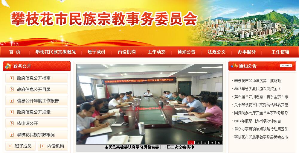 攀枝花市民族宗教事务委员会主要职责:(一)贯彻执行党和政府关于民族、宗教工作的法律法规和方针政策。(二)组织开展民族理论、民族政策和民族问题等重大课题的调查研究,提出有关民族工作的政策和建议;调查全市宗教现状,掌握动态和发展趋势,提出政策性意见和建议。(三)监督办理少数民族权益保障事宜。(四)推动宗教界人士开展爱国主义、社会主义、维护祖国统一和民族团结的自我教育;巩固和发展各民族宗教界的爱国统一战线;会同处理民族关系中的重大事宜,促进各民族间的平等团结、互助合作,维护社会稳定和国家统一。(五)开展民族、宗教政策、法规的宣传教育工作并监督实施;组织民族团结进步表彰活动。(六)分析民族地区经济运行情况,研究提出民族地区经济发展的有关问题和特殊政策、措施;拟订我市民族地区改革开放、经济发展规划;组织协调民族地区科技发展、对口支援、经济技术协作和民族贸易工作;管理三州开发资金和支援不发达地区发展资金(以下简称“两项资金”),研究提出少数民族和民族地区有关专项资金的分配与使用建议;协助承办民族地区扶贫开发事宜。(七)研究少数民族和民族地区教育、文化、科技、卫生、体育、计划生育、新闻出版等方面的特殊问题,提出相关建议,并承办相应事务。(八)管理少数民族语言文字工作,指导少数民族古籍的搜集、整理、出版工作。(九)组织对全市少数民族权益状况的调查研究,承办相关事宜。(十)依法保护公民宗教信仰自由;保护宗教团体、宗教活动场所和宗教界人士的合法权利;保护宗教教职人员履行正常的教务活动;保护信教群众正常的宗教活动。(十一)负责宗教法律、法规和政策贯彻实施过程中的行政管理和监督工作;引导、促进宗教在法律、法规和政策范围内活动,防止和制止不法分子利用宗教进行非法、违法活动。(十二)负责组织实施安置凉山州自发迁居农民工作规划;督促县(区)和市级相关部门抓好凉山州自发迁居农民的扶贫、救济、计生等工作;拟订凉山州自发迁居农民发展规划,积极向省政府和上级有关部门争取政策和专项资金,并监督检查政策和资金的落实,加快凉山州自发迁居农民的发展;加强对自发迁居农民的管理,协助县(区)和相关部门处理好自发迁居农民的遗留问题。指导县(区)全面完成凉山州自发迁居农民的安置发展工作。(十三)协助有关部门做好民族地区干部队伍建设工作;帮助宗教团体培养、教育宗教教职人员,搞好自身建设;办理宗教团体需政府协助和协调的事务。(十四)负责民族工作领域的对外交流与合作,开展少数民族和民族地区的对外宣传工作;组织、接待少数民族学习、参观、考察等事宜。支持、帮助宗教界开展对外和对香港、澳门、台湾地区的友好交往活动。(十五)指导各县(区)民族宗教工作。