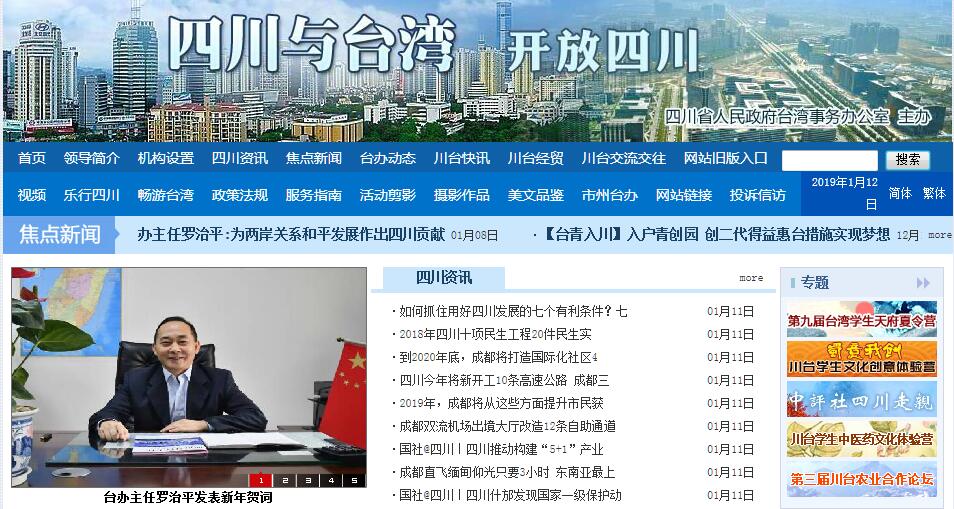 中共四川省委台湾工作办公室、四川省人民政府台湾事务办公室是中共四川省委主管对台工作的职能部门,是四川省人民政府主管台湾事务的办事机构。内设:秘书处、综合研究处、宣传处(新闻处)、经济处(投诉协调处)、交流处、联络处、人事处。主要职责是:1、贯彻执行党中央、国务院制定的对台工作方针政策和省委、省政府的有关指示要求;研究、拟订全省对台工作实施意见,经批准后组织实施。2、组织、指导、管理、协调省级机关各部门和各市、州的对台工作;检查了解各地区、各部门贯彻执行党中央、国务院对台工作方针政策和省委、省政府对台工作具体意见的情况。3、会同有关部门协调和指导全省对台经贸工作,包括招商引资,金融、科技合作等;协调做好对台资企业的政策指导、管理和服务工作;协调有关部门和地方做好台商投诉工作。4、统筹管理和协调四川与台湾的经济、科技、文化、教育、卫生、体育、新闻、影视、出版、学术、宗教等各个领域的交流事宜,以及四川与台湾人员往来、考察、研讨等工作;会同有关部门做好台属的工作;处理涉台事件。5、负责对台宣传、教育工作和我省涉台新闻发布工作。6、负责中共四川省委对台工作领导小组的日常工作;指导四川省台湾同胞联谊会的工作。8、完成省委、省政府和省委对台工作领导小组交办的其他任务。
