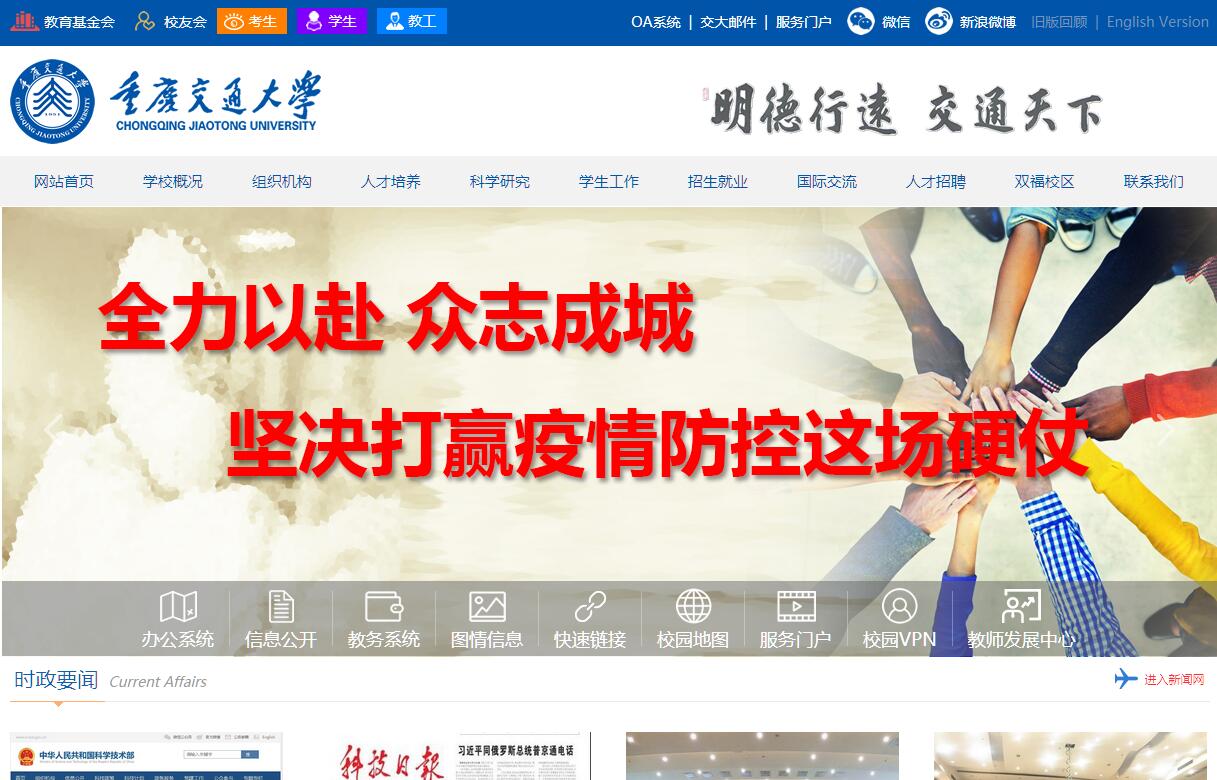 重庆交通大学是一所交通特色鲜明、以工为主的多科性大学。1951年,根据毛主席指示,为修建康藏公路、建设大西南,刘伯承、邓小平领导的西南军政委员会创办学校,时名西南交通专科学校。1960年,组建重庆交通学院,成都工学院土木系、四川冶金学院冶金系、武汉水运学院水工系等相继并入。2006年,更名重庆交通大学。2000年,学校由交通部划转重庆市管理,现为交通运输部与重庆市共建高校。办学条件日益改善。现有南岸、双福、大坪三个校区,占地近3000亩,校舍83万余平方米,馆藏纸质和电子文献440余万册、期刊杂志1500多种、中外文数据库100余个,教学科研仪器设备总值4.39亿元,拥有1个国家级和6个市级实验教学示范中心。教师队伍素质优良。现有教职工2000余人,其中专任教师近1500人,高级职称700余人,长江学者特聘教授、“千人计划”“万人计划”科技创新领军人才、“百千万人才工程”国家级人选、交通运输部“十百千人才工程”、重庆市“巴渝学者”等国家和省部级人才120余人次。聘有两院院士、知名企业家、工程大师等150余位特聘或兼职教授。学科专业交通特色鲜明。现有交通运输工程、水利工程、管理科学与工程土木工程等4个一级学科博士学位授权点,土木工程、交通运输工程、水利工程等3个博士后科研流动站,有土木工程、机械工程等16个一级学科硕士学位授权点,设有土木工程学院、河海学院、交通运输学院等19个学院,有62个普通本科专业。土木工程、港口航道与海岸工程、交通运输等3个国家特色专业通过工程教育专业认证,水利水电工程等7个专业获批教育部“卓越工程师教育培养计划”试点专业,有重庆市“三特行动计划”特色专业15个、特色学科专业群7个。教育教学改革不断深化。优化完善教育教学协同联动机制,创新人生教育,拓展实践平台,凸显“交通+”培养特色,不断创新人才培养模式,打造“创新创业园”,开办“茅以升班”“英才班”“卓越工程师班”“海外项目管理人才班”“CIMA班”“创新创业班”等实验班。现有全日制在校生2.7万名,其中在校博硕士研究生3000余名,普通本科生2.3万余名;累计培养各类各层次人才15万余名。本科毕业生初次就业率连续20年超过90%,入选首批“全国毕业生就业典型经验高校”和首批“全国创新创业典型经验高校”。科技创新实力雄厚。拥有国家内河航道整治工程技术研究中心、山区桥梁与隧道工程国家重点实验室培育基地、交通土建工程材料国家地方联合工程实验室等3个国家级平台,桥梁结构工程交通行业重点实验室、水利水运工程教育部重点实验室、山地城市交通系统与安全重庆市重点实验室等34个省部级平台,西南水运科学研究所、沙漠土壤化研究院等20余个研发机构。在山区桥隧、路基路面、内河港航、单轨交通、运输物流等领域取得了一批有影响力的成果,先后获国家科技进步奖、国家发明奖12项,省部级科技奖300余项。公开发行《应用数学和力学》《重庆交通大学学报》(自然科学版、社会科学版)等学术刊物。国际交流合作有效推进。倡议成立了“一带一路”中波大学联盟,是中俄交通大学联盟核心成员,开办贝宁孔子学院,设有教育部备案的欧洲研究中心、贝宁研究中心,与欧美等海外50多所高校开展交流合作。设有汉语国际教育本科专业和5个全英文专业,是“中国政府奖学金”委托培养院校,面向世界各国招收留学生。面向未来,学校秉承“明德行远、交通天下”校训,弘扬“甘当路石、进无止境”办学传统,立足西部,面向全国,争创一流,将努力建设国际上有一定影响、国内知名,以工为主、多学科协调发展,特色鲜明、优势突出的高水平大学,为交通运输行业和地方经济社会发展做出积极贡献。
