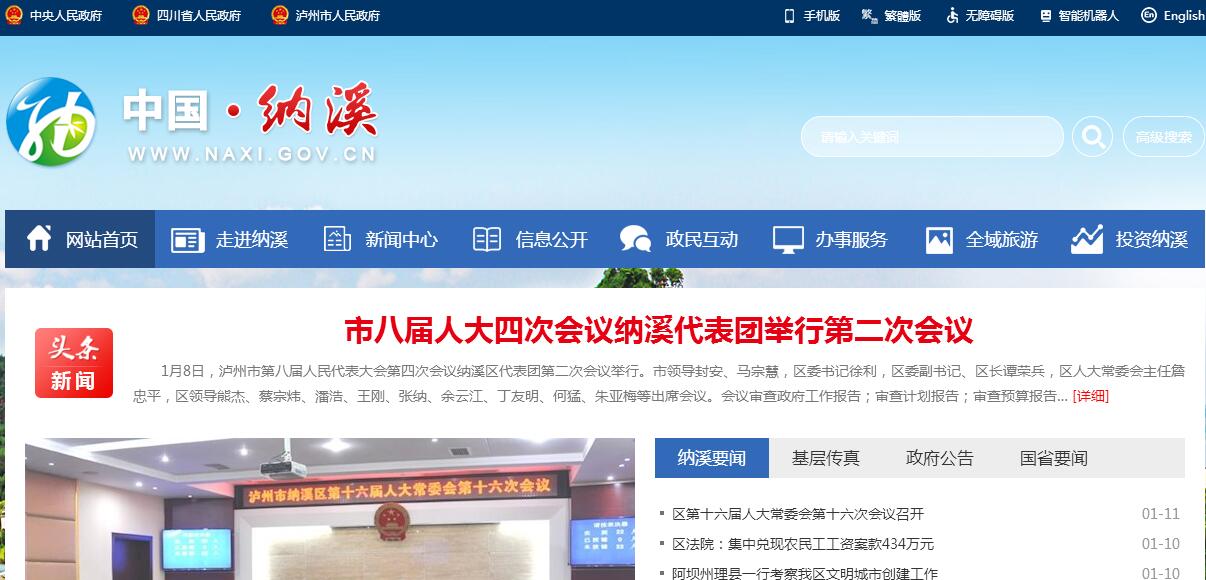 纳溪位于四川南缘、长江与永宁河交汇处,因三国时期“纳贡出此溪”而得名,又名“云溪”,有“海纳百川”之意。南宋理宗绍定五年(公元1232年)建县,1996年撤县建区,全区幅员面积约1150平方公里,辖12个镇、3个街道,总人口50万,享有 “中国最佳生态旅游示范区”“中国白酒酒庄文化服务综合标准化示范区”“全国重点产茶县” “中国特早茶之乡”“中国名茶之乡”“全国生态文明先进区”“中国特色竹乡”“中国民间文化艺术之乡”“中国民生建设百强区”“中国最美养生休闲旅游名区”等美誉。纳溪南高北低,平坝、丘陵、低山兼有,海拔在230~963.2米之间,全区最高点在打古镇普照山白土岩。纳溪区有条形山脉2支,均东西走向。一支横穿区境中部,东从合江入境,经白节镇大旺、天仙镇乐登、大渡口镇和丰向江安方向延伸,海拔在500米以上,东部高于西部,境内绵延40余千米;一支横亘区境南部打古镇、上马镇、合面镇,蜿蜒30余千米,海拔在450米以上。境内有大小溪河130余条,总长度640余千米。长江流经区境25.1千米,经大渡口镇、新乐镇、纳溪城区流入江阳。永宁河是区境长江最大支流,纵贯区域中部,经上马、护国、渠坝、天仙、城区注入长江,境内流长50.1千米。纳溪境内群山叠嶂、溪流纵横,错落有致的地形地貌、依山傍水的生态环境、富饶丰富的资源禀赋,构成了一幅秀美的山水画卷。最高山峰——打古镇普照山由大明状元杨升庵题名。永宁河作为区域内长江最大的支流,蜿蜒曲折、恬静优美,自古以来就有“清水河”的美誉。国家AAAA级风景区天仙硐山地起伏、地势险峻,前山以天全寺为核心,拥有全国唯一的汉白玉五百罗汉堂,后山乐道古镇、抗战小学、夜郎大峡谷等彰显丰富的历史文化底蕴;被誉为“西蜀玉珠”的凤凰湖景区,森林覆盖率达89%,是大自然神奇孕育的美丽“天然氧吧”,是集湖光山色,高山峡谷、奇石怪崖、飞瀑洞宫、林涛竹海,百年古典庄园为一体的风景名胜旅游区;素有“小峨眉”之称的三华山——大旺竹海生态旅游风景区,集“奇、险、幽、特、美”于一体,自然景观众多,分别独具特色。还有鼓楼山、烟子洞瀑布等巧夺天工、气势磅礴的自然景观。这里革命传统悠久,护国战争中著名的棉花坡战役就发生在这里,曾留下蔡锷、朱德等革命先辈的光辉足迹,建有全国唯一以护国战争为主题的“护国战争纪念馆”。今天的纳溪正以更加生态、更加美丽的身姿迎接来自远方的客人,一座宜居宜游、宜商宜业的现代山水新城已经兴起,一幅“绿色产业基地 秀美人文纳溪”的美好画卷正徐徐展开。