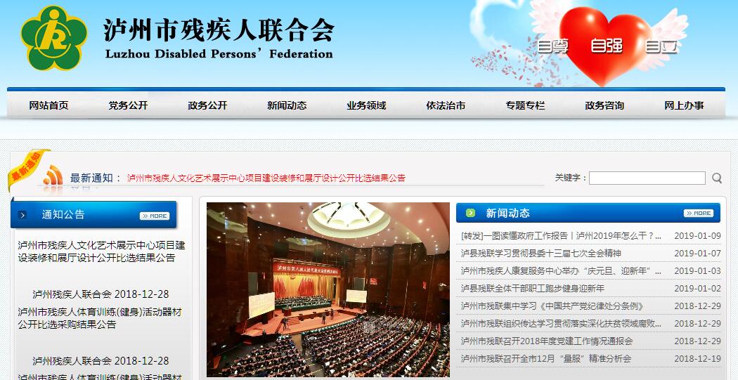 泸州市残疾人联合会的前身为泸州市盲聋哑协会。1990年,泸州市人民政府根据残疾人事业发展的需要,批准成立泸州市残疾人联合会(副县级)。1998年升格为正县级单位。泸州市残疾人联合会是经泸州市人民政府批准和国家法律确认的将残疾人自身代表组织、社会福利团体和事业管理机构融为一体的事业团体。市残联由市政府领导同志联系,业务上接受四川省残联和市政府有关部门对口指导,在市计划中单列户头,与各县、区建立业务联系。市残联实行代表大会制度,每5年召开一次,选举本届残联主席团;市残联主席由一名副市长担任,副主席由有关委、办、局领导和残疾人代表组成;执行理事会在主席团领导下工作。泸州市残疾人联合会执行理事会是常设执行机构。市残联机关下设2科1室(办公室、组织宣传发展科、康复教育就业科),直属单位2个(残疾人康复服务中心、残疾人劳动就业服务所),分别负责机关行政事务、泸州市残疾人工作委员会秘书处日常工作和残疾人的劳动就业、特殊教育、职业培训、扶贫解困、康复、宣传、文体、政策研究、无障碍设施和国际交往等工作。其主要职责:(一)听取残疾人意见,反映残疾人需求,代表残疾人共同利益,维护残疾人权益,为残疾人服务。(二)团结、教育残疾人遵守法律,履行应尽的义务,发扬乐观进取精神,自尊、自信、自强、自立,为社会主义建设贡献力量。(三)弘扬人道主义,宣传残疾人事业,沟通政府、社会与残疾人之间的联系,动员社会理解、尊重、关心、帮助残疾人。(四)开展残疾人康复、教育、就业、职业培训、扶贫、文化、体育、科研、用品供应、福利、社会服务、无障碍设施和残疾预防等工作,创造良好的环境和条件,扶助残疾人平等参与社会生活。(五)协助政府研究、制定和实施残疾人事业规章、政策、规划和计划,对有关业务领域进行指导和管理。(六)协助县、区党委考察县、区残联领导班子和做好残联干部的管理工作,对全市县、区和企事业单位残联组织负责人进行培训。(七)承担泸州市人民政府残疾人工作委员会的日常工作,做好综合、组织、协调和服务工作。(八)组织实施残疾人分散按比例就业工作,指导监督和宏观管理残联系统的残疾人福利企业,会同有关部门制定、监督实施残疾人社会福利生产的扶持保护政策。(九)负责对各类残疾人社团组织和经济组织进行监督管理。(十)统筹开展为残疾人事业募捐活动。(十一)开展残疾人事业的队伍交流与合作。(十二)承办市政府和省残联交办的其他工作。