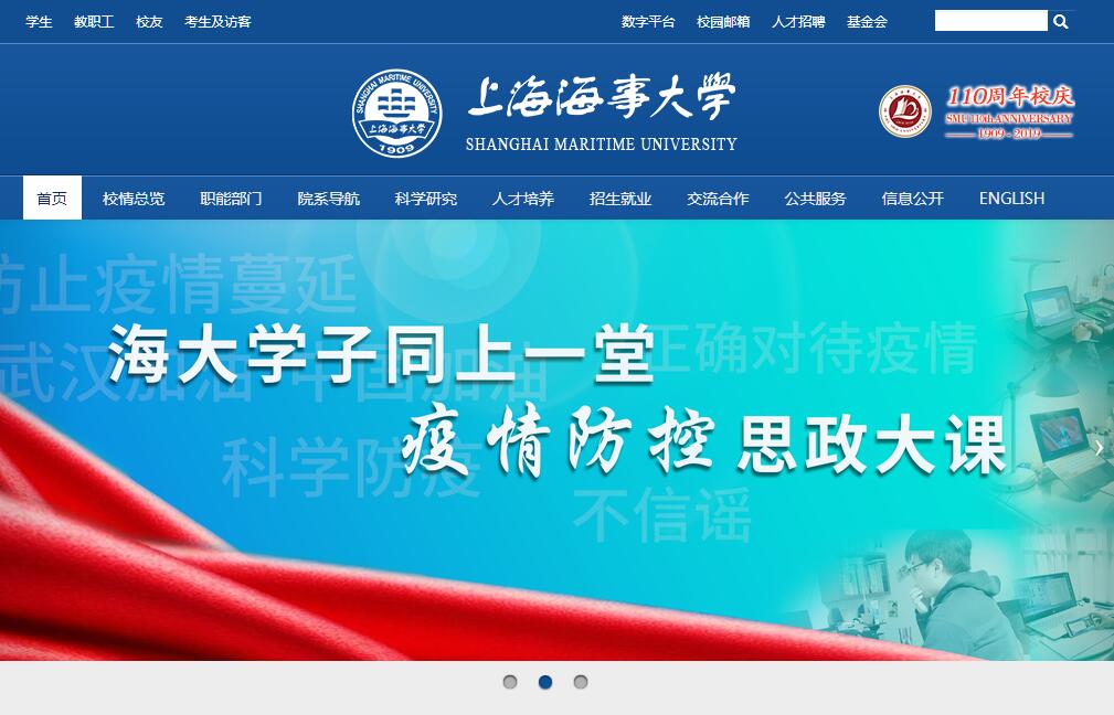 中国高等航海教育发轫于上海,1909年晚清邮传部上海高等实业学堂(南洋公学)船政科开创了我国高等航海教育的先河。1912年成立吴淞商船学校,1933年更名为吴淞商船专科学校。1959年交通部在沪组建上海海运学院。2004年经教育部批准更名为上海海事大学。为更好地服务上海国际航运中心建设和国家航运事业发展,根据上海市高校布局结构调整规划,2008年上海海事大学主体搬迁临港新城。2009年学校举行百年校庆系列活动。上海海事大学是一所以航运、物流、海洋为特色,具有工学、管理学、经济学、法学、文学、理学和艺术学等学科门类的多科性大学。2008年,上海市人民政府与交通运输部签订协议,共建上海海事大学。学校设有2个博士后科研流动站(交通运输工程、电气工程),4个一级学科博士点(交通运输工程、管理科学工程、船舶与海洋工程、电气工程),17个二级学科博士点,14个一级学科硕士学位授权点,59个二级学科硕士学位授权点,8个专业学位授权点和10个工程硕士学位授权领域,47个本科专业。拥有11个省部级重点研究基地。现有1个国家重点(培育)学科,1个上海市高峰学科,2个上海市高原学科,9个部市级重点学科,工程学科进入ESI全球前1%。5个国家级特色专业,1个国家级综合改革试点专业,6个教育部卓越工程师教育培养计划专业,17个上海市本科教育高地。现有2个国家级实验教学示范中心,2个国家级虚拟仿真实验教学示范中心,5个国家级实践教学示范中心,1个全国示范性工程专业学位研究生联合培养基地。设有水上训练中心,拥有万吨级集装箱教学实习船“育锋”轮,4.8万吨散货教学实习船“育明”轮。在2004年教育部本科教学工作水平评估和2006年教育部英语专业教学评估中获得优秀。2017年,年度科技总经费达到3亿元,获一批国家级科研项目及部市级以上科技进步奖。实行校院二级管理体制,现设有商船学院、交通运输学院、经济管理学院(设亚洲邮轮学院)、物流工程学院(设中荷机电工程学院)、法学院、信息工程学院、外国语学院、海洋科学与工程学院、文理学院(设马克思主义学院)、徐悲鸿艺术学院、物流科学与工程研究院、上海高级国际航运学院等二级办学部门。在23000余名学生中,有本科生17000余人,各类在校研究生近5000人,留学生700余名。在1100余名专任教师中,有教授163名,具有博士学位的教师比例约60%。学校致力于培养国家航运业所需要的各级各类专门人才,已向全国港航企事业单位及政府部门输送了大量毕业生,被誉为“高级航运人才的摇篮”。学校2013年成立中国(上海)自贸区供应链研究院和上海高级国际航运学院。中国(上海)自贸区供应链研究院将自贸区建设与供应链研究有机结合,以提升自贸区产业链建设水平,促进自贸区货物贸易向服务贸易的转型发展,同时推动政府监管职能的转变。上海高级国际航运学院采取国际上先进的商学院运作模式,与全球优秀教育机构资源共享,着力打造国内领先、国际知名的航运金融教育品牌,构筑具有影响力的航运高端人才输出基地。2008年,上海市教育委员会、上海市城乡建设和交通委员会、上海海事大学、虹口区人民政府等20多家单位共同发起成立上海国际航运研究中心。中心挂靠上海海事大学,是国际航运业发展的研究和咨询机构,为政府和国内外企业与航运机构等提供决策咨询和信息服务,是上海市教委首批建立的“高校知识服务平台”之一。 2014年,市教委将该平台挂牌为“上海市协同创新中心”。学校与境外80余所姐妹院校建立了校际交流与合作关系,开展教师交流、合作办学、合作科研、学生交换等。与联合国国际海事组织、波罗的海国际航运公会、挪威船级社等国际知名航运组织/机构建立了密切联系。自2010年起开设“国际班”,邀请美国、韩国、波兰、俄罗斯、德国等国家航海院校的学生来校学习“航海技术”“航运管理”等专业。2011年,经教育部批准,学校与加纳中西非地区海事大学合作举办“物流管理”本科教育项目,并开始在非洲招生,这是上海市地方高校第一个颁发中国高校本科文凭的海外办学项目。2012年,学校获教育部批准正式成为“接受中国政府奖学金来华留学生院校”。