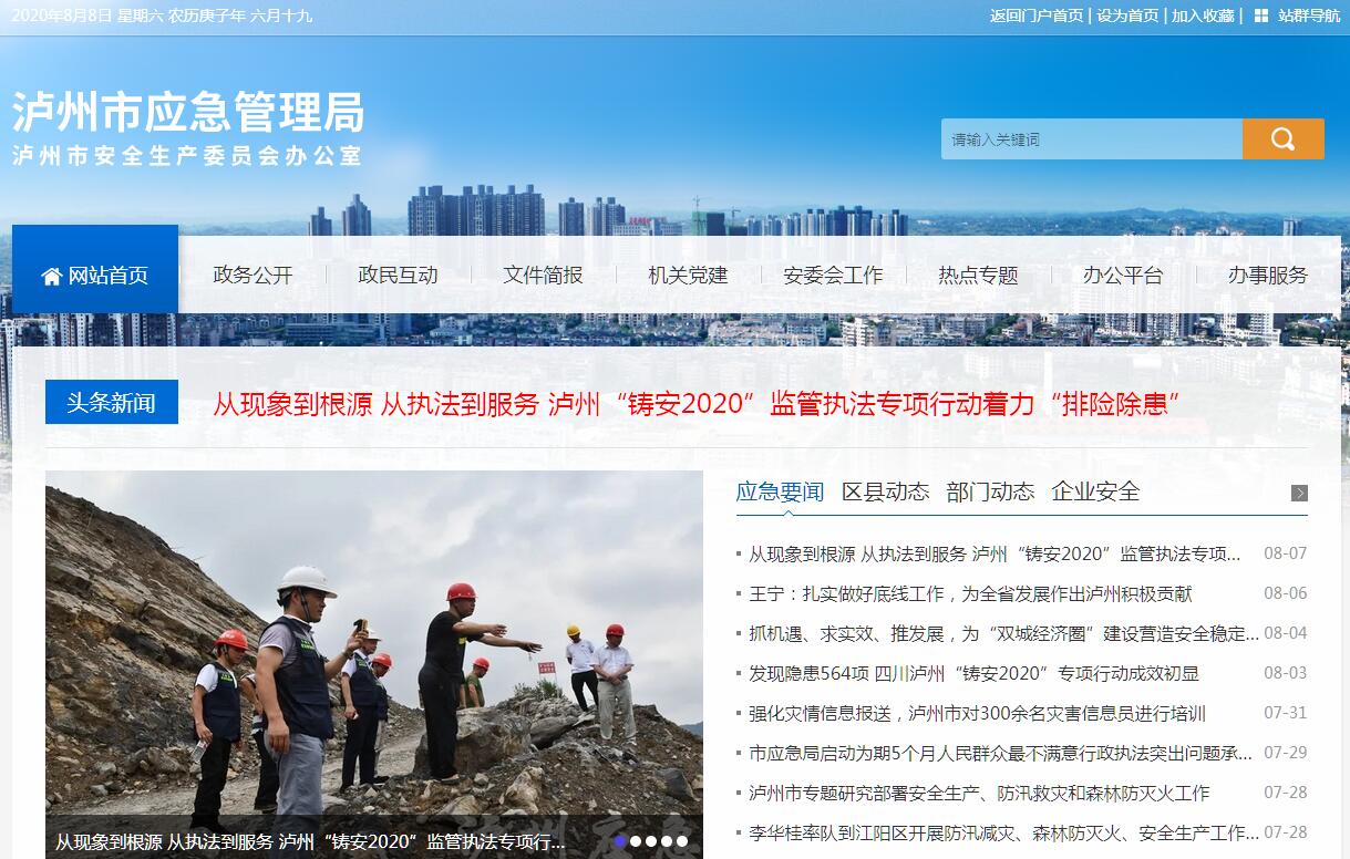 泸州市应急管理局主要职责:(一)负责应急管理工作,组织和指导各地、各部门应对安全生产类、自然灾害类等突发事件和综合防灾减灾救灾工作。负责安全生产综合监督管理和工矿商贸行业安全生产监督管理工作。(二)拟订应急管理、安全生产等政策措施,组织编制全市应急体系建设、安全生产和综合防灾减灾规划,起草相关规范性文件。(三)负责组织、指导应急预案体系建设,建立完善事故灾难和自然灾害分级应对制度,牵头组织编制全市综合应急防灾减灾预案和安全生产类、自然灾害类专项预案,负责应急预案衔接工作,组织开展预案演练并落实,推动应急避难设施建设。(四)牵头建立统一的应急管理信息系统,负责信息传输渠道的规划和布局,建立监测预警和灾情报告制度,健全自然灾害信息资源获取和共享机制,依法统一发布灾情。(五)负责组织、指导、协调安全生产类、自然灾害类等突发事件应急救援,承担全市应对较大及以上灾害指挥部工作,综合研判突发事件发展态势并提出应对建议,负责组织较大及以上灾害应急处置工作。(六)统一协调指挥各类应急专业队伍,建立应急协调联动机制,推进指挥平台对接,提请衔接解放军和武警部队参与应急救援工作。(七)按照国家相关政策和规定负责消防、森林火灾扑救、抗洪抢险、地震和地质灾害救援、生产安全事故救援等专业应急救援力量建设,依法依规统筹指导各地及社会应急救援力量和应急保障能力建设。(八)按照国家和省、市的相关政策和规定负责消防工作,组织和指导消防监督、火灾预防、火灾扑救等工作。(九)负责自然灾害综合监测预警工作,承担自然灾害综合风险评估工作,指导协调森林火灾、水旱灾害、地震和地质灾害等防治工作。(十)负责组织、协调灾害救助工作,组织和指导灾情核查、损失评估、救灾捐赠工作,按照规定管理、分配中央、省、市救灾款物并监督使用。(十一)依法承担市政府安全生产综合监督管理责任,指导协调、监督检查市级有关部门、区县政府、园区管委会安全生产工作,组织开展安全生产巡查、考核工作。(十二)按照安全生产“管行业必须管安全、管业务必须管安全、管生产经营必须管安全冶和分级、属地原则,督促指导区县、园区、各行业主管部门依法监督检查工矿商贸生产经营单位贯彻执行安全生产法律法规情况及其安全生产条件和有关设备(特种设备除外)、材料、劳动防护用品的安全生产管理工作。协助省应急厅做好省属在泸工矿商贸企业安全生产监督管理工作。负责危险化学品安全监督管理综合工作和烟花爆竹安全生产监督管理工作。(十三)承担煤矿、非煤矿山、危险化学品、非药品类易制毒化学品和烟花爆竹等生产经营单位安全生产准入管理责任。(十四)拟订煤炭产业发展计划并组织实施,按权限审核、上报煤炭项目并负责建设管理。负责煤炭生产协调和监督管理、煤炭行业结构调整与产业升级、煤矿瓦斯等级鉴定、瓦斯治理与利用。推进煤炭体制改革。(十五)承担煤矿安全生产监督管理责任,依法监督检查煤矿企业贯彻执行安全生产法律法规情况,依法查处安全生产违法行为。负责组织、指导煤矿企业安全专项整治、安全标准化、瓦斯和水害防治及相关安全科技发展工作。协助省应急厅做好省属在泸国有重点煤矿企业的安全生产监督管理工作,参与煤矿事故调查处理。(十六)依法组织、指导生产安全事故调查处理,监督事故查处和责任追究落实情况。组织开展自然灾害类突发事件的调查评估工作。(十七)开展应急管理和安全生产方面的交流与合作,组织参与安全生产类、自然灾害类等突发事件的跨地区救援工作。(十八)制定应急物资储备和应急救援装备需求规划并组织实施,会同市发展改革委等部门建立健全应急物资信息平台和调拨制度,在救灾时统一调度。(十九)负责应急管理、安全生产宣传和培训工作,组织和指导应急管理、安全生产的科学技术研究、推广应用和信息化建设工作。(二十)负责职责范围内的职业健康、生态环境保护、审批服务便民化等工作。(二十一)完成市委、市政府交办的其他任务。