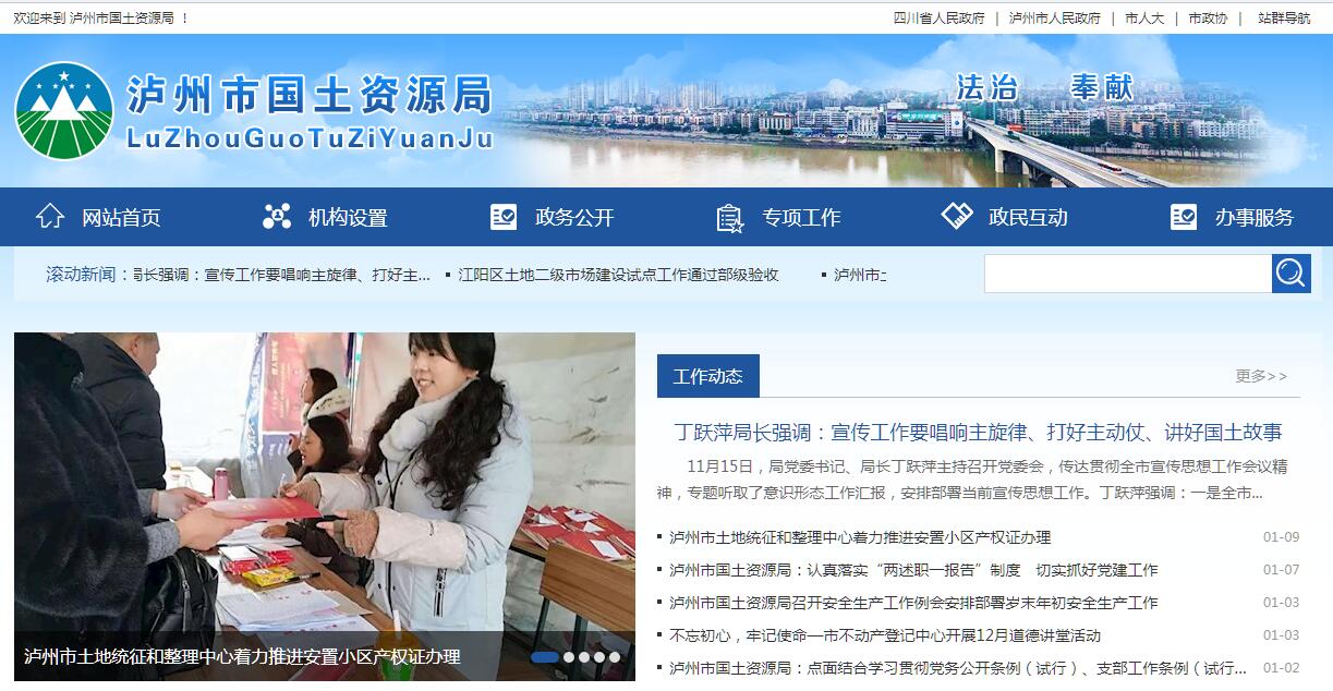 泸州市国土资源局主要职责:一、贯彻执行国家有关国土资源的调控政策、措施和法律、法规,承担保护与合理利用土地资源、矿产资源的责任。编制全市国土资源发展战略的国土规划并组织实施,研究提出全市国土资源供需总量平衡的政策建议。编制并组织实施全市土地利用总体规划、矿产资源保护和地质环境规划,制定并组织实施国土资源领域资源节约集约利用和循环经济的政策措施。二、承担规范国土资源管理秩序的责任。负责本系统、本部门依法行政工作,指导全市国土资源依法行政工作,监督全市执行和遵守国土资源管理法律、法规及土地、矿产资源规划、计划的情况。加强对下级国土资源行政主管部门履行职责的管理监督,督查全市违反国土资源管理法律、法规的行为。调查处理国土资源重大违法案件。三、承担优化配置国土资源的责任。编制和组织实施全市土地利用总体规划、土地利用年度计划、土地整理复垦开发专项规划。参与报省、市政府审批的城市总体规划审核,承办土地利用总体规划的调整、年度计划的管理、各类各业建设农用地转用征收审查和建设项目用地预审。指导并按法定权限审核市、区县土地利用总体规划、矿产资源规划,组织编制矿产资源、地质勘查、地质环境规划和地质灾害防治、矿山地质环境保护等专项规划并监督检查规划情况。负责国土资源综合统计。四、负责规范国土资源权属管理。依法保护土地资源、矿产资源等自然资源所有者和使用者的合法权益,组织调处重大权属纠纷,指导土地确权,负责各类土地登记资料的收集、整理、共享和汇总管理,提供社会查询服务。五、承担全市耕地保护的责任,确保规划确定的耕地保有量和基本农田面积不减少。牵头拟订并组织实施耕地保护政策,组织实施基本农田保护,监督占用耕地补偿制度执行情况。指导未利用土地开发、土地整理、土地复垦和耕地开发的监督工作。组织实施土地用途管制、农用地转用和土地征收征用,承担报国土资源部和省政府审批的各类用地的审核、报批工作。六、承担及时准确提供全市土地利用各种数据的责任。组织土地资源调查、地籍调查、土地统计和动态监测,组织实施重大土地专项调查,指导全市地籍调查、登记工作。七、承担节约集约利用土地资源的责任。管理和监督城乡建设用地供应、政府土地储备、土地开发和节约集约利用。会同农业部门监督管理农村集体建设用地使用权的流转。承担审核改制企业的国有土地资产的处置。八、承担规范国土资源市场秩序的责任。监测土地市场和建设用地利用情况,监管地价,规范和监管土地市场。规范和监管矿业权市场,组织对矿业权人勘查、开采活动进行监督管理。规范和监管国土资源相关社会中介组织和行为,依法查处违法行为。九、负责矿产资源开发、利用、保护的监督管理,依法管理矿业权的审批登记发证和转让审批登记。组织编制矿业权设置方案,负责全市矿产资源开发及采矿权信息系统建设与管理。十、负责地质勘查和矿产资源储量管理。组织实施地质调查评价、矿产资源勘查,对地质勘查活动进行监督管理。承担矿产资源储量统计年报、初审登记,组织实施矿山储量动态监督管理,组织实施矿产资源储量调查,承担压覆矿产资源初审工作。十一、承担地质环境保护的责任,组织、协调、指导和监督地质灾害防治工作。指导重大地质灾害应急处置,组织拟订、实施全市突发重大地质灾害应急预案。组织实施矿山地质环境、地质遗迹保护,监督管理古生物化石、地质遗迹、矿业遗迹等重要保护区、保护地,依法管理水文地质、工程地质、环境地质勘查和评价工作,监测、监督防止地下水过量开采和污染,承担城市地质、农业地质、旅游地质的勘查与评价工作。十二、依法征收土地、矿产资源收益,规范、监督资金使用。依法组织土地、矿产资源专项收入的征管,配合有关部门拟订收益分配制度,配合有关部门指导、监督全市土地整理复垦开发资金的收取和使用。参与管理土地、矿产等资源性资产,参与管理国家、省出资形成的矿业权权益,负责有关资金、基金的预算和财务、资产管理与监督。十三、推进国土资源科技进步,组织开展对外合作与交流。组织实施国土资源科技发展、人才培养规划和计划,推进国土资源信息化和信息资料公共服务。协调境外矿产资源勘查,参与矿产资源开发工作,依法审批或审核对外合作区块,监督对外合作勘查开采行为。十四、负责全市测绘单位的测绘资格审查报批和测绘工作证件、测绘任务登记管理;负责市外测绘单位、外国或境外地区的组织和个人在全市行政区域内进行测绘或与有关单位合作测绘成果目录;负责对外提供测绘成果的审查报批;负责全市测量标志的管理和保护工作,审查报批永久性测量标志的拆迁;指导区县及市级有关部门的测绘工作。十五、负责管理县国土资源主管部门领导班子成员及科级干部,负责管理区国土资源分局领导班子及系统人员;负责区县国土资源主管部门领导班子和本系统的党风廉政建设、行业作风建设。十六、履行廉政建设职责,执行廉政建设责任制的各项规定。明晰职权,防控廉政风险,建立行政权力公开透明的运行机制,推进廉政建设的标准化、规范化、制度化。十七、承担市政府公布