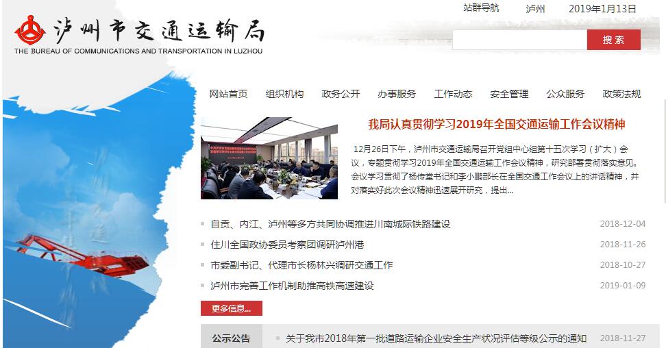 泸州市交通运输局主要职责:1、贯彻执行国家和省有关交通运输行业的方针、政策和法律、法规。组织拟订并监督实施港口城市、公路、水路等行业规划、政策和标准,会同有关部门编制综合运输体系规划,参与拟订物流业方针战略和规划。2、拟订全市交通运输地方规范性文件,落实行政执法责任制。指导公路、水路行业有关体制改革工作和交通特许经营企业的管理。3、组织实施国家、省、市重点公路、港口、水路工程建设;承担全市高速公路统一管理、建设的有关工作,承担、监督全市地方交通建设项目实施和管理。4、承担道路、港口、水路运输市场监管责任。负责全市公路和水路交通运输行业管理,培育市场,维护平等竞争秩序;指导城乡客、货运管理工作,指导出租汽车行业管理工作,会同有关部门制定运输价格;负责全市公路、水路设施的维护、管理以及路政、运政管理;负责全市公路、桥梁、隧道收取通行费、站卡设置的协调和归口管理。5、承担水上交通安全监管责任。负责水上交通管制、运输船舶及相关水上设施检验、登记和防止污染、救助打捞、通讯导航、船舶代理、外轮理货、危险品运输的监督管理工作;负责港口、航道、港航设施建设使用岸线布局的行业管理;负责船员管理相关工作。指导水上交通安全事故、船舶及相关水上设施污染事故的应急处置,依法组织或参与事故调查处理工作。6、负责提出公路、港口、水路固定资产投资规模和方向、市财政性资金安排建议,按照规定权限审批、核准国家、省规划内和年度计划规模内固定资产投资项目;会同有关部门拟订公路、水路有关规费政策并监督实施,提出有关财政、土地、价格等政策建议;指导交通运输行业审计工作,建立健全规范的交通行业财务管理与会计核算体系。7、组织协调公路、港口、水路有关重点工程建设和工程质量、安全生产监督管理工作。负责对交通行业和产业项目的招标投标活动的监督执法。指导交通运输基础设施管理和维护,承担有关重要设施的管理和维护。按规定负责港口规划和港口岸线使用管理工作,指导交通运输行业特许经营管理,会同有关部门组织实施交通运输行业职业资格管理工作。8、指导公路、水路行业安全生产和应急管理工作。按规定组织协调国家及省重点物资和紧急客货运输,负责全市高速公路及重点干线路网运行监测和协调。组织协调地方交通战备工作,对关系救灾、抢险、战备等紧急客货运输进行必要的调控,承担国防动员有关工作。9、贯彻执行国家和省有关交通科技政策,指导实施交通行业计量、质量、技术标准和规范工作,组织重大科技开发,推动行业科技创新和进步。指导全市交通运输信息化建设,监测分析运行情况,开展相关统计工作,发布有关信息;指导公路、水路行业环境保护和节能减排工作。10、负责公路、港口、水路有关涉外工作,指导全市交通行业招商引资和利用外资工作,开展交通行业地区间的经济合作与交流工作,会同有关部门制定执行涉及交通的有关地方经。