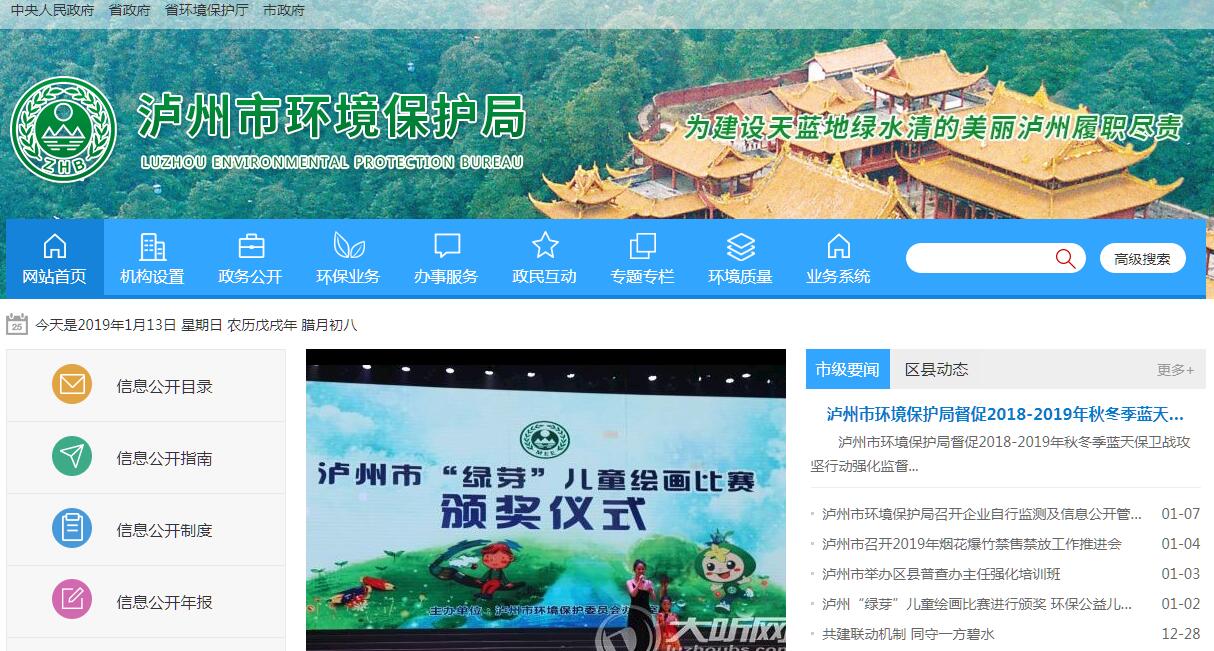 根据中共泸州市委、泸州市人民政府《关于印发〈泸州市人民政府机构改革方案〉和〈关于泸州市人民政府机构改革方案实施意见〉的通知》(泸委发〔2010〕16号),设立泸州市环境保护局(简称市环境保护局),为市政府工作部门。其工作职能是主管全市环境保护工作,依法对全市环境保护工作实施统一监督管理。其主要职责:(一)贯彻执行国家和省环境保护的方针、政策和法律、法规、规章,起草环境保护的规范性文件并组织实施和监督检查,拟定泸州市环境保护规划;参与制定与环境保护相关的经济、技术、资源配置和产业政策,组织编制全市环境功能区划,组织拟订全市重点区域、流域污染防治和饮用水水源地环境保护规划并监督实施,参与制定全市主体功能区划。(二)负责统筹协调和监督管理全市重大环境问题。牵头协调各类环境污染事故和生态破坏事件的调查处理,指导协调各区县突发环境事件的应急、预警工作,协调解决有关跨区域、流域环境污染纠纷,统筹协调全市重点区域、流域的污染防治工作。(三)负责落实全市污染物减排工作。组织制订全市主要污染物排放总量控制计划并监督实施,提出实施总量控制的污染物名称和控制指标,监督检查各区县污染物减排任务完成情况,牵头实施环境目标责任制、污染物总量减排考核并公布考核结果。(四)负责环境保护投资管理。负责提出全市环境保护领域固定资产投资规模和方向、市级财政性资金安排的意见,按规定权限审批全市规划内和年度计划规模内固定资产投资项目并配合有关部门做好组织实施和监督工作。依法负责排污费的征收、缓减免及稽查工作。参与指导、推动全市循环经济和环保产业发展,参与应对气候变化工作。(五)负责全市从源头上预防、控制环境污染和环境破坏。受市政府委托对重大经济和技术政策、发展规划以及重大经济开发计划进行环境影响评价,对涉及全市环境保护的规范性文件提出有关环境影响方面的意见,按规定审批项目环境影响评价文件,审查全市重大开发建设区域、综合性规划、专项规划的环境影响评价文件。(六)负责全市环境污染防治的监督管理。制定水体、大气、土壤、噪声、光、恶臭、固体废物、化学品、机动车等的污染防治管理制度并组织实施。组织实施排污申报登记、排放许可证核发、环境污染治理资质的审批和发放,负责危险废物经营许可证的发放和管理,会同有关部门监督管理饮用水水源地环境保护工作,组织指导全市城镇和农村的环境综合整治工作,负责环境监察和环境保护行政稽查工作,组织实施或受市政府委托组织实施污染源的限期治理工作,会同有关部门组织开展强制性清洁生产审核工作。(七)指导、协调、监督全市生态保护工作。组织拟订和监督实施全市生态保护规划,组织评估生态环境质量状况,监督对生态环境有影响的自然资源开发利用活动、重要生态环境建设和生态破坏恢复工作,指导、协调、监督各种类型的自然保护区、风景名胜区、森林公园的环境保护工作,向市政府提出新建各类市级自然保护区审查、审批建议,协调和监督野生动植物保护、湿地环境保护、荒漠化防治工作。指导、协调农村生态环境保护、生态示范区建设,监督生物技术环境安全,牵头生物物种(含遗传资源)工作,组织协调生物多样性保护。组织开展各类生态创建工作。(八)负责全市核安全和辐射安全的监督管理。贯彻执行国家和省核安全与辐射安全政策、规划和技术标准。负责辐射环境事故应急管理工作,参与核事故应急处理工作。监督管理放射源与射线装置安全,配合国家、省监督管理核设施安全相关工作,监督管理核技术应用、电磁辐射、伴有放射性矿产资源开发利用中的污染防治。负责射线装置的使用审批和放射性同位素的使用审批。负责核与辐射建设项目“三同时”管理工作。参与反生化、反核和辐射恐怖袭击工作。负责全市核与辐射监测和监察工作。(九)负责全市环境监测、统计和信息发布。监督执行国家和省颁布的各类环境标准,贯彻执行国家、省环境监测制度和规范,制定全市环境监测制度和规范,组织实施环境质量监测和污染源监督性监测。组织对全市环境质量状况进行调查评估、预测预警,组织建设和管理全市环境监测网和环境信息网,建立和实行环境质量公告制度,统一发布全市环境综合性报告和重大环境信息,负责环境统计工作。(十)开展全市环境保护科技工作,管理环境保护科技成果并推广应用,组织开展环境保护重大科学研究和技术工程示范,推动环境技术管理体系建设。(十一)开展全市环境保护对外交流与合作。参与协调市内重要环境保护国际活动和区域合作,管理全市环境保护系统对外经济合作,协调与履约有关的利用外资项目,处理涉外环境保护事务,负责与环境保护国际组织的联系工作。(十二)组织指导和协调全市环境保护宣传教育工作,制订并组织实施全市环境保护宣传教育规划和计划,开展生态文明建设和环境友好型社会建设的有关宣传教育工作,推动社会公众和社会组织参与环境保护,会同有关部门依法对保护和改善环境有显著成绩的单位和个人给予表彰和奖励。(十三)指导全市环境保护系统队伍建设、业务建设和精神文明建设,规划与组织全市环境保护系统在职人员岗位培训和继续教育。(十四)履