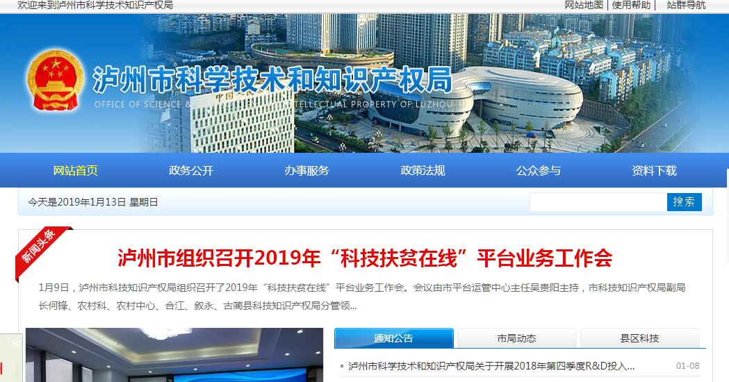 泸州市科学技术和知识产权局主要职责:(一)贯彻执行党和国家、省有关科技和知识产权发展的方针政策和法律法规,拟订全市有关科技发展和知识产权(专利)发展的规划与政策措施,并组织实施和监督检查。(二)牵头拟订和实施全市科技和知识产权发展规划,提出全市科技和知识产权发展的布局和优先领域,负责组织制定和实施年度科技计划和知识产权战略推进计划,统筹协调基础研究、前沿技术研究、重大社会公益性技术研究及关键技术、共性技术研究,牵头组织经济社会发展重要领域的关键技术攻关。组织申报和实施国家、省各类科技计划,承担科技评估管理和科技统计工作。(三)负责组织国、省各类科技项目和省专利实施与促进专项资金项目的推荐、申报、争取、实施、管理和监督的有关工作;会同有关部门组织科技重大专项实施中的方案论证、综合平衡、评估验收和拟订相关配套政策,对科技重大专项实施中的重大调整提出建议。(四)推进全市科技创新体系建设,提出科研条件保障规划和政策措施建议,推进科技基础条件平台(基地)建设和科技资源共享。(五)会同有关部门拟订高新技术产业及园区、知识产权试点示范园区发展的规划和政策措施,负责高新技术企业、创新型企业、高新技术产品的组织申报、初审推荐和管理等相关工作,指导高新技术产业园区、基地等各类科技创新载体建设,推动企业自主创新能力建设,联系民营科技企业,指导、服务全市科技信息化工作。(六)组织拟订科技促进农村和社会发展的政策措施,指导农业科技示范推广基地和可持续发展实验区建设,促进以改善民生为重点的农村建设和社会事业发展。(七)推进科技体制改革工作,提出全市科技体制改革的政策措施、相关科研机构组建或调整的建议,会同有关部门拟订全市科技和专利人才队伍建设规划和提出相关政策建议;负责科技人才和科技管理人才的培养建设工作。(八)会同有关部门提出强化科技投入及优化科技资源配置的政策措施建议,负责本部门预算中的科技经费预决算及经费使用的监督管理。(九)拟订科技成果推广、科技奖励、促进技术市场和科技服务体系发展的政策措施,指导科技成果和专利技术的实施转化,组织相关重大科技成果应用示范和重大专利技术实施,负责组织市科学技术奖、市专利奖的评审和科技成果管理、科技保密以及技术市场工作,指导科技中介组织的建设,推动科技服务业发展。(十)组织拟订科学技术的普及规划和政策措施,负责科学技术普及工作,承担科普工作联席会议制度的落实与监督检查,指导协调科普活动和科技、知识产权宣传工作,负责科技信息和科技期刊管理工作。(十一)组织拟订促进国际科技合作、产学研合作的政策措施,负责我市与国际间及港澳台地区和省外、市外科技交流与合作,推进我市与科研院所、高等院校的产学研合作,组织实施国际科技合作计划、产学研计划,负责全市涉外知识产权事宜的统筹协调,承担科技援助的相关工作。(十二)负责组织协调全市知识产权保护工作。承担整顿和规范市场经济秩序中保护知识产权的有关工作,统筹全市重大专利成果实施转化和产业化工作,负责知识产权试点示范和优势培育工作。(十三)指导协调市政府各部门和各县区及中央、省在泸单位的科技和知识产权工作;承担市科技领导小组和市知识产权工作领导小组的具体工作。(十四)履行廉政建设职责,执行廉政建设责任制的各项规定。明晰职权,防控廉政风险,建立行政权力公开透明的运行机制,推进廉政建设的标准化、规范化、制度化。(十五)承办市政府交办的其他事项。