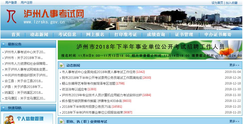 泸州人事考试网由泸州市人力资源和社会保障局主办,由泸州市人事考试中心承办。