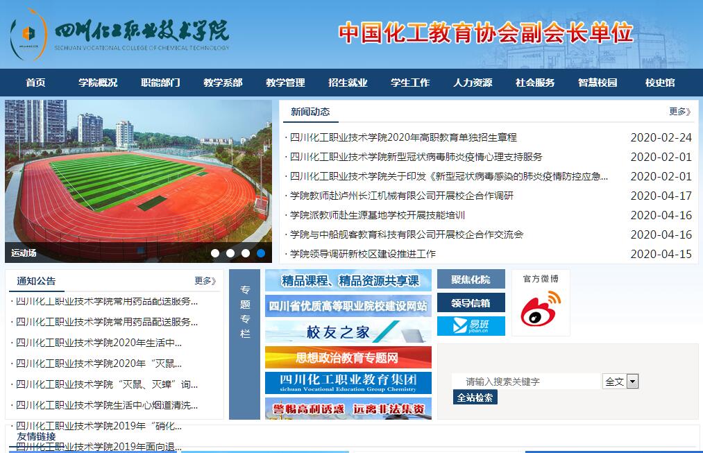 长江之畔,国窖之乡。化工学府,桃李芬芳。四川化工职业技术学院(原泸州化工专科学校)是经四川省人民政府批准、教育部备案的全日制普通高等学校,隶属于四川省经济和信息化厅。学院始建于1953年,办学历史源远流长,是西南地区唯一的历史最悠久、影响最大的化工类高等职业技术学院。1998年成为四川省首批高职办学试点学校,2003年升格为高职学院,2007年在教育部高职高专人才培养工作水平评估中获得“优秀”级称号。2012年6月被确定为四川省“省级示范性高等职业院校建设计划”立项建设单位,2015年1月顺利通过省级示范性高职院校建设项目验收获得“优秀”级。学院是中国石油和化学工业协会、中国化工教育协会“石油和化工行业职业教育与培训全国示范性实训基地”、四川化工职业技能培训中心、泸州市“白酒产业高技能人才培养基地”、全国高职高专学校化工专业教学指导委员会委员单位、全国化工教育协会副会长单位、全国化工教育协会西南大区主任单位、全国化工高职高专院校化工单元操作教学指导委员会主任单位、全国化工高职高专院校高分子加工专业教学指导委员会主任学校。学院位于国家历史文化名城、国家级卫生城市、中国“西部化工城”、省级园林城市——四川省泸州市,就读条件优越,多次被评为“园林式学校”、“市级文明单位”和“省级综合治理模范单位”。学院现占地面积近600亩,图书馆藏图书40余万册,在校学生7千余人。学院以市场需求为导向设置专业,开设36个专业(方向),形成了以应用化工技术、装备制造、生物医药、电子信息技术为龙头,管理、酒店旅游、计算机应用等专业协调发展,适应市场变化的专业结构体系。设有国家职业技能鉴定站以及多个培训中心,能进行107个工种的职业技能鉴定。学院一贯重视学生的职业技能培训工作,校内实验、实训基地总面积5万多平方米,建有16个校内实训基地,128个实验实训室,建设了机械工程实训中心等4个校中厂,实训室覆盖了所有专业,实验实训开出率达100%。学院建有中央财政资助的应用化工技术实训基地和电类实训基地。学院毕业生就业渠道十分畅通,省内外两百余家企事业单位与学院建立了长期稳定的毕业生供需关系。中石化、齐鲁石化、泸天化、云天化、赤天化、川天华、泸州老窖、五粮液、西南化工研究院等大中型企业已成为我院毕业生的实训基地和就业基地。毕业生思想素质好,专业技能强,深受各行业用人单位好评,有相当部分毕业生已成为各企事业单位的技术骨干和管理干部。我院近年来毕业生就业率达98%以上。60余年来,学院培养了6万余名毕业生,在西南地区“有化工企业就有化院人”。中国工程院院士、哈尔滨工程大学教授廖振鹏,西南交通大学副校长、长江学者范平志教授,四川大学教授、国务院政府特殊津贴获得者、原化工学院院长朱家骅,泸州老窖集团董事局主席、泸州老窖股份有限公司董事长谢明,五粮液集团公司总经理、五粮液股份公司董事长刘中国,宜宾天原集团公司总裁兼首席执行官罗云等是他们中的杰出代表。学院因此被誉为“四川化工的黄埔军校”、“西部化工高技能人才的摇篮”。丰富的办学经验,良好的社会声誉,畅通的就业渠道,四川化工职业技术学院凭借其实力吸引了省内外众多的学子前来学习深造。