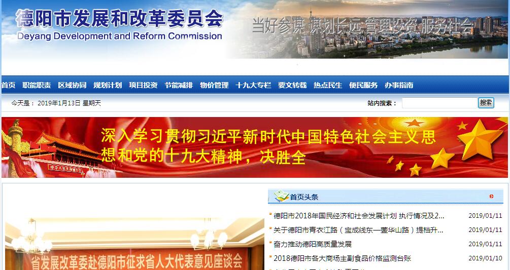 德阳市发展和改革委员会主要职责:(一)贯彻执行国家国民经济和社会发展的战略、方针和政策,研究提出相应的政策措施,拟订并组织实施全市经济和社会发展战略、中长期规划和年度计划;研究提出全市经济发展的总量平衡、发展速度和结构调整的目标、政策;提出运用各种经济手段和政策的建议;受市政府委托向市人大报全市经济和社会发展情况。(二)研究分析全市内外经济形势和发展情况,进行宏观经济的预测、预警;组织对全市经济和社会发展中的重大问题和热点、难点问题的调查研究,提出宏观调控政策建议,综合协调经济社会发展;负责市内经济技术开发区的指导、协调和宏观管理。(三)负责汇总和分析全市财政、金融等方面的情况;提出直接融资的发展战略和政策建议;综合协调财政、金融、价格等经济杠杆以及市上直接掌握的经济手段的使用并通过法规和政策协调、信息指导保证规划、计划的实施。(四)研究全市经济体制改革和对外开放的综合性、全局性问题及对策,提出完善社会主义市场经济体制和以改革开放促进发展的建议,协调发展与改革中的重大问题;组织拟订综合性经济体制改革方案,协调有关专项经济体制改革方案;指导和推进总体经济体制改革以及城市、县(区)综合配套改革与体制创新,组织、指导和协调综合配套改革试点和重大专项经济体制改革试点。(五)提出全市全社会固定资产投资总规模、投资结构,编制年度投资计划;研究提出有关重大投资政策,规划重大项目和生产力布局;安排财政性建设资金,指导和监督政策性贷款的使用方向;申报限额以上和审批、核准、备案权限以内的基本建设项目;按照基本建设程序,负责全市基本建设项目的核准、备案和国家出资的项目的审批工作;引导民间资金用于固定资产投资的方向;研究提出全市利用外资的发展战略、总量平衡和结构优化的目标和政策措施;负责全口径外债的总量控制、结构优化和监控工作;提出拟订全市工商领域外的外商投资产业指导目录的意见;审批权限以内国外贷款、外商投资和境外投资项目;申报和审核利用外资、境外投资的重大项目;负责编制全市重点建设项目和年度投资计划;负责组织和管理重大建设项目稽察特派员工作。(六)研究分析全市经济结构的状况,提出优化所有制结构的建议,拟订促进全市多种经济成分公平竞争和共同.发展的政策措施;提出全市重要经济产业的发展战略和规划,推进产业结构战略性调整和升级;研究并协调农业和农村经济社会发展的有关重大问题,衔接农村专项规划和政策;综合协调产业发展战略、发展规划;拟订全市能源交通发展战略和规划,做好能源供需预测和综合平衡;研究提出全市高技术产业战略和发展规划,推进重大科技成果的产业化,实施技术进步和产业现代化的宏观指导。(七)研究分析区域经济和城镇化发展情况,提出全市区域经济协调发展和实施西部大开发战略的规划,提出城镇化发展战略和政策措施建议。(八)研究分析市内外市场状况,负责重要商品的总量平衡和宏观调控;编制重要农产品、工业品和原材料进出口总量计划,监督计划执行;研究推进国民经济市场化和市场体系建立中的重要体制改革和政策问题;管理粮食、棉花等重要物资和商品的市级储备工作;研究拟订现代物流业发展的战略和规划;提出市内商品市场、生产要素市场的发展规划、总体布局和重大调控政策。(九)做好人口和计划生育、科学技术、教育、文化、卫生等社会事业以及国防动员与经济发展的衔接平衡;提出经济与社会协调发展、相互促进的政策,协调社会事业发展中的重大问题;汇总编制人力资源开发总体发展规划。(十)推进可持续发展战略,研究拟订全市资源开发与综合利用、环境保护、生态建设等规划,参与组织协调规划的实施;参与国土开发、整治、保护总体规划的组织协调,做好土地利用计划与经济和社会发展计划的衔接工作。(十一)研究提出促进就业、调整收入分配、完善社会保障与经济协调发展的政策;协调就业、收入分配和社会保障的重大问题。(十二)拟订全市经济和社会发展以及经济体制改革、对外开放的有关地方行政法规和规章。(十三)负责指导和协调全市招标投标工作,会同有关行政部门拟定招标投标规范性文件,按照职责权限对工程建设项目招标投标活动履行行政监督、查处等行政执法行为。(十四)承办市政府交办的其他事项。