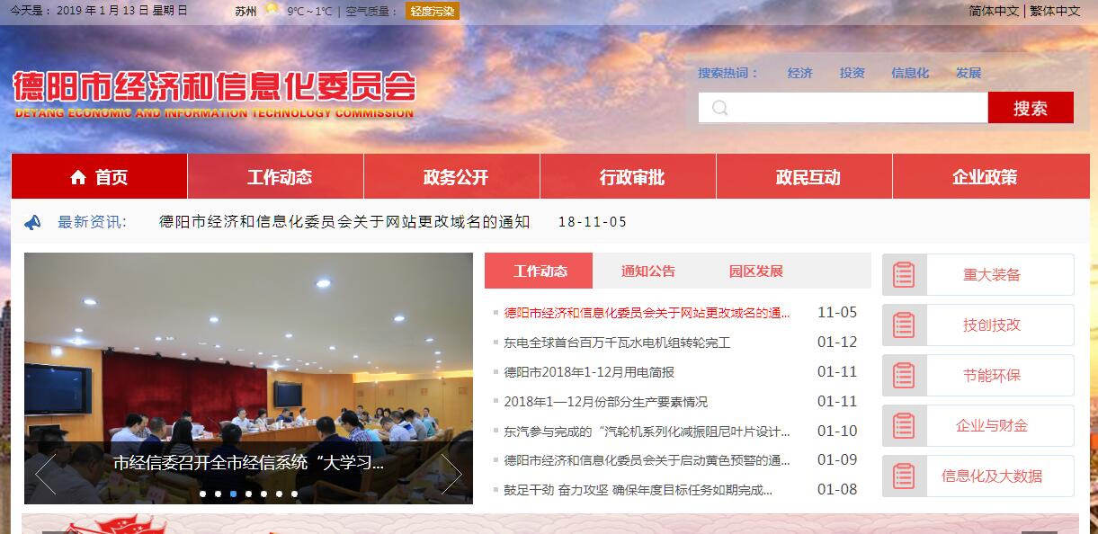 德阳市经济和信息化委员会主要职责:(一)贯彻实施国家、省有关工业经济、信息化和无线电管理的方针、政策和法律、法规、规章,组织实施国家西部大开发战略等有关工业经济的政策措施,拟订全市有关工业经济、信息化和无线电管理的行政规范性文件,负责本系统、本部门依法行政工作,落实行政执法责任制。组织推动信息化和工业化融合、工业化与城镇化联动,负责推进全市工业结构调整。(二)拟订全市新型工业化发展战略和重大政策,负责全市工业行业、信息产业和生产服务业管理,负责全市盐行业管理和统筹推进食盐专营管理,组织实施工业强市战略。协调解决新型工业化进程中的重大问题,参与制订国民经济和社会发展规划,负责制定并组织实施工业( 不含能源,下同)、信息化相关行业的发展规划、年度计划和产业政策,拟订行业技术规范与行业标准并组织实施。拟订加快农产品加工业发展的政策措施,参与推进农业产业化龙头企业建设。(三)监测、分析经济运行态势和质量,建立全市工业经济运行预警机制,协调解决经济运行中的重大问题并提出政策建议。负责电力、煤炭、成品油、天然气等重要物资综合调控、紧急调度和交通运输协调工作,负责市级医药储备的监督管理。承办年度工业经济目标责任考核。(四)负责全市企业技术改造推进工作,组织制定并实施全市企业技术改造投资规划和政策,制定并发布全市企业技术改造投资项目引导目录。提出工业和信息化固定资产投资规模的意见,按照规定权限审批、核准、备案全市企业技术改造项目,组织企业技术改造项目申报国家、省有关专项计划并组织实施。(五)负责全市企业科技和质量的归口管理、指导企业技术创新体系建设,制定鼓励企业技术创新的政策措施,指导企业技术创新、技术引进、重大装备国产化和重大技术装备研制,编制下达全市企业技术创新项目计划并组织实施,按照规定程序会同有关部门组织企业技术中心申报、认定和建设管理工作。(六)负责全市产业园区建设发展的牵头服务工作,拟订并组织实施产业园区、产业集群发展规划和政策措施,指导产业园区合理布局,负责推进重点产业园区建设发展,推进园区公共配套设施建设,组织实施产业园区公共服务平台项目计划。(七)负责全市工业和信息化领域的节能降耗,清洁生产和资源节约与综合利用工作,协调推进工业化与生态环境协调发展中的重大问题,组织实施相关重大示范项目和新产品、新技术、新工艺、新设备、新材料的推广应用。(八)负责推进企业信用制度建设,负责制订工业发展资金等财政专项资金使用计划,负责中小企业信用担保和融资体系建设并实施行业监管,负责制订工业发展资金等财政专项资金使用计划,负责企业技术改造、技术创新、生产运行等涉及财政、信贷、税收、保险等方面问题的协调,指导工业企业直接融资工作,参与工业企业上市培育工作。(九)指导企业建立现代企业制度、改组改造、兼并重组,负责全市企业治乱减负工作,指导企业经营管理人员、专业技术人员培训,负责全市大企业大集团和龙头骨干企业的培育工作,负责全市中小企业发展的指导推进工作,综合协调有关部门拟订促进中小企业发展的政策措施,负责推进中小企业服务体系建设。(十) 拟订中、近期经济运行目标、政策并组织实施。对国家、省、市重大工业经济政策实施情况进行督查。指导工业、信息化和无线电领域的社会中介组织发展。(十一)统筹推进全市信息化工作,拟定并组织实施相关政策,指导企业信息化、电子商务和物联网发展,推动跨行业、跨部门面向社会服务网络的互联互通和信息资源共享。(十二)负责全市信息基础设施建设的规划、协调和管理,组织相关部门制订通信管线规划并承担相应的管理工作,协调电信市场涉及社会公共利益的重大事项。(十三)组织协调全市信息安全保障体系建设,指导和监督政府部门、重点行业的重要信息系统与信息网络的安全保障工作,指导信息安全防范工作,参与处理网络与信息安全重大事件。(十四)统一配置和管理全市无线电频谱资源,依法监督管理无线电台(站),负责无线电电磁环境保护工作,负责无线电监测、检测和干扰查处,协调军地间与省内其他市州间无线电管理相关事宜,维护空中电波秩序,依法组织实施无线电管制。(十五)会同有关部门提出工业和信息化领域对外开放和利用外资的政策建议,参与区域经济合作和承接产业转移工作。指导工业和信息化企业开展对外交流与合作、国际化经营、境外投资及兼并重组。(十六)承担市政府公布的有关行政审批及公共服务事项。(十七) 承办市政府交办的其他事项。
