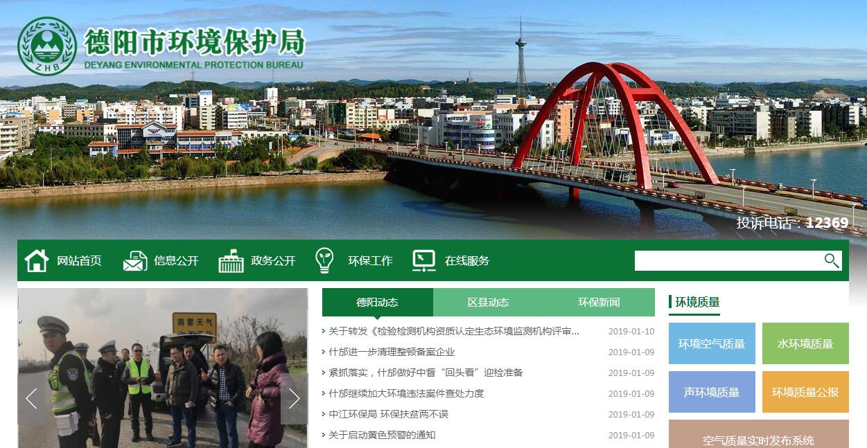 德阳市环境保护局主要职责:(一)贯彻执行国家环境保护的方针、政策和法律、法规、规章。起草环境保护规范性文件并组织实施和监督检查,拟订并组织实施全市环境保护规划,参与制定与环境保护相关的经济、技术、资源配置和产业政策,组织编制全市环境功能区划,组织拟订全市重点区域、流域污染防治和饮用水水源地环境保护规划并监督实施,参与制定全市主体功能区划。(二)负责统筹协调和监督管理全市重大环境问题。牵头协调重特大环境污染事故和生态破坏事件的调查处理,指导协调各地区重特大突发环境事件的应急、预警工作,协调解决有关跨区域、流域环境污染纠纷,统筹协调全市重点区域、流域的污染防治工作。(三)负责落实全市污染物减排工作。组织制订全市主要污染物排放总量控制计划并监督实施,提出实施总量控制的污染物名称和控制指标,监督检查各地区污染物减排任务完成情况,牵头实施环境目标责任制、污染物总量减排考核并公布考核结果。(四)负责环境保护投资管理。负责提出全市环境保护领域固定资产投资规模和方向、市级财政性资金安排的意见,按规定权限审批、核准全市规划内和年度计划规模内固定资产投资项目并配合有关部门做好组织实施和监督工作。依法负责排污费的征收、缓减免及稽查工作。参与指导、推动全市循环经济、低碳经济和环保产业发展,参与应对气候变化工作。(五)负责全市从源头上预防、控制环境污染和环境破坏。受市政府委托对重大经济和技术政策、发展规划以及重大经济开发计划进行环境影响评价,对涉及全市环境保护的规范性文件提出有关环境影响方面的意见,按规定审批项目环境影响评价文件,审查全市重大开发建设区域、综合性规划、专项规划的环境影响评价文件。(六)负责全市环境污染防治的监督管理。制定水体、大气、土壤、噪声、光、恶臭、固体废物、化学品、机动车等的污染防治管理制度并组织实施。组织实施排污申报登记、排放许可证,负责危险废物经营许可证的发放和管理,会同有关部门监督管理饮用水水源地环境保护工作,组织指导全市城镇和农村的环境综合整治工作,负责环境监察和环境保护行政稽查工作,组织实施或受市政府委托组织实施污染源的限期治理工作,会同有关部门组织开展强制性清洁生产审核工作。开展全市环境保护科技工作,管理环境保护科技成果并推广应用,组织开展环境保护科学研究和技术工程示范,推动环境技术管理体系建设。(七)指导、协调、监督全市生态保护工作。组织拟订和监督实施全市生态保护规划,组织评估生态环境质量状况,监督对生态环境有影响的自然资源开发利用活动、重要生态环境建设和生态破坏恢复工作,指导、协调、监督各种类型的自然保护区、风景名胜区、森林公园的环境保护工作,向市政府提出新建各类国家级、省级、市级自然保护区审查、审批建议,协调和监督野生动植物保护、湿地环境保护、荒漠化防治工作。指导、协调农村生态环境保护、生态示范区建设和生态农业建设,组织协调生物多样性保护。组织开展各类生态创建工作。(八)负责全市核安全和辐射安全的监督管理。贯彻执行国家核安全与辐射安全政策、规划和技术标准。负责辐射环境事故应急管理工作,参与核事故应急处理工作。监督管理放射源与射线装置安全,监督管理核设施安全相关工作,监督管理核设施、核技术应用、电磁辐射、伴有放射性矿产资源开发利用中的污染防治。协助四川省环保厅做好射线装置和放射性同位素的监督管理工作。参与反生化、反核和辐射恐怖袭击工作。负责全市核与辐射监测和监察工作。(九)负责全市环境监测、统计和信息发布。监督执行国家颁布的各类环境标准,贯彻执行国家环境监测制度和规范,建立和实行环境质量公告制度,统一发布全市环境综合性报告和重大环境信息,负责环境统计工作。(十)组织指导和协调全市环境保护宣传教育工作,制订并组织实施全市环境保护宣传教育规划和计划,开展生态文明建设和环境友好型社会建设的有关宣传教育工作,推动社会公众和社会组织参与环境保护,会同有关部门依法对保护和改善环境有显著成绩的单位和个人给予表彰和奖励。开展全市环境保护对外交流与合作。受市政府委托处理涉外环境保护事务。(十一)会同有关部门组织开展全市环境保护系统行政管理体制改革,指导全市环境保护系统队伍建设、业务建设和精神文明建设,规划与组织全市环境保护系统在职人员岗位培训和继续教育。(十二)承担市政府公布的有关行政审批及公共服务事项。(十三)承办市政府交办的其他事项。