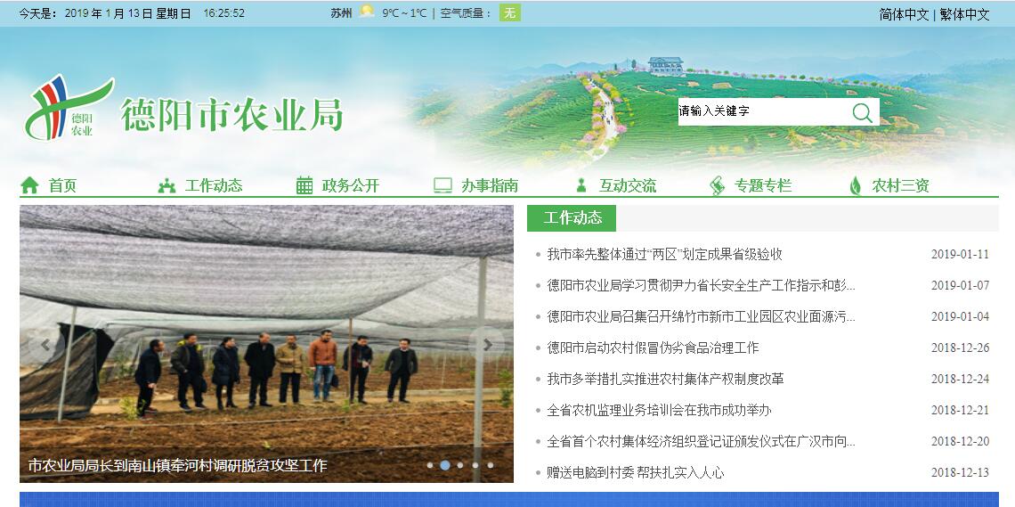 德阳市农业局主要职责:(一)贯彻执行党、国家和省委、省政府有关种植业、畜牧业、渔业、农业机械化、农垦等农业领域(以下简称农业)工作的法律、法规与方针、政策以及市委、市政府关于农业方面的决策部署,拟订全市农业和农村经济发展战略、中长期发展规划、政策并组织实施,贯彻涉农财税、价格、金融保险等政策,提出农业产业保护的政策建议,推进本部门依法行政。(二)承担完善农村经营管理体制的责任,提出深化农村经济体制改革和稳定完善农村基本经营制度的政策建议,指导农村土地承包、耕地使用权流转和承包纠纷仲裁管理;指导、监督减轻农民负担和村民筹资筹劳管理工作,指导农村集体资产和财务管理;指导、扶持农业社会化服务体系、农村合作经济组织、农民合作社和农产品行业协会的建设与发展。(三)指导粮油、畜禽、水产等主要农产品生产工作,组织落实促进粮油、畜禽、水产等主要农产品生产发展的相关政策措施,引导农业产业结构调整和产品品质的改善;会同有关部门指导农业标准化、规模化生产。负责提出农业固定资产投资规模和方向、市级财政性资金安排的建议意见,编报部门预算并组织执行,提出扶持农业农村发展的财政政策和项目建议,会同财政部门拟定实施方案并指导实施。拟定农业开发规划并监督实施。配合市级财政部门组织实施农业综合开发有关项目。参与组织实施种粮农民补贴、畜牧水产良种补贴等农业补贴和政策性农业保险工作。(四)拟订农业产业化经营的发展规划与政策并组织实施;指导农业产业化经营,促进农业产前、产中、产后一体化发展;组织拟订优势特色效益农业发展、现代农业产业基地建设等政策与规划并组织实施,提出促进大宗农畜产品流通政策建议,组织拟定大宗农畜产品市场体系建设与发展规划,培育、保护和发展农畜产品品牌;负责指导全市休闲农业发展;负责畜禽屠宰管理;组织实施“菜篮子”工程有关工作。(五)承担提升农畜产品质量安全水平的责任;组织开展全市农畜产品生产质量安全的监督管理,贯彻实施农畜产品质量地方标准并会同有关部门监督管理,负责农畜产品质量安全监测,依法开展市级农畜产品质量安全风险评估,指导农畜产品检验检测体系建设,依法组织实施符合安全标准的农畜产品生产基地认定、产品认证和监督管理。(六)组织、协调农业生产资料市场体系建设,依法履行农作物种子(种苗)、食用菌种、蚕种、草种、种畜禽、水产种苗、农药、兽药、渔药、饲料、饲料添加剂等农业生产资料的监督管理职责;监督管理兽医医疗器械、肥料;会同有关部门监督实施农业生产资料国家标准和地方标准,参与农资市场秩序的整顿、规范和农资打假工作;承担渔政、渔港、渔船、渔机、网具的监督管理职责。(七)负责制定全市农业机械化发展规划并组织实施;引进、示范、推广先进适用的农业机械化新技术、新机具并组织生产作业,指导全市农业机械化基础设施建设的规划、建设工作,指导农村机电提灌、机耕道建设,承担农业机械化使用安全监管职责。(八)负责农作物重大病虫害、动物疫病防治;会同有关部门制定动植物防疫检疫政策并指导实施;指导动植物防疫检疫体系建设,组织、监督市内动植物的防疫检疫工作,发现疫情负责组织扑灭;组织动植物检疫性有害生物普查;承担从境外引进动物疫病、农作物种子(种苗)集中种植地病虫害的跟踪监测工作,牵头管理外来农业物种;组织兽医医政和兽药药政药检工作。(九)承担农业防灾减灾责任,监测农业灾情,组织种子、种苗、化肥、农药、兽药、渔药等农业生产救灾物资的储备和调拨,提出生产救灾资金安排建议,指导紧急救灾和灾后生产恢复。(十)管理农业和农村经济信息,监测分析农业和农村经济运行,开展相关农业统计工作;发布农业和农村经济信息,负责农业信息体系建设,指导农业信息服务。(十一)制定全市农业科研、农业技术推广的规划和有关政策并组织实施,会同有关部门组织市级农业科技创新体系、农业产业技术体系建设;组织引进、试验、示范、推广农作物、畜禽、水产养殖等新品种和先进技术,组织实施农业领域的高新技术和应用技术研究、科技成果转化和技术推广,负责农业科技成果管理,指导农技畜牧推广体系改革与建设;负责农业新品种保护和农业转基因生物的安全监督管理。(十二)负责农业资源区划和资源保护工作,指导农用地、渔业水域、宜农滩涂、宜农湿地以及农业生物物种资源的保护和管理,负责水生野生动植物保护工作;依法管理耕地质量,拟订耕地及基本农田质量保护与改良政策并指导实施;运用工程设施、农艺、农机、生物等措施发展资源节约型、环境友好型农业。(十三)负责农村能源建设和资源环境工作,拟定并组织实施农业资源环境建设规划,指导农村可再生能源综合开发与利用,指导农业生物质产业发展和农业农村节能减排,承担指导农业面源污染防治工作;提出划定农畜产品禁止生产区域的政策建议,指导生态农业、循环农业等发展;会同有关部门保护渔业水域生态环境。(十四)会同有关部门拟订全市农业农村人才队伍建设规划并组织实施,指导农业职业教育和农业职业技能开发工作,参与实施农村实用人才培训工程;承担农民科技培训和农村劳动力转移就业培训工作,会同