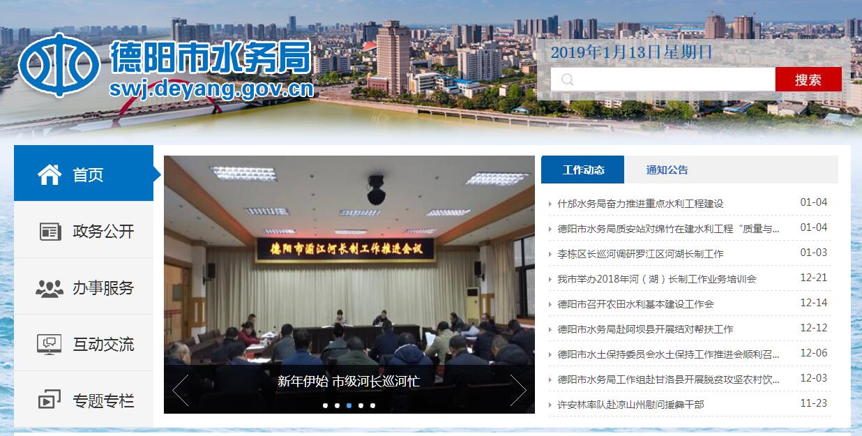 德阳市水务局主要职责:(一)负责本系统、本部门依法行政工作。贯彻执行国家和省有关水行政管理工作的方针、政策和法律、法规、规章,起草有关地方性实施细则和管理办法。负责保障水资源的合理开发利用,拟订水利战略规划和政策,组织编制全市重要江河的流域综合规划、防洪规划等重大水利规划,按规定制定水利工程建设有关制度并组织实施,负责提出水利固定资产投资建议,按照规定权限审批、核准相关固定资产投资项目,提出市级水利建设投资安排建议并组织实施。(二)实施水资源的统一监督管理。拟订全市和跨县(市、区)水中长期供求规划、水量分配方案并监督实施,组织开展水资源调查评价工作,按规定开展水资源调查工作,负责重要流域、区域以及重大调水工程的水资源调度,组织实施取水许可、水资源有偿使用制度和水资源论证、行防洪论证制度。(三)负责水利基本建设工程的监督管理;承办大中型水利建设项目的初审转报工作;组织建设和监督管理具有控制性或跨县(市、区)的重要水利工程。(四)负责水资源保护工作。组织编制水资源保护和水源地保护规划,组织拟订重要江河湖泊的水功能区划并监督实施,核定水域纳污能力,提出限制排污总量建议,监督指导饮用水水源保护工作,监督管理地下水开发利用和城市规划区地表水资源管理保护工作。(五)负责防治洪旱灾害。承担市政府防汛抗旱指挥部的日常工作。组织、协调、监督、指导全市防汛抗旱工作,对重要江河、水库和重要水工程实施防汛抗旱调度和应急水量调度,编制全市防汛抗旱应急预案并组织实施,指导水利突发公共事件应急管理工作。(六)负责节约用水工作。拟订全市节约用水政策,编制节约用水规划,指导和推动节水型社会建设工作。(七)负责水资源监测工作。负责水资源监测,协调全市水文站网建设和管理工作,对水库和地下水的水量、水质实施监测,发布水资源信息、水情预报、水域水质通报和全市水资源公报。(八)负责水利工程规划同意书、洪水影响评价及河道管理范围内工程建设方案审查。指导水利设施、水域及其岸线的管理与保护,指导全市重要江河、水库、滩凃的治理和开发。指导水利工程建设与运行管理,组织实施具控制性或跨县(市、区)及跨流域的重要水利工程建设与运行管理。负责河道采砂的统一监督管理工作,组织实施涉河建设项目的行洪论证及河势稳定评价工作。(九)负责防治水土流失。拟订水土保持规划并监督实施,组织指导全市水土流失综合防治、水土保持监测,水土流失定期公告,负责权限内建设项目水土保持方案的审批、监督实施及水土保持设施的验收工作。(十)负责农村水利工作。组织编制农村小型水利工程建设规划。指导农村饮水安全、节水灌溉等工程建设与管理工作,指导农村水利社会化服务体系建设。组织拟订农业用水计划,指导企市农业灌溉工作。按规定指导农村水能资源开放工作,负责职责范围内水电建设项目涉水事务的行政审批工作。(十一)组织协调农田水利基本建设,承担德阳市人民政府农田水利基本建设指挥部办公室的日常工作。组织编制农田水利基本建设规划和年度计划,指导全市农田水利基本建设工作。(十二)负责重大涉水违法事件的查处。协调、仲裁跨县(市、区)水事纠纷,指导水政监察和水行政执法。负责水利建设工程项目的招标投标活动的监督执法。依法负责水务行业安全生产工作,组织、指导水库大坝、水电站大坝等水利工程的安全监管,组织实施水利工程建设的监督,指导水利建设市场的监督管理。(十三)开展水利科技和对外合作交流工作,组织开展水利行业质量监督工作,拟订水利行业的地方技术标准并监督实施。(十四)负责绵远河、石亭江德阳城区段涉河建设工程的审核与监督管理,负责市区水闸运行管理和维护。(十五)承担市政府公布的行政审批和公共服务事项。(十六)承办市政府交办的其他事项。