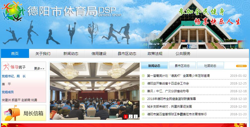 德阳市体育局是德阳市人民政府组成部门之一。现有职工100余人,下设办公室、政工科、竞训科、社体科、老体协、体总综合科;下属事业单位场馆管理中心、市奥校;代管机构德阳体育彩票管理站。一、体育设施建设初具规模。已建成占地230多亩的德阳体育公园,该公园由市体育场、体育馆、游泳场、训练房、网球场和业余体校六部分组成,固定资产3亿5千多万元。至今已承办过国际、国内大型体育赛事20余次。由国际奥委会、中国奥委会、北京奥组委联合捐资800万美元修建的德阳市奥林匹克后备人才学校于2013年1月正式竣工,占地161.2亩。现开设有田径、游泳、举重、摔跤、柔道、拳击、皮划艇、赛艇、足球、排球(沙排)、篮球等12个运动项目,在册运动员400余人。近年来国际奥委会主席巴赫、名誉主席罗格先后造访奥校,受到了国际国内高度关注,德阳市青少年业余体育训练条件得到了极大的改善了,同时为市民提供了良好的健身场所,让广大市民在运动中感受到快乐、幸福,聚集正能量。作为德阳体育面向国际的一个重要载体,奥校具有一定的国际影响力和特殊性。二、群众体育蓬勃发展。贯彻落实全民健身国家战略,颁布实施《德阳市全民健身实施计划(2016-2020年)》,全市人均体育场地面积达到1.28平方米,全市经常参加体育锻炼人数为182.4万人,经常参加体育锻炼的人数比例达到45.6%。目前,全市共有农民体育健身工程847个,农村体育中心户107户,农村全民健身工程覆盖率占全市行政村的68%。德阳市区共有全民健身苑77片,全民健身路径470条,基本满足市民健身需求。通过政府搭台、社会组织、群众参与,使全民健身活动广泛深入,丰富多彩,每年组织开展群众体育活动300场次以上。创造性开展迎新年马拉松、元宵登山、德阳体育日、全民健身日、城市定向比赛等品牌体育活动。倾力打造的“贺岁杯”足球赛、五人制足球挑战赛、草根球王乒乓球争霸赛、三人制篮球赛等品牌赛事,成为了市民常年参与和欢庆佳节的标志性活动。三、竞技体育成绩显著。为国家输送了李雪梅、张翔、邓小玲、陈朝霞、吴逢波、黄常洲等优秀运动员。2011年参加全国第七届城市运动会获得3银4铜,2014年参加第十二届省运会获得33金24银33铜,金牌数综合排名名列全省第八、重点项目金牌数名列全省第四。2015年参加全国首届青运会获得2金、4铜和10个挺进全国八强的好成绩,创造了我市建市以来参加全国综合运动会最好成绩。奥校培养输送的女子拳击运动员任灿灿、跳远运动员黄常洲参加2016年巴西里约奥运会,分别取得了女子拳击铜牌和跳远11名的优异成绩,受到省政府表彰奖励,创德阳历史之最。2016年参加四川省青少年锦标赛取得了33金、36银、39.5铜、4至8名140个的优异成绩。四、体育产业方兴未艾。坚持体教、体文、体卫、体旅、体残等五结合,尤其是体旅的深度融合。努力打造“一县一特”特色小镇建设,主要是罗江户外运动、绵竹滑翔伞、广汉钓鱼、什邡山地自行车、中江龙台武术、旌阳休闲骑游等体育特色小镇建设。努力打造“一县一品”体育品牌活动,主要是旌阳区龙狮、广汉市三星太极、什邡市健身球操、绵竹市广场体育舞蹈、中江县巴蜀太极、罗江县柔力球等品牌体育活动。通过“一县一特”和“一县一品”,使“体育+”成为新的生活方式,促进了全民健身活动的蓬勃开展。加大体育彩票销售、服务、管理工作,2016年实现体彩销售1.87亿,创历史新高。