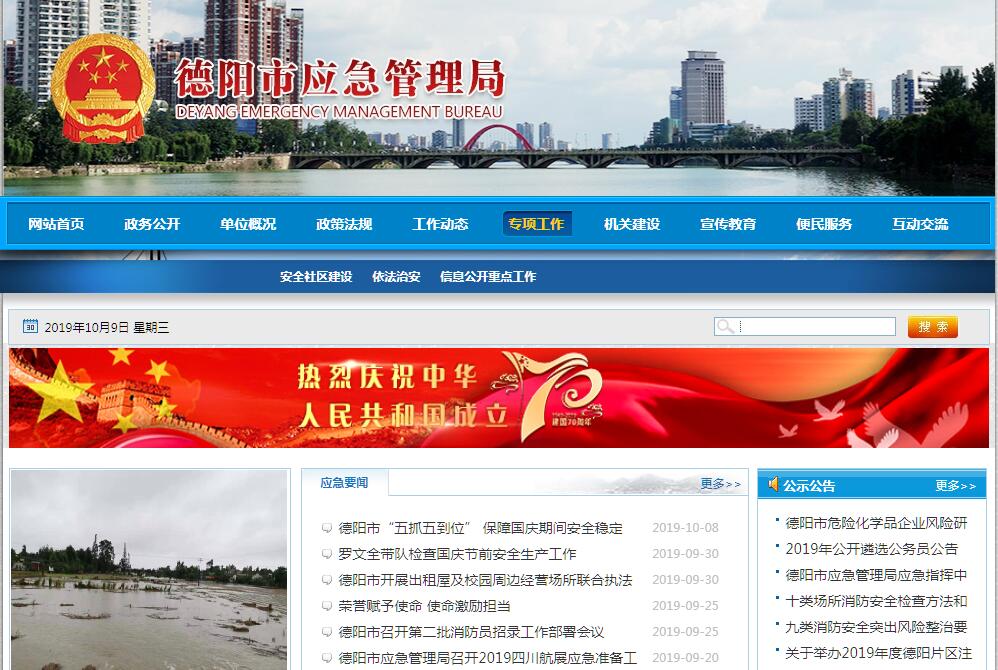 德阳市应急局贯彻落实党中央关于应急工作的方针政策和省委、市委的决策部署,在履行职责过程中坚持和加强党对应急工作的集中统一领导。其主要职责是:(一)负责应急管理工作,组织和指导各县(市、区)、各部门(单位)应对安全生产类、自然灾害类等突发事件和综合防灾减灾救灾工作。负责安全生产综合监督管理和工矿商贸行业安全生产监督管理工作。(二)拟订应急管理、安全生产等政策措施,组织编制德阳市应急体系建设、安全生产和综合防灾减灾规划。(三)负责组织、指导应急预案体系建设,建立完善事故灾难和自然灾害分级应对制度,牵头组织编制市综合应急防灾减灾预案和安全生产类、自然灾害类专项预案,负责应急预案衔接工作,组织开展预案演练并落实,推动应急避难设施建设。(四)牵头建立统一的应急管理信息系统,负责信息传输渠道的规划和布局,建立监测预警和灾情报告制度,健全自然灾害信息资源获取和共享机制,依法统一发布灾情。(五)组织、指导、协调安全生产类、自然灾害类等突发事件应急救援,承担全市应对较大及以上灾害指挥部工作,综合研判突发事件发展态势并提出应对建议,协助上级处置特别重大、重大灾害应急处置工作。(六)统一协调指挥各类应急专业队伍,建立应急协调联动机制,推进指挥平台对接,提请衔接驻地解放军和武警部队参与应急救援工作。(七)按照国家相关政策和规定负责消防、森林火灾扑救、抗洪抢险、地震和地质灾害救援、生产安全事故救援等专业应急救援力量建设,依法依规统筹指导各县(市、区)及社会应急救援力量建设和应急保障能力建设。(八)按照国家相关政策和省委省政府、市委市政府相关规定负责消防工作,组织和指导地方消防监督、火灾预防、火灾扑救等工作。(九)负责自然灾害综合监测预警工作,承担自然灾害综合风险评估工作,指导协调森林火灾、水旱灾害、地震和地质灾害等防治工作。(十)负责组织协调灾害救助工作,组织和指导灾情核查、损失评估、救灾捐赠工作,按照规定管理、分配中央、省、市救灾款物并监督使用。(十一)依法承担全市安全生产综合监督管理责任,指导协调、监督检查市级有关部门(单位)和各县(市、区)安全生产工作,组织开展安全生产巡查、考核工作。(十二)按照分级、属地原则,依法监督检查工矿商贸生产经营单位贯彻执行安全生产法律法规情况及其安全生产条件和有关设备(特种设备除外)、材料、劳动防护用品的安全生产管理工作。负责危险化学品安全监督管理综合工作和烟花爆竹安全生产监督管理工作。(十三)承担非煤矿山、危险化学品、非药品类易制毒化学品和烟花爆竹等生产经营单位安全生产准入管理责任。(十四)依法组织、指导生产安全事故调查处理,监督事故查处和责任追究落实情况。组织开展自然灾害类突发事件的调查评估工作。(十五)开展应急管理和安全生产方面的交流与合作,组织参与安全生产类、自然灾害类等突发事件的跨区域救援工作。(十六)制定应急物资储备和应急救援装备规划并组织实施,会同市发改委等部门建立健全应急物资信息平台和调拨制度,在救灾时统一调度。(十七)负责应急管理、安全生产宣传教育和培训工作,组织指导应急管理、安全生产的科学技术研究、推广应用和信息化建设工作。(十八)负责安全生产检测、检验、评估、评价、培训、咨询等中介组织的监督检查。(十九)承担市安办日常工作,负责组织全市安全生产的重大活动。(二十)负责职责范围内的职业健康、生态环境保护、社会信用体系建设和审批服务便民化等工作。(二十一)完成市委和市政府交办的其他任务。