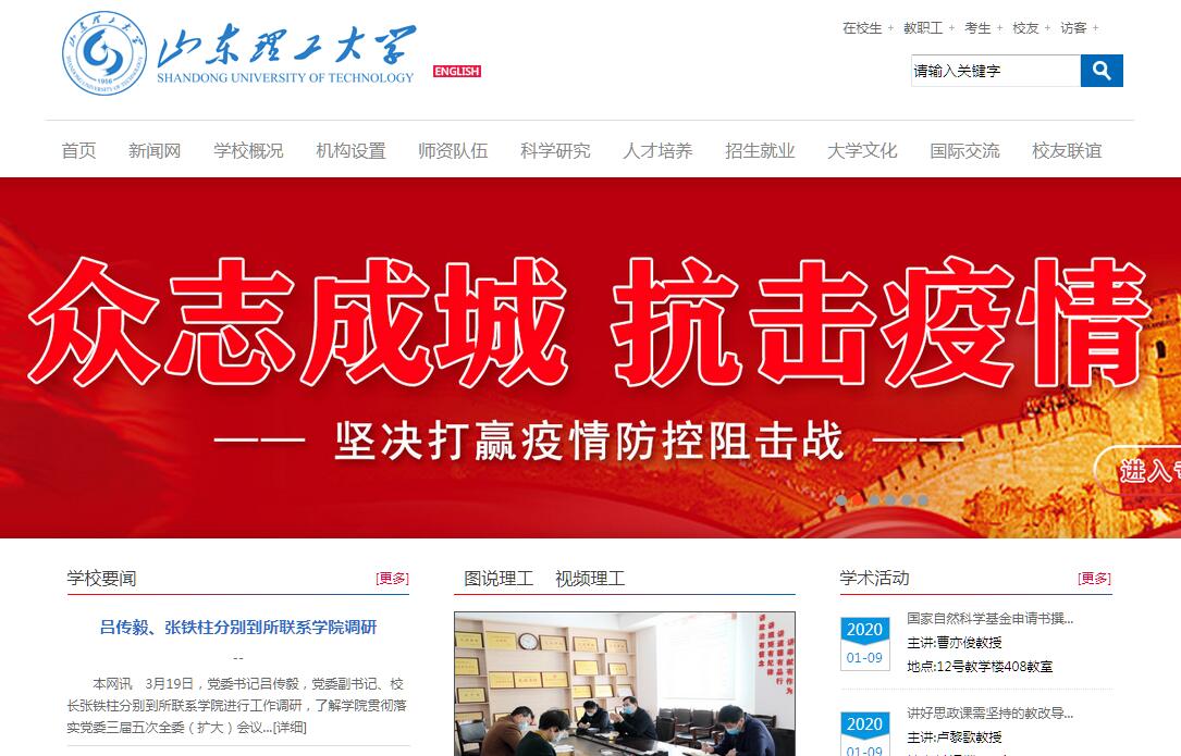 山东理工大学创建于1956年,坐落在历史悠久的齐文化发祥地——山东省淄博市,是山东省重点建设的理工科大学。学校现为国家人才培养模式创新实验区、首批国家级“卓越工程师教育培养计划”试点单位、全国大学外语教学改革试点单位、全国大学生KAB创业教育基地、全国教育信息化试点单位、山东省“应用型人才培养特色名校”立项建设单位、山东省首批高校科研体制改革试点单位。学校现有25个学院,13个校级研究院,设有机械工程博士后科研流动站,拥有4个博士学位授权一级学科,26个硕士学位授权一级学科,4个硕士学位授权二级学科(不含一级学科覆盖点)。其中,农业工程学科首批入选山东省重点建设的一流学科。专业学位包含了15个工程硕士招生领域,4个农业硕士招生领域,拥有金融硕士(MF)、国际商务硕士(MIB)、翻译硕士(MTI)、工商管理硕士(MBA)、艺术硕士(MFA)专业学位授予权,有70个本科招生专业,学科专业涵盖了工学、理学、经济学、管理学、文学、法学、艺术学、历史学、教育学等9个学科门类,已逐步形成以工为主、多学科协调发展的学科专业布局。目前,有全日制本科在校生近33300人,在学研究生近2900人。学校办学实力雄厚、办学设施齐全,坚持“高起点、高质量、高品位”的原则,按照“生态化、园林化、数字化、人文化”的建设目标,加大投入,不断改善办学条件。学校校园占地3600亩,校内环境幽雅,花木繁茂,碧草如茵,景色宜人,处处呈现出人与自然的和谐之美;校舍建筑面积105.47万平方米,网络多媒体教室298个,运动场面积16.4万平方米,体育教学设施齐全。图书馆藏书322万册,电子图书352万种,中外文期刊24000余种(含电子期刊)。教学科研仪器设备总值4.75亿元。中央与地方共建实验室21个,国家级工程实践教育中心4个、国家级实验教学示范中心1个、国家级虚拟仿真实验教学中心1个、省实验教学示范中心3个、省骨干学科教学实验中心20个,设有全国重点职教师资培训基地。先进的校园网络覆盖全校,并设有教育技术中心、分析测试中心等公共服务平台。学校大力实施“人才优先战略”,把师资队伍建设作为“首要工程”,按照“汇聚人才、培育团队、成就大师”的建设方针,坚持引进与培养并举,着力打造结构合理、爱岗敬业的高水平人才队伍。学校现有2016名教师,其中教授229人、副教授671人,具有博士学位的786人。双聘院士5人、“千人计划”专家4人、“万人计划”领军人才2人、国家有突出贡献中青年专家2人、新世纪百千万人才工程国家级人选4人、享受国务院特殊津贴人选16人;山东省“一事一议”顶尖人才领军人才1人;中科院“百人计划”1人、教育部新世纪优秀人才支持计划2人;泰山系列人才12人、山东省有突出贡献中青年专家20人;山东理工大学特聘教授31人;省级教学名师12人。学校始终坚持教学工作中心地位,深化教育教学改革,创新人才培养模式,着力培养有社会责任、有创新精神、有专门知识、有实践能力、有健康身心的应用型高级专门人才。加强专业、课程和教学团队建设,“十一五”以来,学校获得省级教学成果奖50项,获国家级教学成果二等奖3项;入选国家级教学团队2个,省级教学团队7个;国家级特色专业5个,省级特色专业14个,省级高水平应用型立项建设专业群8个;国家级精品课程5门,国家级精品资源共享课3门,国家级双语示范课程1门,省级精品课程56门;山东省优秀教材15部,国家级规划教材32部。深化创新创业教育改革,实施大学生研究与创新训练计划、大学生创业培育计划、拔尖创新创业人才教育计划,学生创新精神、创业意识、创新创业实践能力得到有效提升,大红炉众创空间获批科技部“国家备案众创空间”和省级大学生创业孵化示范基地,“十二五”以来,在“互联网+”“挑战杯”“创青春”、全国大学生数学建模、ACM国际大学生程序设计等重大赛事中获省部级以上奖励7000余项,其中,国家级及国际奖励2300余项。毕业生就业率和就业质量始终保持较高水平,荣获山东省普通高校毕业生就业工作先进集体。深化研究生教育培养模式改革,学校为研究生推免资格高校,拥有省级研究生联合培养基地18个,被评为首届山东省研究生教育管理与学科建设先进单位。学校坚持“出人才、出成果、出效益”的科研工作方针,整合科研力量,组建学术团队,选定主攻方向,积极为区域经济社会发展服务。学校设有1个国家工程技术研究中心和1个国家地方联合工程研究中心,山东工程技术研究院设在我校,有15个省级工程技术研究中心、1个省检测研发公共服务基地、3个省级协同创新中心、7个省级重点实验室、5个省级人文社科研究基地。学校注重“产学研”结合,积极参与山东制造业强省建设,与地方政府、企事业单位联合设立了110余个科技研发和技术转移转化机构,成为山东省重要的科学研究和技术创新基地。“十一五”以来,学校先后承担省部级以上课题1700余项,其中国家“863”计划、国家“973”计划、国家科技支撑计划、国家自然科学基金、国家社会科学基金等各类国家级项目400余项;荣获省部级以上科研奖励200余项,其中2006年、2007年各获得国家技术发明二等奖1项,2008年、2009年、2011年、2012年、2013年、2015年各获得国家科技进步二等奖1项。学校坚持开放办学,加强国际交流与合作,已与美、英、韩、俄、澳、新等国