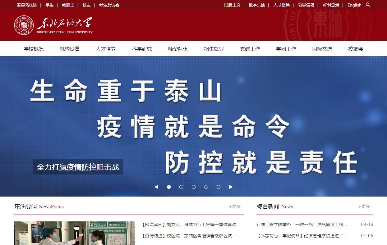 东北石油大学(原名东北石油学院、大庆石油学院)位于黑龙江省大庆市,创建于1960年,是一所以工学为主,工、理、管、文、经、法、教育、艺术多学科协调发展的高校。1978年被确定为88所全国重点大学之一。2000年2月划转为中央与地方共建、以黑龙江省管理为主的普通高等院校,是黑龙江省与中国石油天然气集团公司、中国石油化工集团公司、中国海洋石油总公司共建高校,黑龙江省重点建设的高水平大学。学校从1961年开始招收本科生,1981年获硕士学位授予权,1993年获博士学位授予权。学校有64个本科专业,23个高职专业。8个国家级特色专业建设点,1个国家级综合改革试点专业,6个国家级“卓越工程师教育培训计划”试点专业,19个省级重点专业。1个国家重点一级学科,3个国家重点二级学科,1个省级重点学科群,6个省级重点一级学科;4个博士后科研流动站,1个博士后科研工作站;4个博士学位授权一级学科,21个博士学位点,21个硕士学位授权一级学科,96个硕士学位点;具有工商管理(MBA)、社会工作、会计、工程4个类别硕士专业学位授予权,其中工程类别拥有14个硕士专业学位授权点。工程学2016年进入世界ESI前1%。学校占地169.14万平方米,其中位于河北省秦皇岛市的分校校区占地33.30万平方米。教学科研仪器设备总值超过5亿元。建有万兆级校园网,图书馆藏图书255.05万册,有数据资源16种。建有国家级大学科技园。有科研平台37个,其中,省部共建国家重点实验室培育基地1个、国家工程实验室(研究室)1个、省部共建教育部重点实验室1个、省重点实验室7个、省哲学社会科学重点研究基地1个、省工程技术研究中心1个。有国家级实验教学示范中心1个,国家级虚拟仿真实验教学中心1个,省级实验教学示范中心6个,省级虚拟仿真实验教学中心1个。有校内外实习基地158个,其中,国家级工程实践教育中心3个,国家级大学生校外实践教育基地2个、省级1个。学校有教职工2101人,其中专任教师1239人。专任教师中,正高级专业技术职务253人、副高级专业技术职务433人,博士学位450人、硕士学位627人;博士生导师137人;双聘院士7人,其中,中国科学院院士1人,中国工程院院士6人;国务院学位委员会学科评议组成员1人;教育部高等学校教学指导委员会委员6人;享受国务院政府特殊津贴专家24人;国家“万人计划”青年拔尖人才1人;国家“万人计划”科技创新领军人才、科技部中青年科技创新领军人才、教育部长江学者奖励计划青年学者、国家自然科学基金优秀青年基金资助获得者1人;国家百千万人才工程人选2人;教育部新世纪优秀人才支持计划入选者5人;省杰出青年科学基金获得者13人;龙江学者特聘教授14人、青年学者1人、讲座教授5人;“龙江科技英才”科技创新人才1人;省领军人才梯队带头人14人、后备带头人26人。全国优秀教师3人,省级教学名师11人、模范教师4人、优秀教师7人、教学新秀1人、青年教学能手2人。国家级教学团队1个、省级教学团队4个。省高校科技创新团队7个、哲学社会科学创新团队培育计划1个。省领军人才梯队14个、优秀研究生导师团队3个。学校还在石油石化等企事业单位聘请了一批兼职教授、导师。校面向31个省(市、自治区)招生。现有全日制在校生23025人,其中本科生15276人、专科生5384人、硕士研究生2067人、博士研究生298人。学校是本科教学工作水平评估优秀高校,获国家级教学成果奖2项,学生全国外语四级统考和黑龙江省高校非计算机专业计算机等级考试成绩始终名列省内高校前列。全国大学英语教学研讨会、俄语教学研讨会曾先后在我校召开。“十二五”以来,建成国家级精品视频公开课2门、国家级精品资源共享课2门。获省级及以上教学成果奖、全国普通高校优秀教材奖、全国多媒体教育软件大奖赛等多种奖项。学校完成的科研成果获国家科技奖励14项,其中,国家科技进步特等奖1项、一等奖1项,二等奖7项;国家技术发明二等奖1项;国家自然科学二等奖1项。 “十二五”以来,获批国家973计划课题4项,863计划课题4项,国家科技支撑项目4项,国家重大专项任务47项,国家自然科学基金项目128项(其中,主持重点项目2项,参与重大项目1项)、社会科学基金项目8项,教育部科技项目6项、社科项目10项;科研总经费14亿元。获省部级科技成果奖励89项,其中自然科学一等奖1项,技术发明一等奖1项,科技进步一等奖2项;获省社会科学优秀科研成果奖24项,其中一等奖1项;获专利授权2233件;出版科研著作及教材299部,发表论文7350篇,被三大检索系统收录2234篇。学校坚持开放办学,重视与国内外高校的交流与合作,接收外国留学生来校学习。与德国克劳斯塔尔工业大学、美国密苏里科技大学、美国中央俄克拉荷马大学、美国新墨西哥矿业技术大学、俄罗斯秋明工业大学、俄罗斯人民友谊大学等30多所国外高校在师资培养、学生交流、学术交流、教学改革、科研协作等方面开展了富有成效的合作。学校出版有《东北石油大学学报》(中国科技核心期刊和全国中文核心期刊)、《东北石油大学报》和《高等教育研究》等报刊,与全国300多所高校进行交流。办学五十多年来,学校秉承“艰苦创业,严谨治学”的校训和“严谨、朴实、勤奋、创新”的校风,形成了“坚持用大庆精神办学育人”和“全方位多层次产学研合作办学”两个鲜明特色。时任国务院总理李鹏为学校
