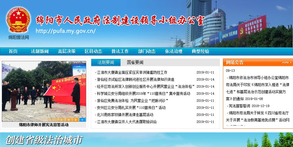 绵阳普法网由绵阳市人民政府法制建设领导小组办公室,绵阳司法局 主办。