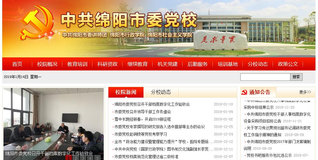 绵阳市委党校的前身是1950年1月成立的绵阳地委“政治干部训练班”,1956年9月3日绵阳地委批准成立地委党校,1985年2月绵阳撤地建市改为市委党校。1994年7月市委讲师团、省干部函授学院绵阳分院并入市委党校,1994年12月28日绵阳市行政学院成立,2001年2月2日绵阳市社会主义学院挂牌,形成“一套机构、四块牌子”的校(团、院)管理体制。市委党校是在市委直接领导下培养副县、正科两级领导干部和理论干部的学校,是党委的重要部门,是培训轮训党员领导干部的主渠道,是党的哲学社会科学研究机构。市委讲师团是在市委直接领导下具体开展理论学习、宣传和研究,实施在职干部政治理论教育的组织、管理和教学的工作部门。市行政学院是培训公务员、培养公共管理人员和政策研究人员、开展社会科学研究和决策咨询的机构,是市政府直属单位。市社会主义学院是在市委领导下的统一战线性质的政治学院,是民主党派和无党派人士的联合党校,是开展党的统一战线工作的重要部门。党校实行校务委员会领导下的校长负责制。党校、行政学院、社会主义学院的校(院)长由市委领导兼任,常务副校(院)长为法人代表,主持“一校两院”全面工作。市委讲师团与市委党校合署办公,团长由党校常务副校长担任。六十多年来,党校以及随后建立的“一团两院”,充分发挥“三个阵地、一个熔炉”的重要作用,为全市培养了数十万计的领导骨干和党的理论人才,对党的思想理论建设、组织建设、作风建设和制度建设,对党在各个历史时期的中心工作做出了贡献。近几年来,党校认真贯彻《中国共产党党校工作条例》和《中共中央关于加强和改进新形势下党校工作的意见》,坚持党校姓党根本原则,把党的理论教育和党性教育作为党校教学首要任务。在市委的领导下,改革创新,求实奋进,干部教育培训、科研资政等工作成效显著,充分发挥了主渠道、主阵地和熔炉的作用。光阴荏苒,日月如梭。党校伴随共和国成长,“一团两院”伴随改革开放大潮,走过了不平凡的光辉历程,留下了丰富的物质财富和精神财富。2015年5月,位于绵阳市科创园区的新党校投入使用,开启了校(团、院)全面发展的新篇章。