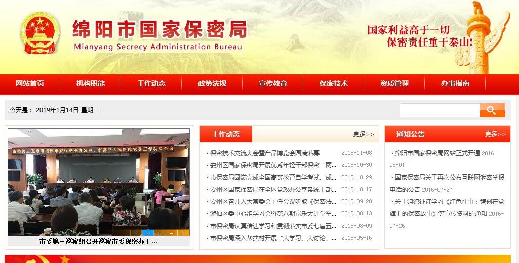 绵阳市国家保密局为正局级单位。设局长1名,副局长1名。内设秘书科、技术科 (技术科增挂绵阳市国家保密局保密技术检查中心牌子)。其主要职责:(一)贯彻执行党和国家有关保密工作的方针、政策、法律、法规和市委、市政府关于保密工作的指示和决定。(二)制订全市保密工作计划并组织实施;研究、分析保密工作形势及存在的问题,提出改进和加强保密工作的意见和建议。(三)建立健全各项保密制度,依法履行保密行政管理职能。(四)监督、检查《保密法》及相关法规制度的实施;指导全市党政机关和涉密单位保密工作。(五)组织指导开展保密宣传教育、保密业务培训、政策调研。(六)组织实施对各目标管理单位年度保密工作目标考核,根据考核情况提出奖惩意见或建议。(七)协同有关部门做好全市重大经济、科技项目和重点工程、重要活动中的保密工作。(八)组织、指导、协调全市保密技术防范和保密技术检查;负责审批所在地市、县直机关及其所属单位的涉密网络,对涉密网络的安全保密管理进行监督检查。(九)组织、指导、督促泄密事件的查处,直接参与查处重大泄密事件,协调有关部门采取补救措施。(十)指导、监督、检查全市国家秘密的确定、变更及解除工作,并实行动态管理。(十一)主管全市对外提供资料的保密工作;负责秘密级国家秘密载体出境审批。(十二)受理国家秘密载体印制乙级资质申请,并抓好日常监管。(十三)承办市委、市政府和市委保密委员会交办的其他工作。