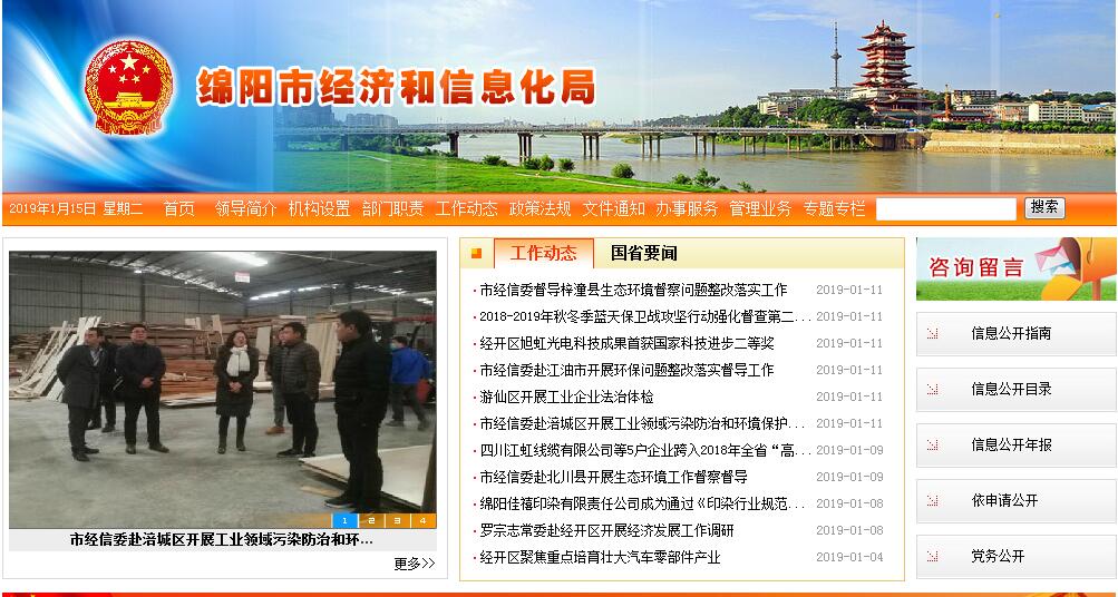 绵阳市经济和信息化委员会主要职责:(一)贯彻实施国家、省有关工业经济、信息化、军民融合和无线电管理的方针、政策和法律、法规,拟订全市有关工业经济、信息化、军民融合和无线电管理的规范性文件,负责本系统、本部门依法行政工作,落实行政执法责任制。(二)拟订新型工业化、信息化和军民融合发展战略和重大政策,参与拟订国民经济和社会发展规划,制定并组织实施工业(不含能源,下同)、军民融合、通信业和信息化相关行业的发展规划、年度计划;组织实施工业强市战略。(三)统筹推进工业和信息化工作,组织推动工业化和信息化深度融合、军民融合式发展、工业化与城镇化联动。(四)负责贯彻落实国家、省促进国防科技工业发展的方针政策和法律法规;承担军民融合产业发展推进工作,协调国家、省交办的重点军品科研、生产任务。(五)负责全市产业园区建设发展的指导和服务工作,承办工业信息化系统科技城建设相关工作,拟订并组织实施产业园区、产业集群发展规划和政策措施,指导产业园区合理布局,推进产业园区建设发展。(六)负责监测、分析工业经济运行情况,建立工业经济运行预警机制,拟订经济运行目标、政策并组织实施,协调解决经济运行中的重大问题。负责电力、煤炭、成品油、天然气等重要物资综合调控、紧急调度和交通运输协调工作,承办年度工业经济、民营经济等目标责任考核。负责工业和信息化领域的应急管理和国防动员有关工作。(七)负责工业企业技术改造推进工作,组织制定并实施企业技术改造投资规划和政策,组织工业企业技术改造项目申报国家、省有关专项计划并监督实施。(八)负责企业技术创新体系建设,制定鼓励企业技术创新的政策措施,指导企业技术创新、技术引进和研制,编制下达全市企业技术创新项目计划并组织实施。会同有关部门组织企业技术中心的申报、认定和建设管理工作。负责重大装备国产化和重大技术装备研制,组织申报重大技术装备新研制项目并监督实施。(九)负责电力行业管理和监督,负责工业信息化领域的节能降耗、清洁生产和资源节约与综合利用工作。负责淘汰落后产能和化解过剩产能。协调推进工业化与生态环境协调发展中的重大问题,组织实施相关重大示范项目和新产品、新技术、新工艺、新设备、新材料的推广应用。(十)负责推进工业企业信用制度建设,指导工业企业多渠道融资,参与工业企业上市培育工作,负责拟订全市工业企业发展资金等财政专项资金使用计划。(十一)负责企业治乱减负工作,指导企业建立现代企业制度,负责全市工业信息化领域人才工作,指导企业经营管理人员、专业技术人员培训,负责全市大企业大集团培育工作,负责推进中小企业、民营经济发展,负责中小微企业服务体系建设的推进工作。(十二)负责对全市工业实施行业管理,制定并组织实施行业相关政策措施。拟订战略性新兴产业发展规划、政策措施并组织实施。指导工业企业加强质量标准化管理、市场开拓和产品促销工作。会同有关部门指导工业、通信、信息化和无线电领域的社会中介组织发展。(十三)负责全市电子政务建设的统筹规划、协调、管理工作;负责政府网站建设指导、管理、协调、监督工作,推动跨部门、跨行业、跨领域的互联互通。负责政府系统计算机网络与信息安全应急管理、安全检查,负责全市电子政务绩效考核工作。(十四)统筹规划和协调推进全市公用通信网、互联网、专用通信网的建设,负责全市信息基础设施建设的规划、协调和管理工作,承担全市软件及服务业发展工作,协调通信与信息服务市场工作。(十五)负责指导全市工业信息化系统加强安全生产管理,负责民爆器材的行业及其生产、流通安全的监督管理,制定民爆行业发展规划并组织实施。(十六)负责无线电电磁环境保护工作,负责无线电监测、检测和干扰查处,配置和管理全市无线电频谱资源,依法监督管理无线电台(站),协调军地间和市际间无线电管理相关事宜,维护空中电波秩序,依法组织实施无线电管制。(十七)会同有关部门提出工业和信息化领域对外开放和利用外资的政策建议,参与区域经济合作和承接产业转移工作。指导工业和信息化企业开展对外交流与合作、国际化经营、境外投资及兼并重组。(十八)承担市政府公布的有关行政审批事项。(十九)承办市政府交办的其他事项。