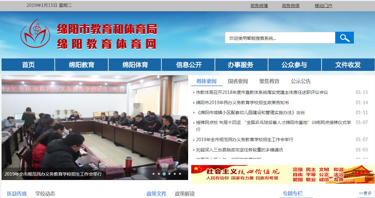 根据绵委发〔2014〕15号,将绵阳市教育体育局更名为绵阳市教育和体育局,为绵阳市政府工作部门。其主要职责:一、贯彻执行党和国家教育体育工作的方针、政策、法律、法规和规章。二、拟订全市教育体育体制改革配套政策和教育体育事业发展规划,负责各级各类教育体育的统筹规划和协调管理,指导各级各类学校的教育教学改革和中小学布局结构的调整;组织编写审定地方教材;负责推动多元化体育服务体系建设,推进体育公共服务和体育体制改革;负责全市教育体育系统基本信息的统计,分析、发布工作,指导教育体育信息化建设工作。三、负责义务教育的指导与协调,推进全市义务教育均衡发展和促进教育公平;指导普通高中教育、幼儿教育和特殊教育工作;推进基础教育教学改革,全面实施素质教育。四、统筹和指导全市教育督导工作,负责组织和指导对中等及中等以下教育、扫除青壮年文盲工作的督导检査和评估验收工作,指导基础教育发展水平和质量的监测工作。五、指导以就业为导向的职业教育的发展与改革,指导中等职业教育教材建设和职业指导工作,组织实施民族地区免费中等职业教育工作。六、负责本部门教育体育经费的统筹管理,参与拟订筹措教育体育经费、拨款、基建投资的政策和措施,监督全市教育体育经费的筹措和使用情况,指导国(境)外教育体育援助、贷款和合作项目的执行。七、指导少数民族教育工作,协调对少数民族地区的教育援助。八、统筹规划、综合管理全市民办教育,规范民办教育办学秩序,促进民办教育事业健康发展。九、主管全市教师工作。会同有关部门做好全市教师、教练招聘和中小学校长的聘用工作,负责实施教师继续教育和专业技术职务资格评审的有关工作,指导教师资格制度的实施和教育体育系统人才队伍建设。十、指导各级各类学校的思想政治、德育、体育卫生与艺术教育、国防教育、安全和稳定工作,指导直属学校的党建工作,会同有关部门加强直属学校领导班子建设。十一、参与拟订普通高校毕业生就业政策,指导普通高等师范类毕业生开展大学生就业创业工作。十二、规划、指导全市教育体育系统自然科学和哲学、社会科学研究工作;协调、指导市属高等学校参与国家和地方创新体系建设以及承担国家、省、市重大科研项目和各类科技计划的实施工作;指导市属高等学校、中等职业学校科技创新平台的发展建设和产学研结合等工作。十三、贯彻执行国家语言文字工作方针政策,拟订语言文字工作中长期规划和工作计划,指导普通话推广和普通话师资培训工作,承担市语言文字工作委员会的具体工作。十四、指导教育体育系统的国际交流与合作。开展与港澳台的教育体育交流与合作,指导汉语国际推广工作;负责全市出国留学人员和教育体育系统来绵外籍教师、教练、专家及留学人员的有关管理工作。十五、统筹规划全市群众体育发展。负责推行全民健身计划,监督实施国家体育锻炼标准,推动全市国民体质监测和社会体育指导工作队伍制度建设;指导公共体育设施的建设,负责对公共体育设施的管理。十六、统筹规划全市竟技体育发展。指导体育训练、体育竟赛和运动员队伍建设;组织和统筹参加省级以上综合运动会,承办市级综合性体育竟赛活动;负责组织协调市级综合性运动会的竟赛工作,协调运动员社会保障工作。十七、统筹规划全市学校体育发展。指导和管理学校体育工作;制定全市学校体育教育、青少年业余训练的规划和工作意见,并负责组织实施、督促和检查;指导和管理全市中小学体育测试和体育特长生的审定工作。十八、统筹规划全市青少年体育发展,指导和推进青少年体育工作。十九、拟订全市体育产业发展政策,规范体育服务管理, 推动体育标准化建设,负责监督管理全市体育彩票销售工作。二十、指导体育科研、技术攻关和成果推广工作,负责组织、监督全市体育运动中的反兴奋剂工作。二十一、承担经市政府批准保留的行政审批事项。二十二、承办市政府交办的其他事项。