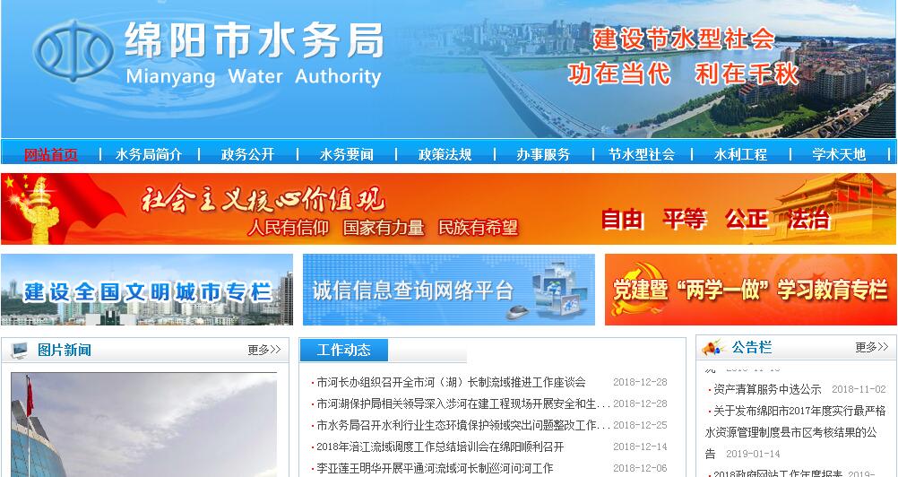 绵阳市水务局主要职责:(一)负责贯彻执行国家、省有关水行政管理工作的方针、政策和法律、法规;负责拟订全市水务规范性文件并监督实施;负责保障水资源的合理开发利用,拟订水利战略规划,组织编制全市重要江河的流域综合规划、防洪规划等重大水利规划,按规定制定水利工程建设有关制度并组织实施,负责提出水利固定资产投资建议,按照规定权限审批、核准相关固定资产投资项目,提出市级水利建设投资安排建议并组织实施。(二)负责生活、生产经营和生态环境用水的统筹兼顾;负责编制全市城乡水务规划;组织编制全市水资源综合规划、水资源保护规划、节水型社会建设规划、水环境治理规划、水中长期供求规划、水量分配方案和调度计划,并负责组织实施和监督。(三)负责组织全市有关国民经济发展总体规划、城市规划及重大建设项目的水资源及防洪、防涝、供水、排水、节水、污水处理、再生水利用等方面的论证工作。负责跨行政区域的水务事项。(四)负责全市水资源、节约用水的统一管理工作。组织实施取水许可制度和水资源有偿使用制度;组织水功能区的划分和水域排污的控制,监测江河、水库的水量、水质;审定水域纳污能力,提出限制排污总量的建议,审查河道排污口的设置方案;指导饮用水水源保护工作,指导地下水开发利用和城市规划区地下水资源管理保护工作。(五)负责组织指导全市水行政监察工作,负责全市的水行政执法及水事违法案件的查处;调解重大水事纠纷,负责水务行业行政复议的受理和行政诉讼的应诉工作。(六)负责拟订水务行业经济调节措施,研究提出水务行业有关价格、税收、信贷、财务等经济调节意见;负责编制全市水务行业建设项目资金计划,对水务资金的使用进行宏观管理、监督和审计。(七)组织指导全市水务建设,并实施行业监督管理;监督和实施水务行业工程建设项目业主负责制、招投标制、监理制和工程质量责任追究制;负责小型水利工程和乡村供水工程建设审批,初审、转报大中型水利基本建设项目可行性研究报告和初步设计;组织建设和管理具有控制性或跨县市区的重要水利工程,组织指导水库、水电站大坝的安全监督。(八)组织协调全市农田水利基本建设;组织指导全市农村水利管理工作。承担市政府农田水利基本建设指挥部日常工作。负责全市农村饮水安全、节水灌溉等工程建设与管理。(九)主管全市水土保持工作;拟订水土保持发展规划并监督实施,负责水土保持预防监督、水土流失监测、水土流失综合治理工作;指导重点水土保持建设项目的实施。(十)负责防治水旱灾害,承担市政府防汛抗旱指挥部的具体工作。组织、协调、监督、指导全市防汛抗旱工作,对重要江河和重要水工程实施防汛抗旱调度和应急水量调度,编制全市防汛抗旱应急预案并组织实施,指导水利突发公共事件应急管理工作。(十一)指导水利设施、水域及其岸线的管理和保护,指导全市重要江河、水库、滩涂的治理和开发,指导水利工程建设与运行管理,组织实施具有控制性或跨县市区及跨流域的重要水利工程建设与运行管理。(十二)负责行业内的地方电力建设和发展的监督管理、协调、服务工作;指导水务行业地方电力发、供、配、输的管理,实施质量、技术监督;指导行业地方电力安全监管工作;组织实施农村电气化、小水电代燃料生态保护工程建设。(十三)负责全市行政区域内河道采砂的统一管理与监督检查工作;组织和审批河道采砂规划、发放采砂许可证的工作。负责重大涉河建设项目行洪论证;指导全市江河、湖泊、滩涂的综合治理与开发。(十四)负责在建水利工程质量与安全监督工作,指导水利建设市场的监督管理。负责水利工程设施、河道及其岸线的安全监督管理,对管辖的水库(水电站)、河道(湖泊)、堤防、水闸、渠道进行安全监控和事故防范工作。负责水利工程建设安全监督管理工作和水利系统管理的水电站、县域电网的建设及运行安全监督管理工作。负责组织、指导全市的防汛工作,组织建立防洪预警联动机制和指导、实施防洪预警。负责水利行业安全生产统计分析,依法参加有关事故的调查处理,按照职责分工对事故发生单位落实防范和整改措施的情况进行监督检查。(十五)承担经市政府批准保留的行政审批事项。(十六)承办市政府交办的其他事项。