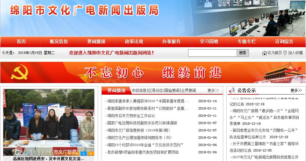 根据中共绵阳市委、绵阳市人民政府《关于印发〈绵阳市人民政府职能转变和机构改革方案〉和〈关于组织实施绵阳市人民政府职能转变和机构改革方案有关问题的意见〉的通知》(绵委发〔2014〕15号)精神,设立绵阳市文化广电新闻出版局(简称市文广新局),为市政府工作部门。 其主要职责:(一)贯彻执行党和国家有关文化、广播影视、文化遗产、新闻出版(版权)工作的方针、政策和法律、法规;拟订全市有关文化、广播影视、文化遗产、新闻出版(版权)等方面的政策规定。(二)负责全市文化、广播影视、文化遗产、新闻出版(版权)事业。负责拟订全市文化、广播影视、文化遗产、新闻出版(版权)事业产业发展规划;指导市直文广新系统的体制改革;规划、指导重点文化、广播影视、文化遗产、新闻出版(版权)基础设施建设;负责全市农村公益电影放映资金配套等事项。 (三)负责全市文学、广播影视、艺术创作生产,组织创优评比;扶持代表性、示范性、实验性文化广播影视艺术品种,推动各门类艺术及艺术教育、科研事业的发展, 推进文学影视艺术创作繁荣发展;依法管理全市重大文化活动;组织、指导全市广播影视宣传,组织拟订全市广播影视宣传规划和方案,协调、指导广播影视宣传活动。 (四)贯彻执行上级有关“扫黄打非”的方针政策;组织协调有关部门拟订全市文化、新闻出版市场“扫黄打非”的有关规定并组织实施。开展文化市场、出版物市场、“扫黄打非”集中行动和大案要案的查处工作;指导、监督、协调“扫黄打非”各成员单位,强化对文化市场、出版物市场的监管力度。负责全市文化市场、出版物市场“扫黄打非”的组织、协调、指导工作。(五)负责全市文化、广播影视、文化遗产、新闻出版(版权)行政(行业)管理,依法实施相关的行政许可;负责全市文化、广播影视、文物、新闻出版(版权)市场的监督、管理和指导文化市场综合执法工作;管理全市新闻出版活动(包括出版物的出版、印刷或复制、发行)和版权工作;依法办理行政复议案件;负责广播影视质量技术监督、监测和广播影视安全播出的监管工作;负责全市电影制片、发行、放映单位和业务的监督管理工作。(六)指导、管理文化、广播影视、文化遗产、新闻出版(版权)人才队伍建设;指导和管理文化、广播影视、文化遗产、新闻出版(版权)工作等方面的对外交流与合作。(七)负责直属文化、广播影视、文化遗产、新闻出版(版权)事业单位的管理;指导、协调文化产业发展;指导、协调全市各类群众性文化工作;协调市级公共文化设施管理。(八)承担市政府公布的有关行政审批事项。(九)承办市政府交办的其他事项。