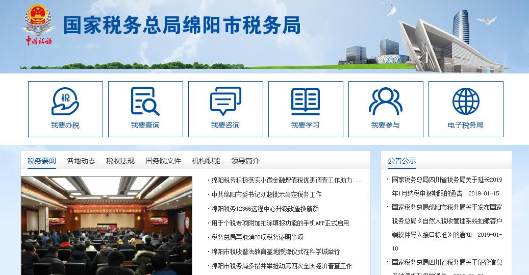 国家税务总局绵阳市税务局的主要职责是:(一)负责贯彻执行党的路线、方针、政策,加强党的全面领导,履行全面从严治党责任,负责党的建设和思想政治建设工作。(二)负责贯彻执行税收、社会保险费和有关非税收入法律、法规、规章和规范性文件,研究制定具体实施办法。组织落实国家规定的税收优惠政策。(三)负责研究拟定本系统税收、社会保险费和有关非税收入中长期规划,参与拟定税收、社会保险费和有关非税收入预算目标并依法组织实施。负责本系统税收、社会保险费和有关非税收入的会统核算工作。组织开展收入分析预测。(四)负责开展税收经济分析和税收政策效应分析,为国家税务总局四川省税务局和市委、市政府提供决策参考。(五)负责所辖区域内各项税收、社会保险费和有关非税收入征收管理。组织实施税(费)源监控和风险管理,加强大企业和自然人税收管理。(六)负责组织实施本系统税收、社会保险费和有关非税收入服务体系建设。组织开展纳税服务、税收宣传工作,保护纳税人、缴费人合法权益。承担涉及税收、社会保险费和有关非税收入的行政处罚听证、行政复议和行政诉讼事项。(七)负责所辖区域内国际税收和进出口税收管理工作,组织反避税调查和出口退税事项办理。(八)负责组织实施所辖区域内税务稽查和社会保险费、有关非税收入检查工作。(九)负责增值税专用发票、普通发票和其他各类发票管理。负责税收、社会保险费和有关非税收入票证管理。(十)负责组织实施本系统各项税收、社会保险费和有关非税收入征管信息化建设和数据治理工作。(十一)负责本系统内部控制机制建设工作,开展对本系统贯彻执行党中央、国务院重大决策及上级工作部署情况的督查督办,组织实施税收执法督察。(十二)负责本系统基层建设和干部队伍建设工作,加强领导班子和后备干部队伍建设,承担税务人才培养和干部教育培训工作。负责本系统绩效管理和干部考核工作。(十三)负责本系统机构、编制、经费和资产管理工作。(十四)完成国家税务总局四川省税务局和市委、市政府交办的其他工作。