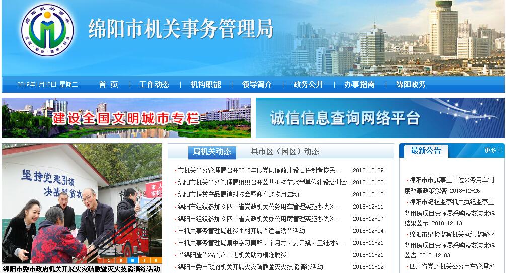 绵阳市机关事务管理局主要职责:(一)贯彻执行国家和省有关机关事务工作的方针政策,负责拟订市级机关事务服务工作的规章制度、实施办法并组织实施;确定机关后勤服务项目和标准,合理配置和节约使用后勤服务资源。(二)贯彻落实公务用车改革制度,负责制定全市党政机关、事业单位公务用车配备使用管理办法并组织实施;负责市级党政机关、事业单位公务用车保险、加油、维修等定点工作;负责纳入集中管理的市级机关公务用车的日常管理、调度、维护保养和年检年审等工作。(三)负责制定市级行政事业单位国有资产管理具体制度和办法并组织实施,参与制定本级行政事业单位国有资产配置标准;负责对委托绵阳富达资产经营有限公司管理的国有资产进行监督管理;负责产权界定、清查登记(不含市级事业单位国有资产产权登记工作)和权限内资产处置工作;会同相关部门受理有关违反国有资产管理规定的举报并依法调查处理。拟订市级机关房地产管理的规章制度并组织实施;负责协调开展市级机关办公用房建设工作;负责市级机关房屋修缮项目的审批、监管,管理市级机关房屋修缮经费;负责干部周转住房项目的审核、建设和管理。(四)牵头负责市委、市政府机关和集中办公区会议室的管理协调和有关会务工作。(五)负责推进、指导、协调、监督全市公共机构节能工作。(六)负责市委、市政府机关和进入集中办公区的机关、事业单位的物业管理工作,负责市委、市政府机关和集中办公区的绿化、环境保护工作;组织协调做好市委、市政府机关和集中办公区食堂管理等后勤服务工作。(七)负责市委、市政府机关和集中办公区安全保卫工作,负责维护市委、市政府机关和集中办公区正常工作秩序。(八)承办市委、市政府交办的其它事项。