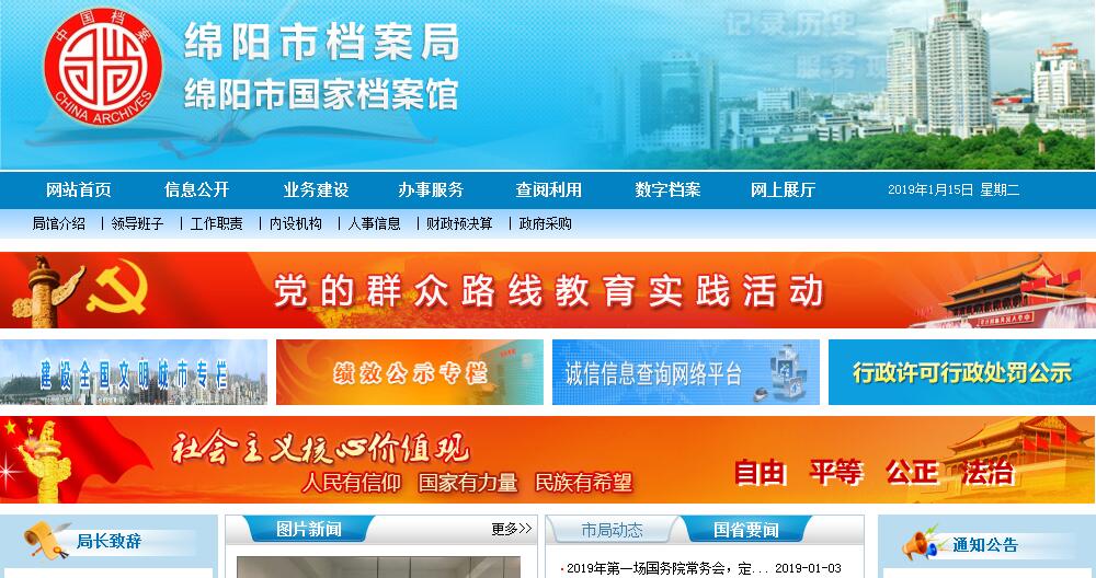 绵阳市档案局(市国家档案馆)主要职责:一、贯彻执行《中华人民共和国档案法》以及党和国家有关档案工作的方针、政策;按照统一领导、分级管理的原则对全市档案工作实行统筹规划、宏观管理;二、拟定全市档案工作有关规定及全市档案事业的中长期规划和年度计划;集中统一管理市委和市政府机关团体等的重要档案资料;三、依法对全市各级各类档案馆及机关、团体、企事业单位和其它组织的档案工作进行组织、协调、监督和指导,依法查处违反档案法律法规的行为;四、组织指导全市电子文件的归档管理,建立和完善全市统一的电子档案管理中心,监督管理全市档案安全保密体系建设;五、组织全市档案理论、科研、宣传和教育培训工作,指导档案工作人员队伍建设,应用现代化技术进行档案保护,逐步实现档案管理的规范化、标准化、科学化;六、依法接收、征集市直机关团体、事业单位、国有破产企业、其它组织和重要人员各种门类和载体的档案资料,并对进馆档案资料进行整理编目、科学管理、安全保管;七、对保管期满的档案进行鉴定和销毁,对馆藏破损档案进行抢救、修复。区分馆藏档案开放与控制使用范围,依法向社会开放档案;八、依法开展已公开现行文件和政府公开信息的收集、管理和利用服务工作。开发编研档案史料,举办爱国主义教育展览;九、组织实施馆藏文件档案信息化建设工作,建立档案信息网络和电子文件中心;十、组织开展档案学术活动,指导市档案学会工作;十一、承办市政府交办的其他事项。