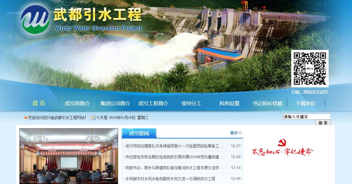 四川省绵阳武都引水工程建设管理局为市政府直属的正县级准公益型事业单位,具体承担武引工程基本建设、灌区管理、水资源开发利用等职能,经费形式为“核定收支,经费自筹”。2001年、2004年经省政府和市政府批准,组建国有独资企业“四川省武都水利水电集团有限责任公司”,作为武引二期工程(即武都水库和二期灌区工程)建设项目法人,具体履行国有资产经营管理职能,实行“两块牌子,一套人马”建管结合的管理模式。现局班子8人,党委书记、局长各设1名,副局长3名(其中1人兼任总工程师),另设纪委书记、总经济师、总会计师各1名。全局现有在职职工324人,退休职工82人。其中:事业在编职工132人、企业员工192人(正式80人、聘用112人)。其主要职责:1.贯彻执行国家、省、市有关水利工程建设管理的方针、政策和法律、法规,拟订并组织实施武引工程中长期战略规划;2.负责武都引水工程的安全运行管理和跨市的灌区管理工作;3.负责全灌区水资源的统一规划、管理和保护工作;申报取水许可证,拟订节约用水办法,推行节水措施;编制灌区用水计划,负责灌区内人民生活用水、工农业生产及环保用水等的统筹调配和水费征收工作;4.负责防洪、抗旱、农业灌溉、水土保持、水资源保护等公益性项目的申请、实施和日常工作;5.负责组织实施武引工程新建、改扩建、岁修和病害整治等建设项目的规划、勘测设计、概预算编制和审批转报工作以及工程招投标、工程建设质量监督管理、竣工决算等工作;6.协助市政府有关部门落实武引工程移民安置、工程用地、林木占用、青苗赔偿、确权划界等工作;7.负责维护、保护管护范围类内的各类水利工程、水域和土地资源等;参与水事案件的调查和水事纠纷的处理;负责市管武引工程的防汛抢险工作;8.指导武引灌区各县市区的供水管理和农毛渠配套工程建设;9.承办市政府交办的其他事项。