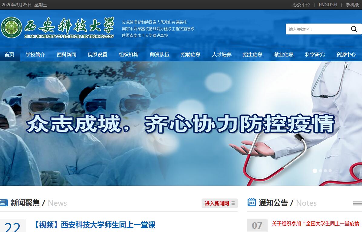 西安科技大学历史悠久,底蕴深厚。学校办学历史可以追溯到1895年成立的北洋大学工学院采矿冶金科,1938年迁并于西北工学院矿冶系,1957年并入西安交通大学,1958年从西安交通大学分出成立独立的西安矿业学院,是当时隶属原煤炭工业部仅有的2所5年制本科院校之一。1998年学校实行“中央与地方共建,以地方管理为主”,划转陕西省。1999年更名为西安科技学院,2003年更名为西安科技大学。学校是国家安全生产监督管理总局和陕西省人民政府共建高校、教育部卓越工程师教育培养计划实施高校、国家建设高水平大学公派研究生项目实施高校、国家特色重点学科项目实施高校、国家中西部高校基础能力建设工程实施高校、陕西省高水平大学建设高校。2004年,学校在教育部本科教学工作水平评估中获得优秀等级。学校先后荣获陕西省“文明校园”、“平安校园”、西安市“园林化单位”称号。学校占地面积121.52万㎡,有雁塔和临潼两个校区,设有研究生院和19个学院(部)。拥有安全技术及工程国家重点学科,8个省级优势特色(重点)学科,涵盖46个二级学科。拥有国家能源煤炭分质清洁转化重点实验室、国家煤炭工业采矿工程重点实验室(省部级)、西部煤矿安全教育部工程研究中心等16个省部级以上科研平台,1个教育部创新团队。现有8个国家特色专业、11个省级特色专业,1门国家精品课程、1门国家精品资源共享课、67门省级精品资源共享课程(精品课程),2门省级双语教学示范课程,1个国家级教学团队、28个省级教学团队,1个国家级人才培养模式创新实验区、15个省级人才培养模式创新实验区、2个国家级实验教学示范中心(虚拟仿真实验教学中心),16个省级实验教学示范中心(虚拟仿真实验教学中心)。“十一五”以来,获国家级教学成果奖2项。学校现有6个博士后科研流动站,7个一级学科博士点,40个二级学科博士点,25个一级学科硕士点,107个二级学科硕士点,18个工程硕士培养领域、1个工商管理硕士(MBA)专业学位授权点和1个会计硕士(MPAcc)专业学位授权点,56个本科专业,形成了以地矿、安全及其相关学科为特色,以工科为主体,工、理、文、管、法、经、艺协调发展的办学格局,全日制在校生2.3万人。学校有教职工2200余人,专任教师1200余人,教授、副教授500余人,教师中具有博硕士学位者1100余人。其中中国工程院院士1人,“长江学者奖励计划”特聘教授2人,国务院学位委员会学科评议组成员2人,国家“万人计划”科技创新领军人才2人,“百千万人才”工程国家级人选6人,教育部新世纪优秀人才支持计划入选者8人,省“三五人才工程”人选11人,陕西省“三秦学者”特聘教授3人,陕西省“百人计划”24人,享受国务院政府特殊津贴43人,陕西省青年科技新星12人。学校还有一支由300名专家、教授组成的高水平兼职教师队伍,其中双聘院士15人。“十二五”以来,承担科研项目5000余项,其中国家重大科技专项课题、“973”、“863”、国家科技支撑计划、国家自然科学基金以及国家社科基金等国家级项目270余项,科研经费合同总额达8亿元,获国家科技进步奖3项,省部级科技成果奖180余项;获准专利2400余项。学校先后与美国、英国、俄罗斯、日本、荷兰、澳大利亚等20多个国家和地区的近60所高校、科研机构建立了稳定友好的合作关系。学校是“1+2+1中美人才培养计划”项目创始院校之一,与澳大利亚塔斯马尼亚大学、麦考瑞大学联合开展2个中外合作办学项。学校与美国各大学联合开展了“1+2+1中美双学位项目”,与马来西亚等国家和地区的高校开展了本科、研究生学期交换生项目,以及“赴美带薪实习项目”等各类短期出国(境)交流学习项目等30余个。学校已招收来自11个国家的博、硕士及本科国际学生来校学习。50余年来,在教育部、原煤炭工业部、中共陕西省委、陕西省人民政府的领导下,几代西科人顽强拼搏、艰苦创业,将人才培养、科学研究与社会服务紧密结合,培养了13万余名高级专门人才,为煤炭工业和区域经济社会发展做出了重要贡献。展望未来,西安科技大学将秉承“团结、勤奋、求实、创新”的优良校风和“励志图存、自强不息”的“胡杨”精神,锐意改革、开拓创新,努力把学校建设成为国内一流的特色鲜明的高水平教学研究型大学,为服务区域经济社会和行业发展做出新的更大的贡献!