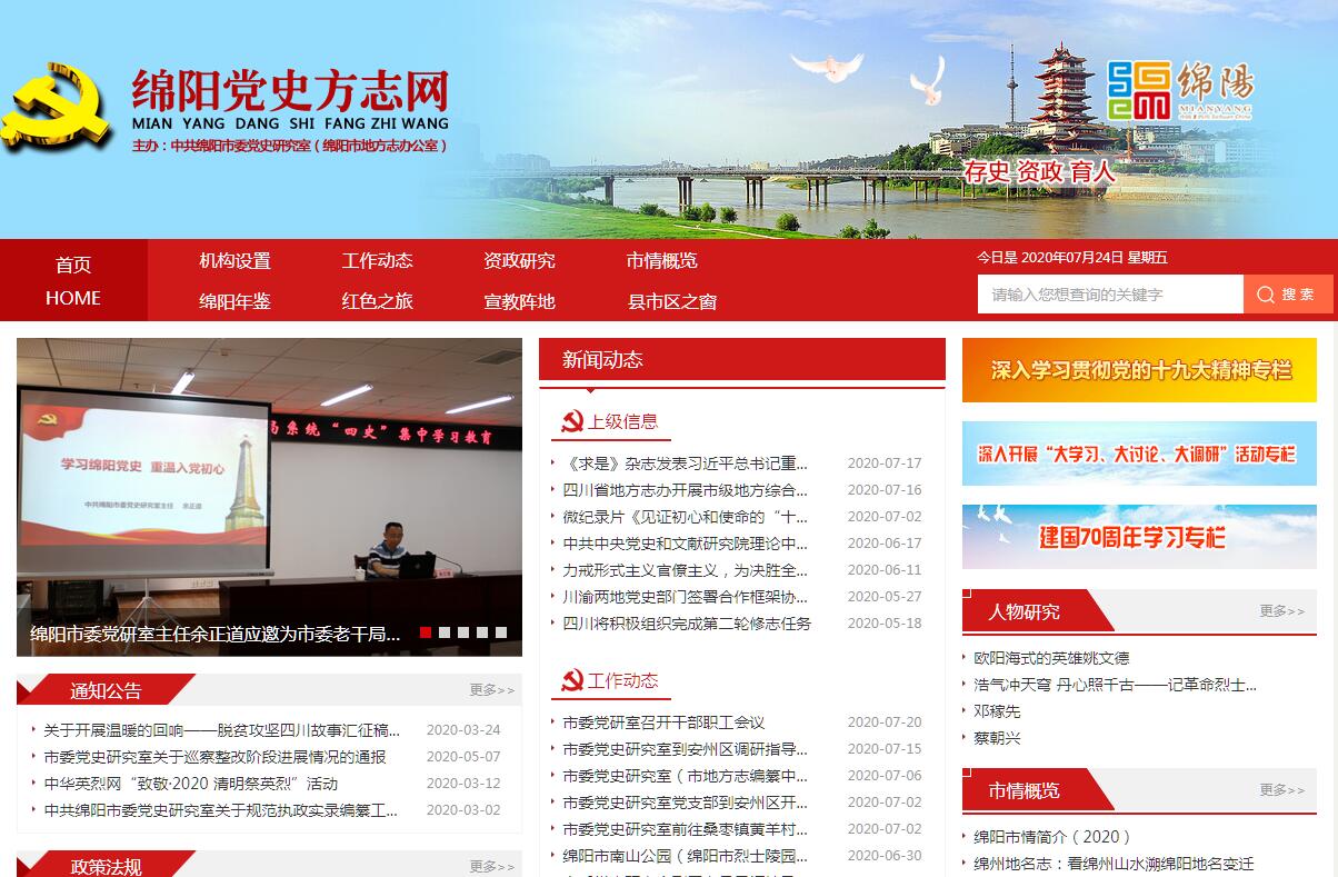 绵阳党史方志网由中共绵阳市委党史研究室(绵阳市地方志办公室)主办。中共绵阳市委党史研究室(绵阳市地方志办公室)的主要职责是:(一)贯彻党中央、省委、市委有关党史工作的方针、政策,落实国务院、省政府、市政府有关地方志工作的决策、部署,参与拟订全市党史、地方志工作的中长期规划和年度计划。(二)协助做好全市党史研究、地方志管理的事务性工作。(三)组织编辑出版《中国共产党绵阳执政实录》等党史基本著作和普及性党史书刊,组织编纂、出版发行《绵阳市志》《绵阳年鉴》《中国(绵阳)科技城年鉴》等地方志书、地方综合年鉴和其他相关地情文献,组织编纂全市党史资料、党的历史文献资料及其他地情文献资料。(四)开展党史、地方志理论研究和资政研究,提炼、总结党委领导革命、建设、改革等事业的经验与教训。(五)收(征)集、整理、保存、抢救、保护党史、地方史、地方志和其他相关党史、地情文献资料,配合做好绵阳市革命文物保护利用工作。(六)开展全市党史、地方志宣传教育,普及党史、地方志知识。(七)配合做好党史基本著作、县(市、区)志书、市直部门(行业)志书和列入市级编修规划的其他各级各类志书的审查验收工作。(八)开展党史、地方志工作经验交流、成果评比和学术活动。(九)完成市委、市政府交办的其它任务。