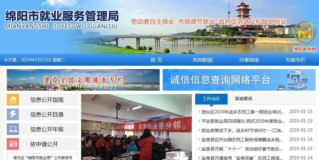 绵阳市就业服务管理局主要职责:1、贯彻执行国家有关劳动就业、失业保险的法律法规和方针政策;参与制订全市城乡就业、创业促就业、人力资源市场管理、职业培训、失业保险等政府规章和规范性文件;2、拟定全市城镇失业人员就业、创业促就业、就业服务体系建设、就业培训和创业培训、就业型企业和社区就业、农村劳动力转移就业和劳务输出以及失业保险有关工作方案和具体实施办法;3、负责全市劳动用工事务的综合管理,承办市级用人单位招用人员简章备案、录用备案和就业登记工作;4、负责全市公共就业服务的组织管理和就业服务体系建设;指导各县市区开展职业指导、职业介绍、就业培训、创业培训、发展就业型企业、开发社区就业岗位、农村劳动力转移就业和劳务输出等项公共就业服务管理工作;5、归口管理全市公共职业介绍机构和就业训练中心;指导和推动全市社区就业实体和就业型企业的发展;承担全市街道(乡镇)和社区劳动保障平台建设的相关工作;6、组织实施全市人力资源市场科学化、规范化、现代化建设和就业服务制度化、专业化、社会化建设,具体负责全市人力资源市场职业供求状况分析、城镇失业人员和农村劳动力就业与失业监测等项工作;组织就业管理服务系统工作人员业务培训和职业指导、职业介绍、职业信息分析、创业培训等专业的师资培训;7、指导各县市区开展用人单位空岗调查、就业失业登记、用人单位招收录用人员和终止或解除劳动关系备案;负责全市职业供求信息、工资指导价位信息的发布等项人力资源市场管理工作;8、拟定《四川省就业失业登记证》和《企业实体吸纳下岗失业人员认定证明》等证件的使用和管理办法,指导各县市区按规定做好审核发放、资格认定与年检验工作;开展对就业政策落实情况的督导和评估;9、负责吸纳安置下岗失业人员就业型企业的资格认定和《企业认定证明》的审核发放与管理工作;指导各县市区“充分就业社区”和“信用社区”建设、小额担保贷款工作以及城镇失业监测、农村劳动力流动监测等项工作;10、负责实施失业保险市级统筹、失业人员参加医疗保险、全市省级失业保险调剂金的筹集、上解和全市省级失业保险调剂金的分解和下拨;编制全市和市级失业保险基金的预、决算,具体承担市级机关、企事业单位失业保险费的征缴以及享受失业保险待遇人员的管理和失业保险金审核发放等业务;承办各县市区失业保险基金预决算的汇审、上报工作;指导各县市区依法开展失业保险扩面、征缴、失业保险金审核发放和基金监督管理等项工作;11、负责全市就业经费的预、决算工作,指导各县市区就业经费的使用管理;负责对全市失业保险基金的筹集、管理和使用情况进行审计监督,组织实施对市级直接统筹的机关、企事业单位以及各县市区失业保险费申报和缴纳情况进行稽核检查;12、组织实施全市人力资源市场信息网络和就业管理服务信息化建设,负责相关软件开发、网络运行、网络安全及维护管理工作;13、按国家统计法规和部、省有关规定负责全市城乡就业失业、就业失业登记、职业培训、创业培训、农村劳动力技能培训、职业介绍、就业型企业、社区就业实体、失业保险、失业监测、小额担保贷款、就业经费等常规和临时报表的统计、分析和上报工作;14、行使市政府和市人力资源和社会保障局赋予的其他行政职能和相关公共事务管理工作。