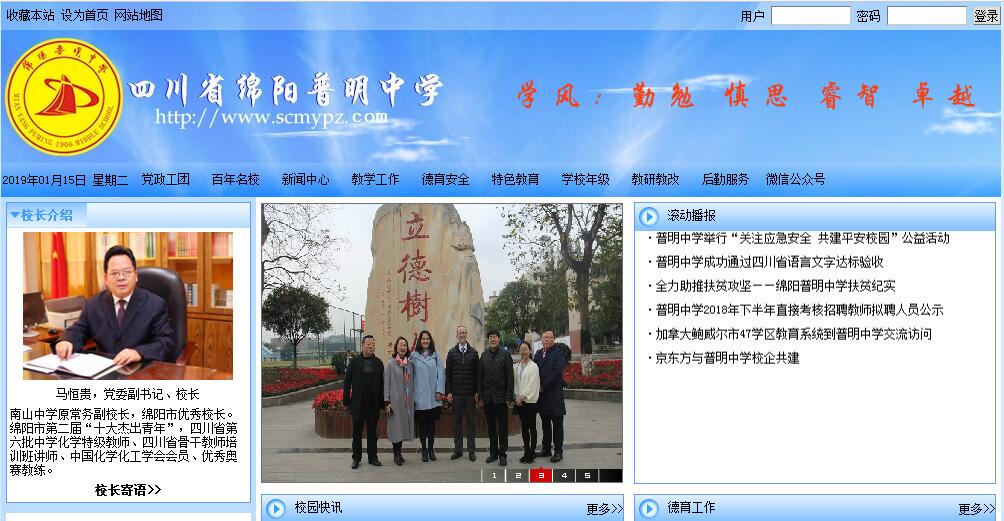 四川省绵阳普明中学校创办于1906年,是绵阳市教育体育局直属的省级示范高中,誉为中国西部名校、全国体育传统项目学校。100多年前的华英学堂就名震绵州,后来分变成今天的四川省普明中学和南山中学。2000年直属市教体局后,学校办学规模不断扩大,在校学生近6000人;办学质量不断攀升,连年获得教学质量特等奖、一等奖,名列同类学校前茅。在四川省绵阳普明中学发展的快车道上,抛洒着市委市政府领导的心智和汗水。龙年到来时,古稀之年的四川政协前副主席杨海清先生亲临母校,赠匾祈福;市人大副主任黄正良亲临学校调研指导,市教育局局长邱兴元同志更是以一个领导和校友的双重身份来校指点学校发展迷津。学校迎来了前所未有的发展机遇。在市教体局党委副书记、副局长、南山中学校长吴明禹的大力支持下,带领两校师生实现真正意义上协同发展。实现校本资源共享,实行校网互通,进行两校教学课堂“同课异构”、“送课上门”等系列活动。在南山中学的优质课展示上有四川省绵阳普明中学教师的身影,在四川省绵阳普明中学的讲座中有南山老师的声音。两校校园中你中有我,我中有你,成为了一种常态。两校老师共同书写着绵阳教育的传奇。学校现有特级教师3人,高级教师达93人占专任教师的35%,中级教师109人占专任教师的41.2%,中高级教师占专任教师的76.2%;省市级骨干教师48人,占专任教师的18.1%。尤其是所有高中考科目市级评价中,都获得过一等奖,获奖教师人数高达30%;其中近3年被评为“绵阳明星教师”的多达8人。2012年新招研究生12,我校研究生达26人。学校教育教学工作以学生成人为切入点,以学生成才为目标,对学生从习惯、思想、学习、生活全方位定时定人关心辅导,一直创造着“低入口,高出口”的教学奇迹,彰显了学校深厚的教学实力和不俗的育人水平。四川省绵阳普明中学校园面积160余亩,建筑面积6万平方米,依安昌江、毗长虹集团、邻市委市政府,交通便利。学校拥有功能先进的数字化教学平台、语音室、网络教室、多媒体教室、国家二级标准运动场博腾运动中心、形体训练室、演播大厅,各种设施完善的学生公寓、食堂、礼堂,为学生提供了良好的学习、生活、休息环境。普中师生弘扬着奋勇拼搏,敢为人先的普中精神。短短的几年时间里,捧回了“省级校风示范学校”、“省级高中示范学校”、“全国实验教学先进学校”、“绵阳市学校安全工作特等奖”等10多项荣誉奖牌。其中“全国特色体育先进学校”、“成都空军保苗基地”、“成都军区国防生培养基地”等荣誉还是全绵阳的唯一。全校开展创新教育教学理念大讨论,落实新课程“三维目标”,通过讲座、演讲、研讨等形式重新建构教学思想和教学范式。以“积极投身课改,创建少讲多学高效课堂”为牵引,以“比教法比效益”为杠杆,在全校师生中开展“内练真功,外树形象”的大比武活动。四川省绵阳普明中学呈现了天天有研讨,周周有示范,月月有赛课的热火朝天的教学比武活动。上期,阚宝莲老师获绵阳市生物优质课大赛一等奖,代表绵阳参加省上大赛。孙玉老师获政治科青年教师新课改展示课大赛一等奖。熊力老师获绵阳市历史优质课大赛一等奖。戴丽娟、罗倩两老师均获绵阳市中小学语文老师教学技能大赛一等奖。创造了每赛必奖的骄人局面。为学生多元化发展,制定了“学生成才立交桥工程”。聘请西安交大教授进校讲学,与四川大学、西南交通大学、四川师范大学,四川建筑学院联合办学,拓宽了学生成才渠道。学校没有体育,学校就没有生气;学校没有艺术,学校就没有灵气。成立了交响乐团、田径运动队、足球队,组建了美术、音乐、舞蹈、播音、编导、主持训练班。大力倡行快乐学习,主张“乐中养德,趣中启智”,以丰富多彩的学生活动做杠杆,撬开学生学习兴趣的大门;以活泼生动的学生活动做平台,让学生尝试做人成功的快乐。