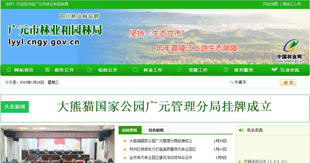根据《中共广元市委 广元市人民政府关于印发〈广元市人民政府机构改革方案〉和〈广元市人民政府机构改革方案的实施意见〉的通知》(广委〔2010〕70号),设立广元市林业和园林局(简称市林业园林局),为市政府工作部门。其主要职责:(一)负责全市林业及其生态建设的监督管理。贯彻执行国家有关林业的方针、政策和法律、法规,拟订全市林业及其生态建设的相关政策、发展战略、中长期规划和起草相关规范性文件并监督实施。组织拟订有关地方标准和规程并指导实施,组织开展全市森林资源、陆生野生动植物资源、湿地和荒漠的调查、动态监测和评估,并统一发布相关信息。承担林业生态文明建设的有关工作。(二)组织、协调、指导和监督全市造林绿化工作。拟订全市造林绿化规划和年度指导性计划,拟订相关市级标准和规程并监督执行,指导各类公益林和商品林的培育,指导植树造林、封山育林和以植树种草等生物措施防治水土流失工作,组织、指导和监督全民义务植树、造林绿化工作。承担林业应对气候变化的相关工作。承担广元市绿化委员会的具体工作。(三)承担全市森林资源保护发展监督管理的责任。贯彻执行国家森林采伐限额和林地保护利用规划,组织编制并监督执行全市森林采伐限额,监督检查林木凭证采伐、运输。组织全市森林资源调查、动态监测和统计。组织、指导林地、林权管理,组织实施林权登记、发证工作,拟订全市林地保护利用规划并组织实施,依法承担林地征用、占用的初审工作,管理重点国有林区的国有森林资源,承担国有森林资源资产产权变动的审核报批工作。(四)组织、协调、指导和监督全市湿地保护工作。贯彻执行国家有关湿地保护规划及其相关的标准规定,拟订全市湿地保护规划及其相关的地方标准和规定。组织实施建立湿地保护小区、湿地公园等保护管理工作,监督湿地的合理利用。组织、协调全市有关国际湿地公约的履约工作。(五)组织、协调、指导和监督全市荒漠化防治工作。贯彻执行国家有关防沙治沙、石漠化防治及沙化土地封禁保护区建设规划及其标准和规定,组织拟订相关地方标准和规定并监督实施。监督沙化土地的合理利用,组织、指导建设项目对土地沙化影响的审核,组织、指导沙尘暴灾害预测预报和应急处置,组织、协调全市有关国际荒漠化公约的履约工作。(六)组织、指导全市陆生野生动植物资源的保护和合理开发利用。依法组织、指导陆生野生动植物的救护繁育、栖息地恢复发展、疫源疫病监测,监督管理全市陆生野生动植物猎捕或采集、驯养繁殖或培植、经营利用,监督管理野生动植物进出口。承担濒危物种进出口和国家、省保护的野生动物、珍稀树种、珍稀野生植物及其产品出口的审核报批工作。(七)负责全市林业系统自然保护区的监督管理。依法指导全市森林、湿地、荒漠化和陆生野生动物类型自然保护区的建设和管理,组织协调有关国际公约的履约工作,监督管理林业生物种质资源、转基因生物安全、植物新品种保护,负责生物多样性保护的有关工作。(八)承担推进全市林业改革,维护农民和其他经营者经营林业合法权益的责任。贯彻执行国家有关集体林权制度、重点国有林区、国有林场等重大林业改革意见和政策,拟订全市重大林业改革的实施意见和政策并监督实施。拟订全市农村林业发展、维护农民和其他经营者经营林业合法权益的政策措施,指导、监督农村林地承包经营和林权流转,指导林权纠纷调处和林地承包合同纠纷仲裁。负责退耕还林工作。指导国有林场(苗圃)、森林公园和基层林业工作机构的建设和管理。(九)监督检查全市各产业对森林、湿地、荒漠和陆生野生动植物资源的开发利用。贯彻执行国家有关林业资源优化配置政策及其产业标准,拟订全市林业产业发展规划和相关政策措施并监督实施,组织指导林产品质量监督。指导山区林业综合开发。(十)承担组织、协调、指导、监督全市森林防火工作的责任。组织、协调森林扑火队伍的防扑火工作,承担广元市森林防火指挥部的具体工作。承担全市林业行政执法监管的责任,指导全市森林公安工作,管理森林公安队伍,指导全市林业重大违法案件的查处。指导全市林业有害生物的防治、检疫工作。(十一)负责指导、协调全市的林业经济工作。贯彻执行国家有关林业及其生态建设的财政、金融、价格、贸易等经济调节政策,组织、指导全市林业及其生态建设的生态补偿制度的建立和实施。编制部门预算并组织实施,提出市财政林业专项资金的预算建议,管理监督市级林业资金,管理市级林业国有资产,负责提出全市林业固定资产投资规模和方向、市财政性资金安排意见,按规定权限审核报批、核准规划内和年度计划内固定资产投资项目。编制全市林业及其生态建设的年度生产计划。(十二)根据本市城市总体规划,制定城镇园林绿化建设目标,参与编制城市绿化绿(林)地系统详细规划和林业专业规划,制定中长期发展规划和年度建设规划并组织实施;负责编制全市生态林地、园林绿地、公园、广场、道路绿化、小游园、风景林地、防护绿地等工程建设项目和基建项目的年度计划并组织实施;负责城市“绿线”管理。(十三)依法办理绿(林)地征用、占用,树(林)木的砍伐、移植,野生动物经营管理,木