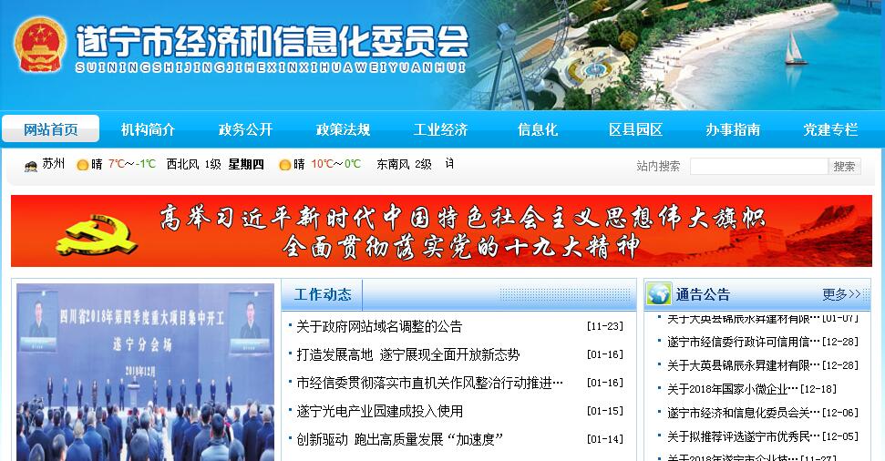 遂宁市经济和信息化委员会的主要职责是:(一)贯彻实施国家、省有关工业经济、信息化和无线电管理的方针、政策和法律、法规,组织实施国家西部大开发战略等有关工业经济的政策措施,研究拟订全市有关工业经济、信息化和无线电管理的政策措施并组织实施;负责本系统、本部门依法行政工作,落实行政执法责任制。组织推动信息化和工业化融合、工业化与城镇化联动,负责推进全市工业结构调整。(二)负责拟订新型工业化发展战略和重大政策,协调解决新型工业化进程中的重大问题,组织实施工业强市战略。参与制订国民经济和社会发展规划,负责制定并组织实施工业、信息化相关行业的发展规划、年度计划和产业政策,拟订行业技术规范与行业标准并组织实施,指导行业质量管理工作。(三)监测、分析经济运行态势和质量,建立全市工业经济运行预警机制,拟订中、近期经济运行目标、政策并组织实施,协调解决经济运行中的重大问题。负责电力、煤炭、成品油、天然气等重要物资综合调控、紧急调度和交通运输协调工作,负责市级医药储备的监督管理。承办年度工业经济目标责任考核。(四)负责全市企业技术改造推进工作,组织制定并实施全市企业技术改造投资规划和政策,制定并发布全市企业技术改造投资项目引导目录。提出工业和信息化固定资产投资规模的意见,按照规定权限审批、核准、备案或转报审批、核准、备案全市企业技术改造项目,组织企业技术改造项目申报国家、省有关专项计划并组织实施。(五)负责全市企业技术创新体系建设,制定鼓励企业技术创新的政策措施,指导企业技术创新、技术引进、重大装备国产化和重大技术装备研制,编制下达全市企业技术创新项目计划并组织实施,按照规定程序会同有关部门组织企业开展技术中心申报、认定和建设管理工作。(六)负责全市产业园区建设发展的牵头服务和综合协调工作,拟订并组织实施产业园区、产业集群发展规划和政策措施,指导产业园区合理布局,负责牵头推进重点产业园区建设发展,推进园区公共配套设施建设,组织申报、实施产业园区公共服务平台项目计划。(七)负责全市工业和信息化领域的节能降耗、清洁生产和资源节约与综合利用工作,协调推进工业化与生态环境协调发展中的重大问题,组织实施相关重大示范项目和新产品、新技术、新工艺、新设备、新材料的推广应用。(八)负责推进企业信用制度建设,负责中小企业信用担保和融资体系建设并实施行业监管,负责制订工业发展资金等财政专项资金使用计划,负责企业技术改造、技术创新、生产运行等涉及财政、信贷、税收、保险等方面问题的协调,指导工业企业直接融资工作,参与工业企业上市培育工作。(九)对国家重大工业经济政策实施情况进行督查,指导企业建立现代企业制度、改组改造、兼并重组,负责全市企业治乱减负工作,指导企业经营管理人员、专业技术人员培训,负责全市大企业大集团和龙头骨干企业的培育工作,负责全市中小企业发展的指导推进工作,综合协调有关部门拟订促进中小企业发展的政策措施,负责推进中小企业服务体系建设。(十)负责对全市工业各行业实施行业管理,制定并组织实施相关政策措施,拟订新材料、节能环保、生物医药等战略性新兴产业发展规划、年度计划、政策措施并组织实施。拟订加快农产品加工业发展的政策措施,参与推进农业产业化龙头企业建设,参与推进农业现代化和新农村建设。指导工业、信息化和无线电领域的社会中介组织发展。(十一)统筹推进全市信息化工作,制定并组织实施相关政策,指导电子政务、企业信息化、电子商务和物联网发展,推动跨行业、跨部门面向社会服务网络的互联互通和信息资源共享。(十二)负责全市信息基础设施建设的规划、协调和管理,组织相关部门制订通信管线规划并承担相应的管理工作,协调电信市场涉及社会公共利益的重大事项。(十三)组织协调全市信息安全保障体系建设,指导和监督政府部门、重点行业的重要信息系统与信息网络的安全保障工作,指导信息安全防范工作,参与处理网络与信息安全重大事件。(十四)统一配置和管理全市无线电频率资源,依法监督管理无线电台(站),协助做好无线电电磁环境保护工作,负责无线电监测、检测和干扰查处,协调军地无线电管理相关事宜,维护空中电波秩序,依法组织实施无线电管制。(十五)会同有关部门提出工业和信息化领域对外开放和利用外资的政策建议,参与区域经济合作和承接产业转移工作。指导工业和信息化企业开展对外交流与合作、国际化经营、境外投资及兼并重组。(十六)承担市政府公布的有关行政审批事项。(十七)承办市政府交办的其他事项。