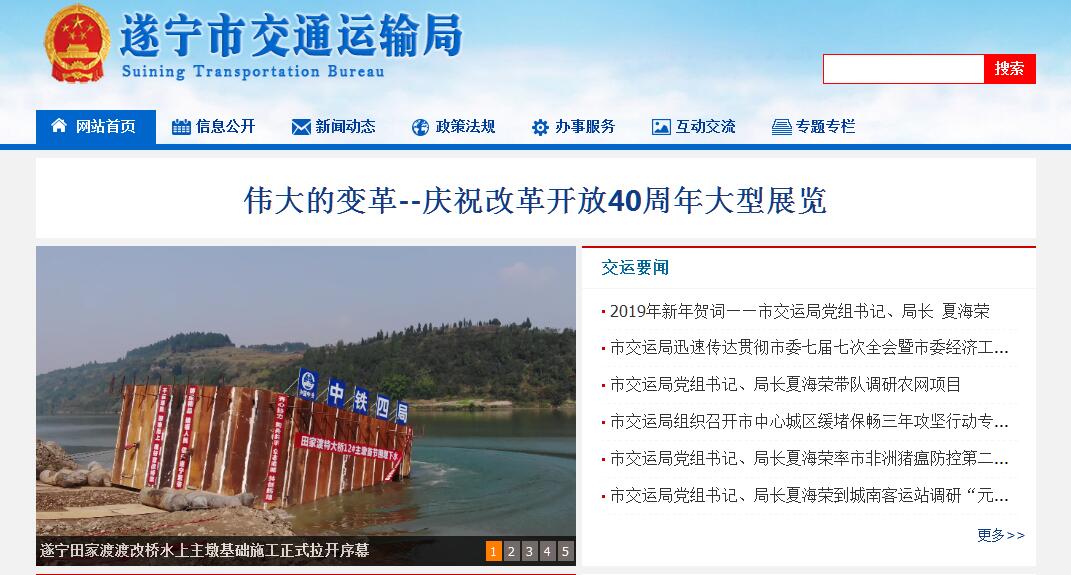 遂宁市交通运输局主要职责:(一)贯彻执行国家和省有关交通运输行业的方针、政策和法律、法规。组织拟订并监督实施公路、水路等行业规划、政策和标准,参与拟订综合运输体系规划和物流业发展战略、规划。(二)负责本部门依法行政工作,落实行政执法责任制。指导公路、水路行业有关体制改革工作,承担全市国省干线公路管理的有关工作。(三)承担道路、水路交通运输市场监管责任,组织监督道路、水路运输有关政策、技术标准和运营规范的贯彻实施,指导城乡运输管理工作,指导城市公交客运和出租汽车行业管理工作,会同有关部门制定运输价格。(四)承担水上交通安全监管责任。负责水上交通管制、运输船舶及相关水上设施检验、登记和防止污染、救助打捞、通讯导航、危险品运输的监督管理工作,负责船员管理相关工作。指导水上交通安全事故、船舶及相关水上设施污染事故的应急处置,依法组织或参与事故调查处理工作。(五)负责提出公路、水路固定资产投资规模和方向、市财政性资金安排建议,按照规定权限审批、核准省、市规划内和年度计划规模内固定资产投资项目。配合上级部门拟订公路、水路有关规费政策并监督实施,提出有关财政、土地、价格等政策建议。指导交通运输行业审计工作。(六)承担公路、水路建设市场监管责任。配合上级部门拟订公路、水路工程建设相关政策、制度、技术标准并监督实施,组织协调公路、水路有关重点工程建设和工程质量、安全生产监督管理工作。负责对交通运输行业的招标投标活动的监督执法。指导交通运输基础设施管理和维护。按规定负责港口规划和港口岸线使用管理工作,指导交通运输行业特许经营管理,会同有关部门组织实施交通运输行业职业资格管理工作。(七)指导公路、水路行业安全生产和应急管理工作。按规定组织协调省、市重点物资和紧急客货运输。组织协调地方交通战备工作,承担国防动员有关工作。(八)监督实施交通运输科技政策,组织重大科技开发。指导全市交通运输信息化建设,监测分析运行情况,开展相关统计工作,发布有关信息。指导公路、水路行业环境保护和节能减排工作。(九)负责公路、水路有关涉外工作,开展对外经济技术交流与合作,指导全市交通运输行业利用外资工作。(十)承担省政府公布的有关行政审批事项。(十一)承办市政府交办的其他事项。
