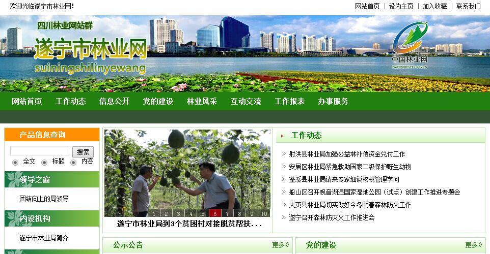 遂宁市林业局主要职责:(一)负责全市林业及其生态建设的监督管理。贯彻执行国家有关林业的法律、法规,拟订全市林业及其生态建设的相关政策、发展战略、中长期规划和起草相关规范性文件并监督实施。组织开展全市森林资源、陆生野生动植物资源、湿地和荒漠的调查、动态监测和评估,并统一发布相关信息。承担林业生态文明建设的有关工作。(二)组织、协调、指导和监督全市造林绿化工作。制订全市造林绿化规划和年度指导性计划,指导各类公益林和商品林的培育,指导植树造林、封山育林和以植树种草等生物措施防治水土流失工作,组织、指导和监督全民义务植树、造林绿化工作。承担林业应对气候变化的相关工作。承担市绿化委员会的具体工作。(三)承担全市森林资源保护发展监督管理的责任。贯彻执行国家森林采伐限额和林地保护利用规划,组织编制并监督执行全市森林采伐限额,监督检查林木凭证采伐、运输。组织全市森林资源调查、动态监测和统计。组织、指导林地、林权管理,组织实施林权登记、发证工作,拟订全市林地保护利用规划并指导实施,依法承担林地征用、占用的初审及报批工作,管理国有林区的国有森林资源,承担国有森林资源资产产权变动的审核报批工作。(四)组织、协调、指导和监督全市湿地保护工作。贯彻执行国家有关湿地保护规划及其相关的标准规定,拟订全市湿地保护规划及其相关的地方规定。组织实施建立湿地保护小区、湿地公园等保护管理工作,监督湿地的合理利用。组织、协调全市有关国际湿地公约的履约工作。(五)组织、协调、指导和监督全市荒漠化防治工作。贯彻执行国家有关防沙治沙、石漠化防治及沙化土地封禁保护区建设规划及其标准和规定,组织拟订相关规定并监督实施。监督沙化土地的合理利用,组织、指导建设项目对土地沙化影响的审核,组织、指导沙尘暴灾害预测预报和应急处置,组织、协调全市有关国际荒漠化公约的履约工作。(六)组织、指导全市陆生野生动植物资源的保护和合理开发利用。依法组织、指导陆生野生动植物的救护繁育、栖息地恢复发展、疫源疫病监测,监督管理全市陆生野生动植物猎捕或采集、驯养繁殖或培植、经营利用,监督管理野生动植物进出口。承担濒危物种进出口和国家、省保护的野生动物、珍稀树种、珍稀野生植物及其产品出口的审核报批工作。(七)负责全市林业系统自然保护区(小区)的监督管理。依法指导全市森林、湿地和陆生野生动物类型自然保护区(小区)的建设和管理,组织协调有关国际公约的履约工作,监督管理林业生物种质资源、转基因生物安全、植物新品种保护,按分工负责生物多样性保护的有关工作。(八)承担推进全市林业改革,维护农民和其他经营者经营林业合法权益的责任。贯彻执行国家有关集体林权制度、国有林区、国有林场等重大林业改革意见和政策,拟订全市重大林业改革的相关实施意见和政策并指导监督实施。拟订全市农村林业发展、维护农民和其他经营者经营林业合法权益的政策措施,指导、监督农村林地承包经营和林权流转,指导和承担林权纠纷调处及林地承包合同纠纷仲裁。依法负责退耕还林工作。指导国有林场(苗圃)、森林公园和基层林业工作机构的建设和管理。(九)监督检查全市各产业对森林、湿地、荒漠和陆生野生动植物资源的开发利用。贯彻执行国家有关林业资源优化配置政策及其产业标准,拟订全市林业产业发展规划和相关政策措施并监督实施,组织指导林产品质量监督。指导林业综合开发。(十)承担组织、协调、指导、监督全市森林防火工作的责任。组织、协调专业半专业森林扑火队伍的防扑火工作,承担市森林防火指挥部的具体工作。承担全市林业行政执法监管的责任,指导全市森林公安工作,管理森林公安队伍,指导全市林业重大违法案件的查处。指导全市林业有害生物的防治、检疫工作。(十一)负责指导、协调全市的林业经济工作。贯彻执行国家有关林业及其生态建设的财政、金融、价格、贸易等经济调节政策,组织、指导全市林业及其生态建设的生态补偿制度的建立和实施。编制部门预算并组织实施,提出市财政林业专项资金的预算建议,管理监督市级林业资金,管理市级林业国有资产,负责提出全市林业固定资产投资规模和方向、市财政性资金安排意见,按规定权限审核报批、核准规划内和年度计划内固定资产投资项目。编制全市林业及其生态建设的年度生产计划。(十二)负责全市林业及其生态建设的科技、宣传、教育和外事工作,指导全市林业队伍建设。(十三)承担省市政府公布的有关行政审批事项。(十四)承办市政府交办的其他事项。
