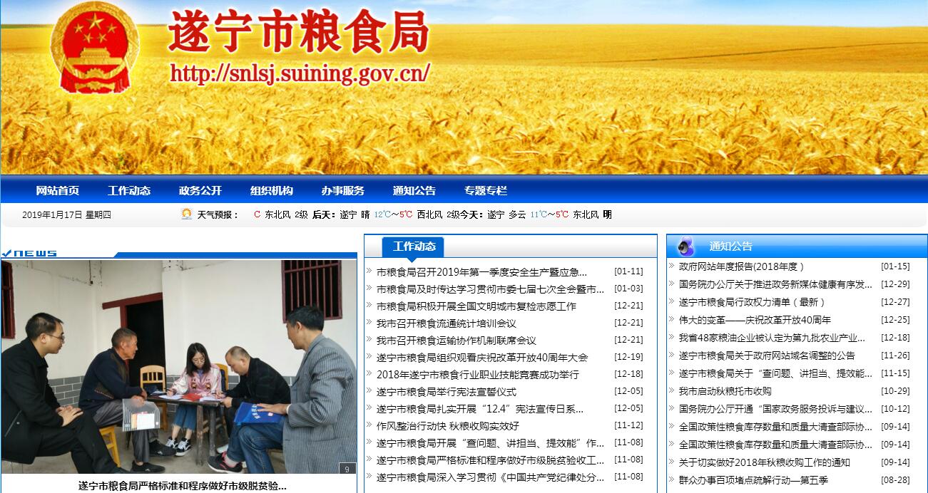 根据遂宁市人民政府办公室《关于印发遂宁市发展和改革委员会主要职责内设机构和人员编制规定的通知》(遂府办发〔2014〕14号)文件,将市粮食局的职责划入市发展和改革委员会,市发展和改革委员会加挂市粮食局的牌子。其主要职责:贯彻执行国家、省粮食流通和储备粮管理的政策法规,监督执行粮食流通、库存监督检查等相关管理制度;承担粮食行政调解、行政复议、行政应诉工作;承担粮食预警监测和应急职责,负责全市粮食宏观调控具体工作,组织指导全市粮食系统统计工作;研究提出全市粮食流通中长期规划;管理社会粮食流通,保障军队等政策性粮食供应;承担市级储备粮行政管理职责,指导全市粮食储备体系建设,提出市级储备粮总规模、总布局和收储、轮换、动用计划建议并组织实施;协助做好辖区内各类政策性储备粮的监督管理工作;贯彻实施国家粮食质量标准,负责全市粮食收购、储存环节和政策性用粮质量安全,负责库存原粮卫生监督管理,指导粮食行业安全生产和抢险救灾;指导全市农村科学储粮工作;研究制定粮食流通产业发展规划,指导、协调全市粮食流通基础设施建设。指导粮食企业科技进步、技术改造和新技术推广应用;指导城乡粮食流通市场建设;指导全市国有粮食企业的财务管理和会计报告工作;组织编报全市国有粮食企业会计报表及会计决算;负责中、省、市预算拨付的粮食政策性补贴资金和专项资金的使用管理;会同有关部门管理粮食风险基金、政策性粮食财务挂账,参与粮食收购资金贷款管理;制定粮食系统人才发展规划,指导全市粮食行业的职业教育。