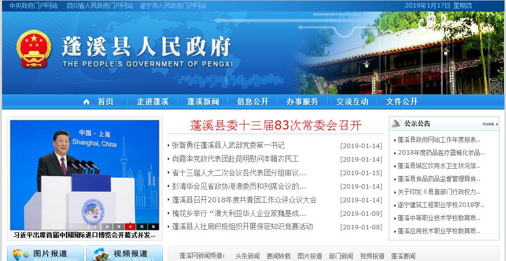 蓬溪位于四川盆地中部偏东,幅员面积1251平方公里,辖31个乡镇、495个行政村,总人口近70万。蓬溪东晋永和11年(公元355年)建县,唐天宝元年(公元742年)定名,历史悠久,人文荟萃,素有“五史之乡”、“孝子故里”、“古壁画艺术之乡”、“洞经音乐发祥地”等美誉。蓬溪是“中国革命老区”,1929年6月29日,旷继勋将军率部发动了蓬溪起义,创建了中国工农红军四川第一路和四川第一个县级红色政权——蓬溪县苏维埃政府。蓬溪是“中国书法之乡”,2000年至2010年,先后三次文化部授予称号,在国内具有较高知名度,全县现有中国书协会员21人,省、市书协会员300余人,民间书法家数万人。蓬溪是“中国西部门都”,2009年8月,刘奇葆同志莅蓬视察时曾作出“蓬溪工业发展有门”的高度评价;2011年2月,被全国高科技建筑建材产业化委员会命名授牌;现已建成全国唯一的门业专业化工业园,是全国唯一的县级门业研发制造基地。蓬溪也是全国产粮大县、产油大县、生猪调出大县、国家级双孢蘑菇标准化示范区、全省现代农业产业强县、全省现代林产业强县、全省现代畜牧业重点县、省级文化先进县、全省第二批扩权强县试点县、省级“双拥”模范县、省级平安县、省级环保模范县、省级绿化模范县、省级卫生县城、省级文明城市、省级园林县城。蓬溪县幅员面积1251平方公里,辖31个乡镇,总人口80万,是中国书法之乡、中国革命老区、中国西部门都。蓬溪历史悠久、人杰地灵,东晋永和十一年(公元355年)建县,史称“梓东邹鲁、文献名邦”,养育了宋代名臣冯楫、明代武英殿大学士席书、清代名相张鹏翮、清代蜀中诗冠张问陶、当代敦煌专家段文杰等历史文化名人,留下了严君平隐修、王弘书碑、杜甫著文、黄辉题匾、李时珍知县、旷继勋起义等史海佳话,“蓬溪书法现象”蜚声全国,享有孝子故里、五史之乡、洞经音乐发源地的美誉。蓬溪厚积薄发、前景广阔,通过近年来的努力,蓬溪基础设施不断完善,全省“两化互动、产城一体”新典范——金桥新区加速崛起,国家级现代农业示范区初具规模,中国书法城建设匠心独具,中国红海四方迎客,上游工业园已建成全国唯一的门业专业化工业园、唯一的县级门业研发制造基地,拥有四川省门业研发、检测中心,原四川省委书记、省人大常委会主任刘奇葆莅蓬视察时曾作出“蓬溪工业发展有门”的高度评价。70万蓬溪儿女秉承弘扬“厚德崇文、开放包容、奋发图强”的蓬溪精神,正在抢抓全面深化改革机遇,借力遂宁、融入成渝,努力实现加快发展、跨越追赶。
