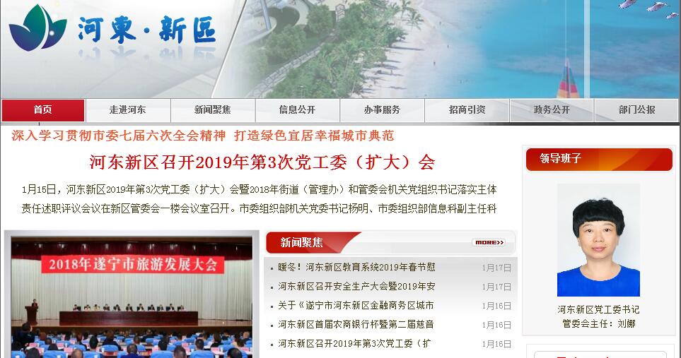 遂宁市河东新区成立于2002年9月。河东新区是遂宁城市总体规划中的一部分,位于涪江东岸,与老城隔江相望,桥水相连。为加快遂宁城市化进程,改善老城拥挤的现状,提升遂宁城市形象,拉动遂宁经济发展, 2002年市委、市政府确定开发建设河东,作为扩展遂宁城市规模、完善城市功能、提高城市品味、塑造城市形象的重要区域。同年9月,河东新区成立,辖永兴、仁里两个乡镇,幅员面积158平方公里,辖区人口10.4万人,城市规划建设面积30余平方公里,首期规划面积10平方公里。2004年3月,遂宁市进行区划调整,河东新区原托管的永兴镇及及仁里镇大部分村社不在纳入管辖范围,由船山区管理,其管辖范围为首期城市规划面积10平方公里,辖灵泉、慈音两个街道办事处,9个社区居委会,常驻人口2.8万人。河东新区城市定位为文化旅游产业区、现代生态田园城,现主要引进发展以文化旅游、生产生活性服务、楼宇经济、高尚雅居、商贸商务、教育培训、体育运动、演艺会展、文化创意、工业设计、艺术创作、休闲度假、动漫游戏、出版发行、复制印刷、传媒影视、金融服务等为主的现代服务业。规划建设“一谷、三带、四组团”(中华养生谷、滨江文化旅游产业带、滨河文化旅游产业带、清汤湖现代休闲产业聚集带、滨水文化组团、湿地文化组团、文化创意组团、生态田园组团)城市格局,以及“两区、五园、三带”(中华养生谷文化旅游区、观音故里文化旅游区、文化创意产业园、体育文化产业园、教育文化园、科技文化园、九宗书院文化产业园、滨江文化旅游产业带、滨河文化旅游产业带、城市内河湿地文化旅游产业带)的产业布局,“十二五”期间,河东新区将以创建国家级文化产业示范园区为目标,以“强基础、壮产业、聚人气、惠民生”为总体思路,计划投资100亿元,拉动社会资本400亿元,全面推进EBD生态商务楼宇经济区、体育中心、文化中心、仁里次中心、永兴新城、中华养生谷等一批重大基础和产业项目建设。到2015年将河东新区建成城区面积22平方公里,人口20万人的中等城市,成为成渝经济区现代生态田园城市。