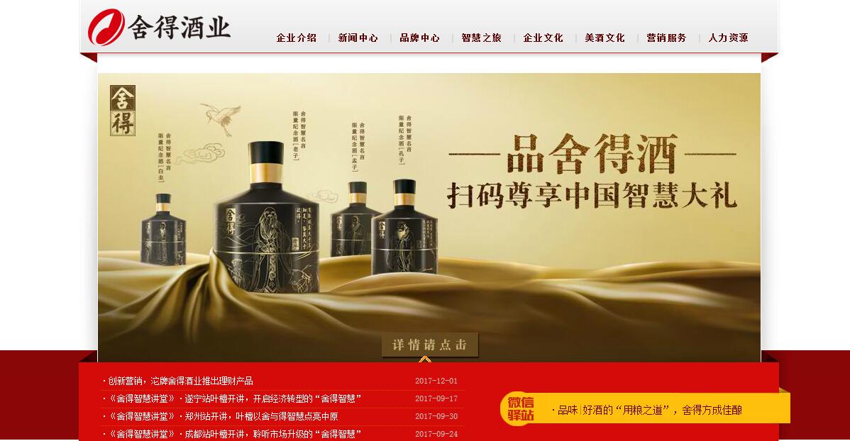 四川沱牌舍得酒业股份有限公司位于素有“观音故里,诗酒之乡”美称的四川省遂宁市射洪县沱牌镇,地处北纬30.9°——世界佳酿酒集中地带,是“中国名酒”企业和川酒“六朵金花”之一。悠悠岁月酒,滴滴沱牌情。智慧人生,品味舍得。从“唐代春酒”到“明代谢酒”,再到“清代沱酒”,沱牌曲酒、舍得酒一脉相承。唐•代宗宝应元年(762年)11月,诗圣杜甫到射洪凭吊先贤、开唐朝诗风的“一代文宗”陈子昂时,曾赞誉“射洪春酒寒仍绿,目极伤神谁为携”。宋•绍兴年间,著名学者王灼曾赞誉“射洪春酒旧知名,更得新诗意已倾”。明•万历中,四川抚军饶景晖曾赞誉“射洪春酒今仍在,一语当年重品题”。清•康熙四十九年(1710年),浙西词人吴陈琰曾赞誉“射洪春酒美,曾记少陵诗”。民国三十五年(1946年)正月,举人马天衢根据店前牌坊“沱泉酿美酒,牌名誉千秋”之寓意而命名为“沱牌曲酒”。自党的十一届三中全会实行改革开放以来,公司在上级党委政府的领导和社会各界的关心支持下,在全国人大代表、享受国务院特殊津贴的专家、中国酿酒大师、知名企业家李家顺先生的带领下,深入践行科学发展观,继承和发扬传统工艺,秉持“天地人和,润泽人间”的企业使命及“质量求真,为人求善,生活求美”的企业核心价值观,致力于“引领生态绿色酿酒,打造中国食品安全标杆企业”的愿景。先后进行五期规模宏大的技改工程,顺利完成了2万吨名优曲酒、2万吨陶瓷罐贮酒库、4万吨不锈钢贮酒罐、4万吨制曲、2.5万吨净水工程、10万吨金属粮仓、15万吨玻瓶、自动化灌装中心、汽车运输公司迁建、热电联产和废水处理站等一大批重大项目的建设,倾力打造“实力沱牌,科技沱牌,绿色沱牌,生态沱牌,效率沱牌,和谐沱牌”!公司是全国首批100户现代企业制度试点企业,其控股公司四川沱牌舍得酒业股份有限公司于1996年在上海证交所挂牌上市。现发展为占地6平方公里,年产能30万吨,高端陈年老酒贮量全国领先的优质白酒制造企业;形成了以酒业为支柱,覆盖包装、制药、商贸、物流等领域的集团企业。拥有玻瓶、制药、热电等子(分)公司20个,总资产超50亿元。公司开全国“生态酿酒”之先河,建有全国知名的生态酿酒工业园,以“生态循环、绿色环保”著称于中国白酒行业。先后投资4000多万元建成屋顶花园、三四五期工程、312、花苑小区等厂区大型绿化工程;投资1000余万元进行滨江公园、废水处理站及沱牌镇绿化建设;投资5000余万元,栽植银杏、楠木、香樟、桂花、柳树等绿化树木60余种165万余株,厂区绿化率达98.5%,绿化覆盖率达48.2%。公司先后被评为“全国文明单位”、“全国环保先进单位”和首批“四川省工业生态园”,被授予全国“五一劳动奖”,获 “中国食品文化遗产”、“国家级非物质文化遗产”、“全国质量奖”等称号。公司主要生产销售沱牌系列酒(沱牌天曲、特曲、优曲,沱牌大曲,沱牌柳浪春,沱牌陶醉)和舍得系列酒(品味·舍得酒)。1989年,沱牌曲酒荣膺国家质量奖审定委员会评定的“金质奖章”(中国名酒);创立生态酿酒全P标准,独创幽雅、舒适、健康型白酒,并被写入两个国家标准(GB/T 21820-2008《地理标志产品舍得白酒》、GB/T 21822-2008)《地理标志产品沱牌白酒》);吞之乎多次荣获布鲁塞尔国际烈性酒产品大赛最高奖——大金牌。生态酿美酒,舍得谢天下。在取得良好经济效益的同时,公司积极反哺回报社会,先后向射洪县柳树中学、射洪青岗中学、射洪中学、西南师范大学、四川大学、西南财经大学、四川爱华学校、贫困山区学校等捐款捐物,支持教育事业发展。1995年,出资100万元设立沱牌教育奖励基金;1996年,公司捐资1378.72万余元修建了设备设施齐全、全国一流的沱牌实验学校。据统计,1994年以来,公司用于助教兴学金额达1.1亿元。同时,累计投入1.5亿元修路筑堤、赈灾助残等,支持地方经济和新农村建设。截止2009年末,累计上缴利税近30亿元,历年上缴税费占地方财政收入的50%以上;安置改制企业员工、社会待业青年、失地农民、农村剩余劳动力近10万人,年均支付农民工工资1400余万元。1998年8月,长江中下游发生特大洪灾,沱牌向湖南及其它灾区捐款100万元;2002年12月,出资8163万余元修建起8.5公里长的涪江柳树防洪大堤。2006年遂宁地区遭受特大旱灾,向灾区人民送去价值50万元的纯净水,解决了他们的燃眉之急。2008年“5.12”四川汶川大地震发生后,公司捐款、捐物共1038万元,同时派出18名志愿者赴地震灾区,受到省、市、县表彰。2010年4月,青海玉树地震发生后,公司捐资1000万元,支援灾区抗震救灾。2010年8月,甘肃舟曲发生泥石流灾害后,公司捐款捐物达100万元,支援灾区。由于在公益事业中的突出贡献,公司被授予“中国慈善事业突出贡献奖”和“环球慈善企业奖”。原中共中央政治局常委、全国政协主席贾庆林,原中共中央政治局常委、全国人大委员长乔石,著名科学家、全国政协原副主席、民盟中央副主席钱伟长,全国政协原副主席杨汝岱,全国政协原副主席、农工民主党中央常务副主席李蒙,原全国政协副主席、民盟中央第一副主席张梅颖,四川省历届省委书记谢世杰、张学忠、刘奇葆,省长张皓若、宋宝瑞、张中伟、蒋巨峰,全国人大环境与资源保护委员会主任毛汝柏,国内贸易部原部长、中国质量协会会长陈邦柱,建研究会顾问、原