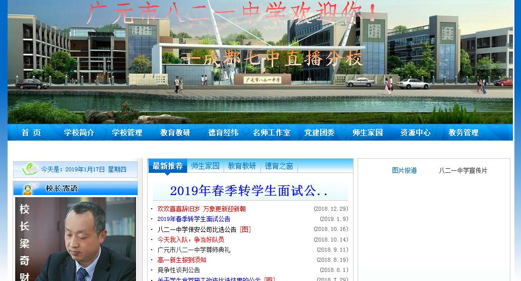 八二一中学始建于1972年,原隶属于中核集团八二一厂。2005年划归广元市政府,是由广元市教育局直属管理的一所十二年一贯制学校。2008年以来,学校得到了市委、市政府的大力支持,投入资金近1.3亿元,在东坝办事处水柜村建起了一座占地面积130亩,建筑面积近4万平方米,拥有设计合理、设施先进的综合大楼、教学楼、运动场、学生公寓和服务中心等设施的现代化校园,每个教室配备了全市先进的交互式多媒体教学一体机。学校现有50多个教学班,在校学生近3000名。八二一中学是全国重点高校——南华大学在川的招生基地之一。四川电影电视学院战略合作签约学校。八二一中学是由市教育局批准的提前招生的七中直播基地校。八二一中学有一支高素质的教师队伍。学校有在编教职工161人,其中,中学高级教师19人,中级职称44人,初级职称51人;省骨干教师1人,市骨干教师12人;市学术与技术带头人2人,后备人员1人;本科学历80人。四十多年来,八二一中学以其骄人的办学业绩享誉利州大地,为国家培养了大批英才。小学部教育教学质量一直位于广元前列,中学部在历年中考、高考中也成绩显著,高中录取率、本科上线率长期列广元市前列。特别是近几年,八二一中学在急剧艰难的环境之下,依然能逆势而上,创造一个又一个佳绩:2013年、2014年荣获广元市高中教育教学质量考核二等奖,省运会先进集体奖,四川省五四红旗团委等多项奖励,2015年、2016年连续两年荣获高考质量考核一等奖。目前,821中学正面临前所未有的发展机遇。教学硬件、软件都得到了前所未有的发展。今年的新生将在高起点、高规格、高配置、科学施教的的新环境下学习和生活。“一份耕耘,一份收获”。我们将继续铭记“刻苦求实,勤奋创新”的校训,为振兴广元教育、为创造八二一中学更加美好的明天做出新的、更大的贡献!