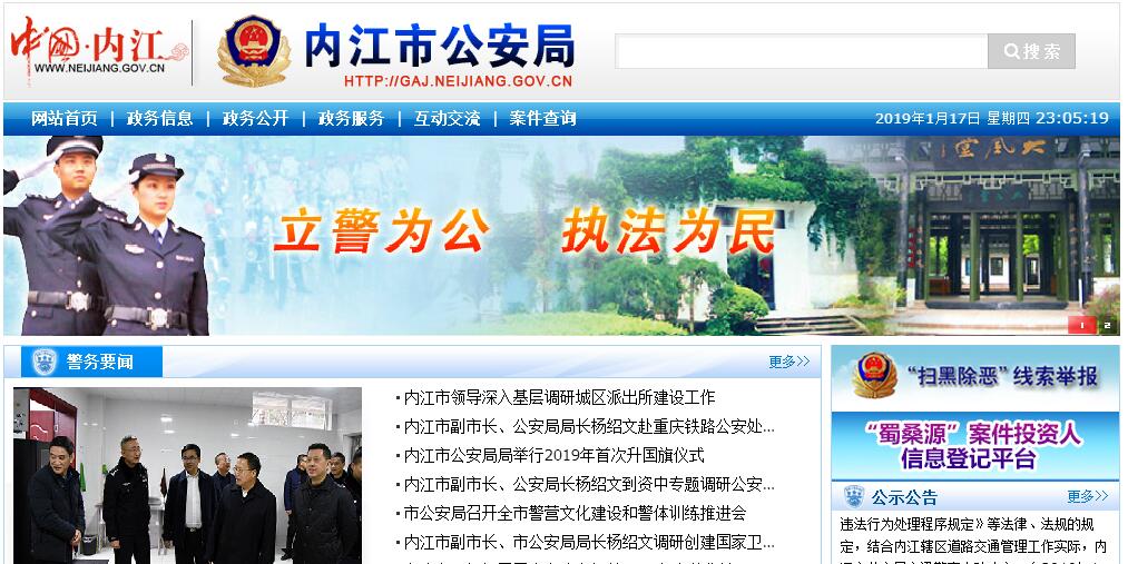根据《中共内江市委 内江市人民政府关于印发〈内江市人民政府机构改革方案〉和〈关于内江市人民政府机构改革方案的实施意见〉的通知》(内委发〔2010〕10号),设立内江市公安局(简称公安局),为市政府工作部门。其主要职责:(一)贯彻执行公安工作的方针、政策、法律、法规、规章;部署、指导、监督、检查全市公安工作。(二)负责收集、掌握隐蔽斗争和影响稳定、危害国内安全和社会治安的情况,掌握、控制、处置全市违法犯罪活动,分析形势,研究公安工作出现的新情况、新问题,为市委、市政府和省公安厅的决策部署提供信息支持。(三)指导全市公安法制建设,按管辖办理行政诉讼、行政复议案件。(四)组织、指导全市公安侦查工作;协调处置重大案件、恐怖活动、治安灾害事故、骚乱和群体性突发事件;组织实施重大活动的安全保卫工作。(五)指导、监督全市公安机关查处危害社会治安秩序行为;依法管理户口、居民身份证、枪支弹药、危险物品、特种行业;依法管理集会、游行、示威活动。(六)指导、监督全市公安机关维护道路交通安全、交通秩序;组织、协调处置重大交通事故;依法对机动车辆(含农用运输车)和驾驶员进行管理工作。(七)组织实施全市消防监督、火灾预防和扑救等工作。(八)指导全市公安警卫业务工作,组织实施对党和国家领导人、重要外宾等重点警卫目标的安全警卫工作。(九)依法管理公民国籍、出境入境和外国人在中国境内居留、旅行的有关工作。(十)指导全市公安机关依法承担的执行刑罚和监督工作;指导、监督全市看守所、治安拘留所、强制戒毒所、收容教育所等管理工作;管理市看守所。(十一)组织、指导全市公安机关对公共信息网络的安全保卫工作。(十二)指导、监督全市公安机关对国家机关、社会团体、企事业单位和重点建设工程的治安保卫工作及群众性治安防范工作。(十三)组织、实施全市公安科学技术工作;规划全市公安信息技术、刑事技术和行动技术建设。(十四)组织指挥武警内卫部队执行公安任务。(十五)分析全市公安队伍状况,研究、制定公安队伍建设、民警教育训练和公安宣传的规章制度,组织和指导全市公安队伍建设、干警教育训练和公安宣传工作,监督检查落实情况,按规定权限管理干部。(十六)指导全市公安机关纪检监察和警务督察工作;对全市公安机关及其人民警察的执法情况进行监督,查处或督办重大违纪案件。(十七)制定全市公安装备、被装、经费等警务保障计划;依照相关规定组织、管理和分配全市公安装备、被装和经费。(十八)管理全市林业公安的业务工作。(十九)承办市政府禁毒委员会、劳动教养管理委员会、打击拐卖妇女儿童犯罪领导小组日常工作。(二十)承办市委、市政府和省公安厅交办的其他事项。