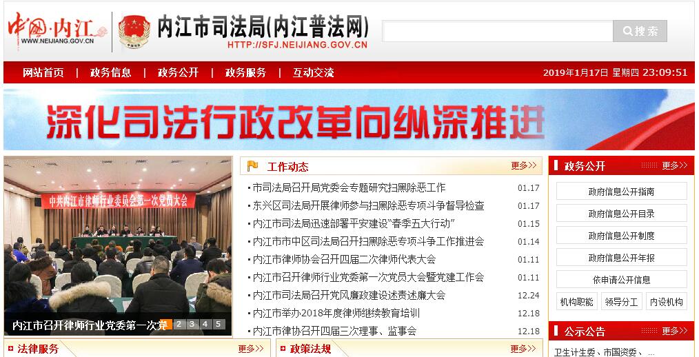 根据《中共内江市委 内江市人民政府关于印发〈内江市人民政府机构改革方案〉和〈关于内江市人民政府机构改革方案的实施意见〉的通知》(内委发〔2010〕10号),设立内江市司法局(简称司法局),为市政府工作部门。其主要职责:(一)贯彻执行国家关于司法行政工作的方针、政策和法律、法规、规章及有关规定;制定全市司法行政规范性文件、发展规划、工作计划并组织实施。(二)制定全市普及法律常识、法制宣传教育和依法治理规划,并指导各县(区)、各行业实施。(三)监督管理全市的法律援助工作。(四)监督管理律师工作、公证工作、法律顾问工作。(五)督促、指导基层司法所建设、社区矫正工作、人民调解工作和刑满释放人员、解除劳动教养人员的安置帮教工作。管理、指导基层法律服务工作。(六)监督管理司法鉴定工作。(七)组织承办国家司法考试工作。(八)协助管理劳动教养工作。(九)指导本系统的法学教育、法学理论研究、依法行政和警用物资装备及财务工作。(十)监督、指导本系统抓好党的建设、队伍建设和思想政治工作;负责人事警务、干部培训和四川省女子劳教所党的建设工作;协助管理县(区)司法局领导干部工作。(十一)承办市政府交办的其他事项。